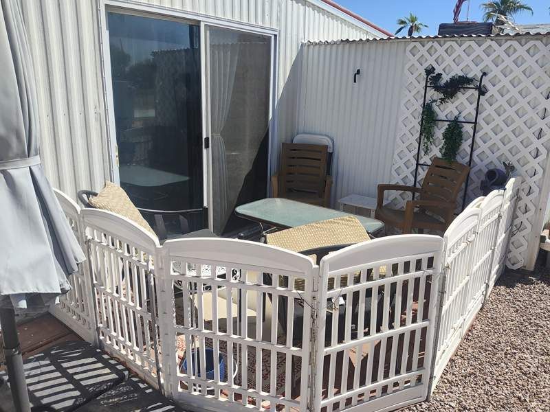 The 304 square feet Park Model home at Rock Shadows in Apache Junction, AZ is a cozy retreat with 1 bedroom and 1 bathroom. Built in 1983, this charming home features a spacious living room, a dining room area, a master bedroom, a fully equipped kitchen, and an Arizona room perfect for enjoying the desert scenery. The exterior of the home boasts a carport for convenient parking, a shed for extra storage, a deck for outdoor relaxation, and durable aluminum siding for low maintenance. Make this your forever home! Rock Shadows is a vibrant community in Apache Junction offering residents a variety of amenities and activities to enjoy. From swimming in the pool to playing shuffleboard, there is always something to do at this active 55+ community. Residents can also take advantage of the clubhouse, fitness center, and organized events and social gatherings. With stunning views of the Superstition Mountains and close proximity to shopping, dining, and outdoor recreation, Rock Shadows is the perfect place to call home in sunny Arizona.