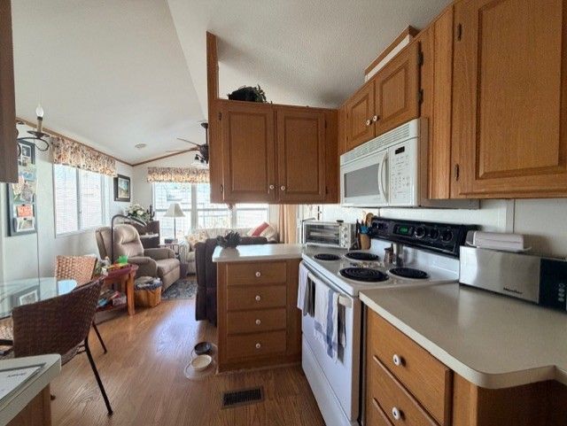 Beautiful 2001 Cavco Park Model with Arizona Room – Move-In Ready! This charming 2001 Cavco park model features a spacious 391 sq. ft. Arizona room and comes fully furnished for your convenience. The home offers two full bathrooms, supported by two water heaters—perfect for enjoying a relaxing soak in the tub. You’ll love the well-appointed kitchen, complete with a smooth cooktop range, built-in microwave, and a convenient stand-alone freezer. The laundry area includes a full-size washer and dryer plus a utility sink for added functionality. Designed with flexibility in mind, the home includes two sofa beds for guests and a dedicated desk area with a chair—ideal for a home office or hobby space. Step outside to a comfortable sitting area, perfect for sharing time with friends or relaxing with a good book. This home is truly move-in ready and offers comfort, convenience, and style all in one amazing package. Located in the beautiful community of The Reserve at Lost Dutchman, residents enjoy a plethora of amenities such as a clubhouse, swimming pool, and fitness center. The community is surrounded by stunning mountain views and offers a peaceful and serene atmosphere. With close proximity to hiking trails, golf courses, and shopping centers, The Reserve at Lost Dutchman provides the perfect combination of comfort and convenience for its residents.