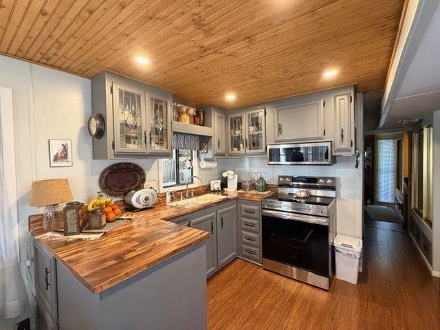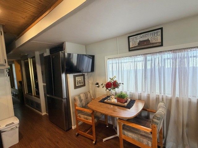 Charming Fully Furnished 1982 Park Model – Move-In Ready! Beautifully updated and thoughtfully designed, this charming 1982 park model offers comfort, style, and functionality throughout. The living room, kitchen, and hallway feature stunning tongue-and-groove ceilings complemented by recessed lighting, creating a warm and inviting atmosphere. The kitchen showcases gorgeous charcoal gray cabinetry, butcher-block style countertops, and wood-look laminate flooring. A full suite of stainless steel Samsung appliances—including a full-size refrigerator and built-in microwave—adds both style and convenience. The bathroom offers a shower/tub combination along with generous cabinet space for storage. In the bedroom, you'll find built-in shelving, mirrored closets, and a convenient desk/office area—perfect for working from home or staying organized. Step outside to enjoy the beautifully designed front area with decorative English-style flagstone. The driveway features a spacious enclosed area ideal for entertaining friends or relaxing while enjoying Arizona’s amazing evenings. Additional highlights include a large storage shed and the fact that the home comes fully furnished, making it truly move-in ready. Located within The Reserve at Lost Dutchman, this community provides a welcoming and peaceful environment in the heart of Apache Junction, AZ. Residents enjoy a friendly atmosphere and access to well-maintained common areas, making it an ideal place for those seeking a relaxed lifestyle. The Reserve at Lost Dutchman offers a unique blend of natural beauty and convenient amenities, allowing homeowners to experience the best of desert living while being close to local shops, dining, and outdoor recreational opportunities.