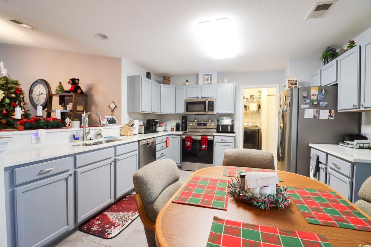 Welcome to 1121 Rookery Dr, a delightful 3-bedroom, 2-bathroom home in the highly sought-after Cameron Village community of Myrtle Beach. This home boasts an open and bright living room with soaring ceilings, abundant natural light, and a seamless flow into the rest of the living spaces. The stylish kitchen is a chef’s dream, featuring sleek stainless steel appliances, a cozy dining area, a convenient breakfast bar, generous counter space, and ample cabinet storage. Retreat to the serene master suite, complete with a spacious walk-in closet, a vanity, a roomy walk-in shower, and a luxurious soaking tub. Relax and unwind in the sunlit Carolina Room, the perfect spot to start your morning or wind down at the end of the day. The fenced-in backyard offers a patio ideal for entertaining, while the inviting front porch allows you to enjoy the charm of the neighborhood. As a resident of Cameron Village, you’ll enjoy access to exceptional amenities, including a sparkling pool and tennis courts. Situated off Highway 707, this home offers an unbeatable location just minutes from the beach, the Murrells Inlet MarshWalk, The Market Common, and an array of shopping, dining, and entertainment options. Don’t miss your opportunity to make this beautiful home your own—schedule a showing today!