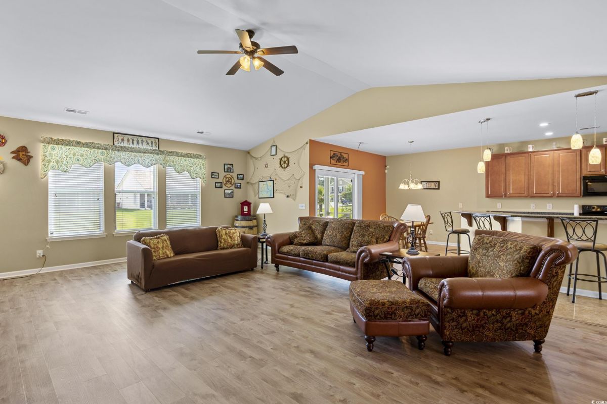 OPEN HOUSE SATURDAY OCT. 18TH 2-5PM Spacious 4-Bedroom Home in Cameron Village – Myrtle Beach, SC. Welcome to this beautifully maintained 4-bedroom, 3.5-bath single-family home in the sought-after Cameron Village community. Featuring a spacious open floorplan with soaring vaulted ceilings, this home offers the perfect blend of comfort and style for everyday living and entertaining. The kitchen is a chef’s dream with granite countertops, under cabinet lighting, newer stainless steel refrigerator and dishwater, and a cozy breakfast area that flows seamlessly into the living space. Enjoy formal meals in the elegant dining room, or unwind on the screened porch overlooking a tranquil pond—ideal for morning coffee or evening relaxation. The main level includes a generous primary suite with walk in closet, the primary bath features a large shower, vanity water closet and linen closet. The first floor also contains two additional bedrooms that share a hall bath. The second floor boasts a large bedroom and private bath—perfect for guests or a home office. Additional highlights include a two-car garage, dedicated laundry room, and ample storage throughout. HVAC REPLACED IN 2022. TERMITE BOND. FURNITURE AVAILABLE. Located just six miles from the beach and minutes to shopping, dining, golf, and the Enterprise Boat Landing on the Intracoastal Waterway. Cameron Village residents enjoy access to a community pool, clubhouse, and tennis courts, and pickleball courts making this the perfect place to enjoy the Myrtle Beach lifestyle. Don’t miss your chance to own this stunning home in one of the area’s most desirable neighborhoods!