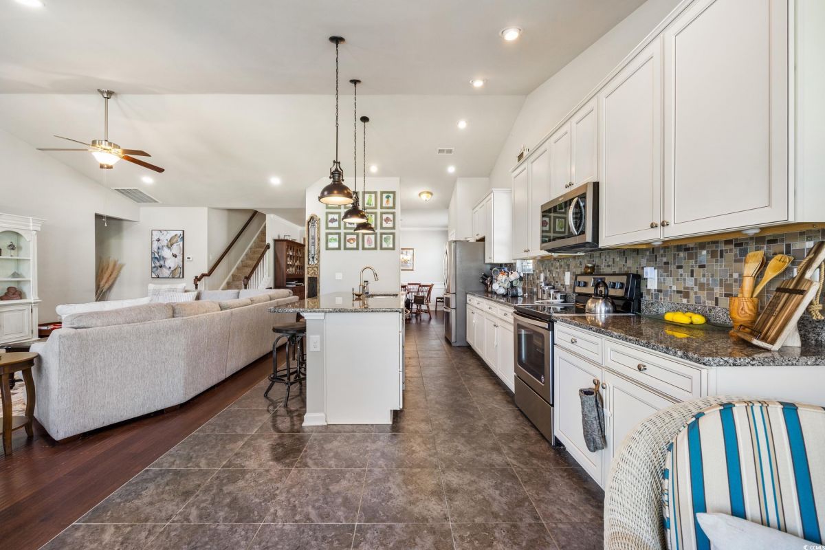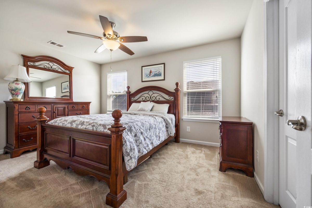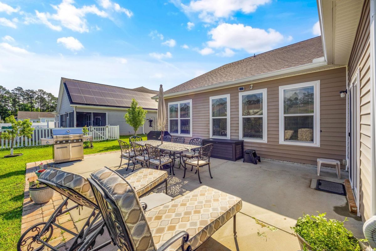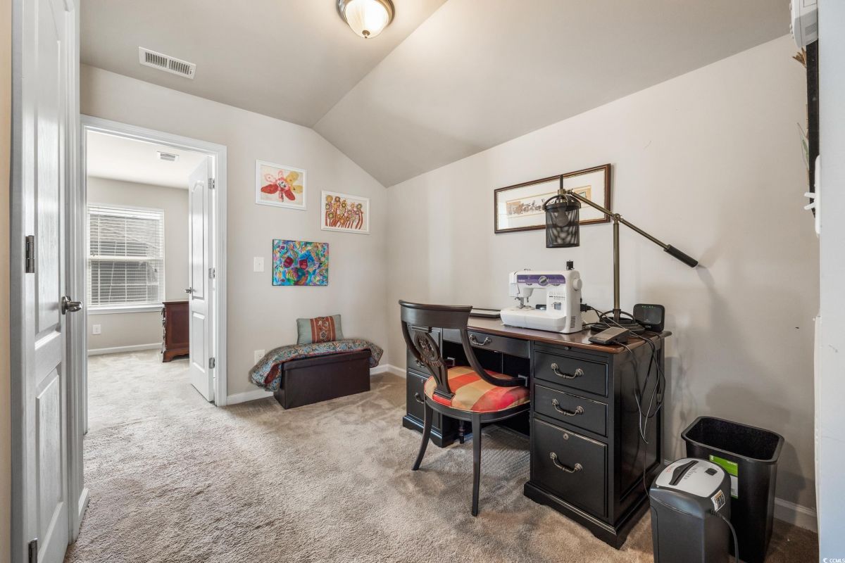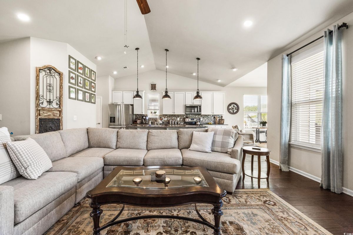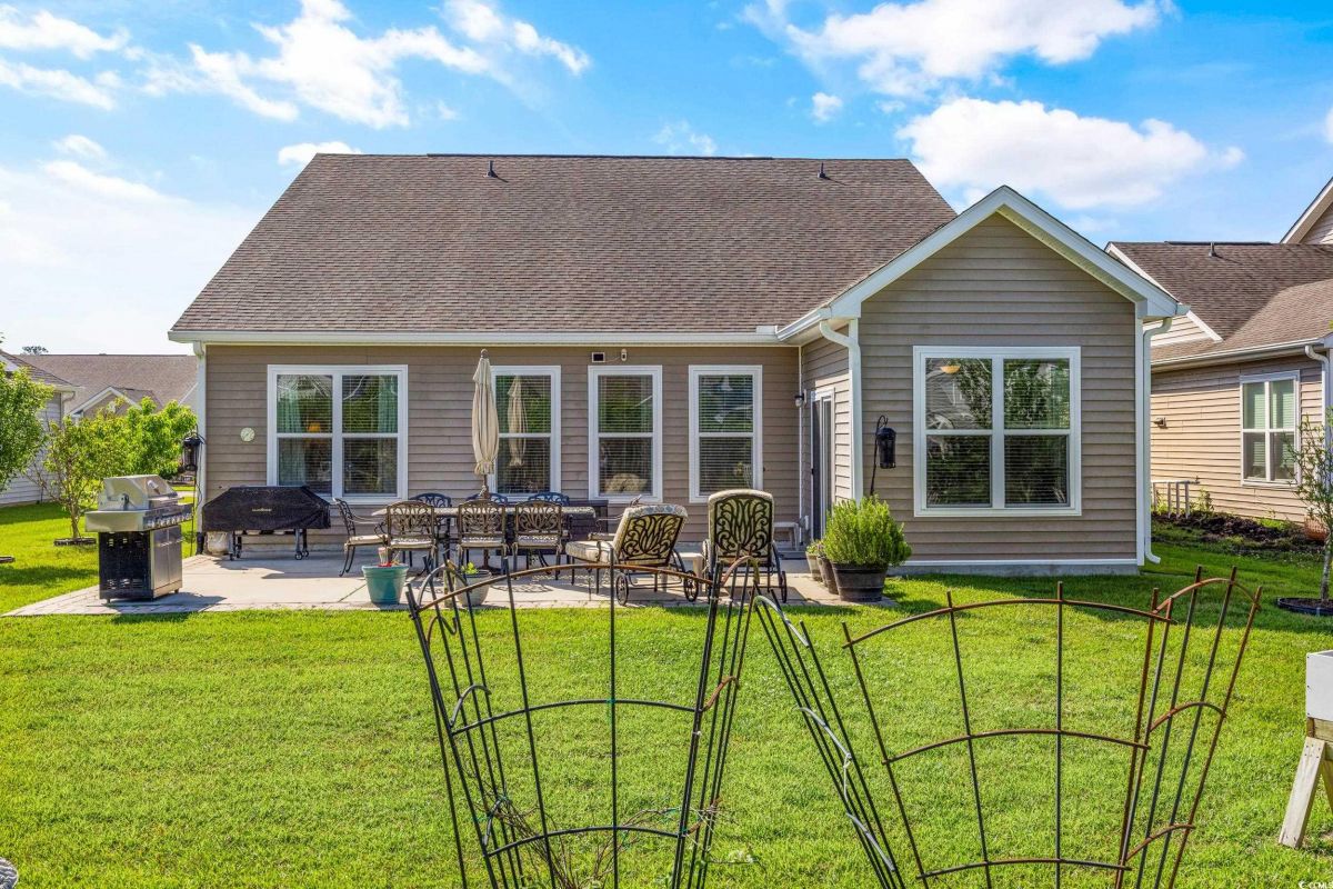 Welcome to your dream home in Cameron Village, Myrtle Beach featuring a 3 CAR GARAGE! This stunning 4 bedroom, 3.5 bath residence boasts upgrades and comfort at every turn. Open and bright kitchen featuring 42-inch cabinets, a LARGE GRANITE ISLAND, and upgraded brushed nickel faucets for a touch of elegance. The primary suite along with 2 additional bedrooms are located on the 1st floor. The 4th bedroom is located on 2nd floor along with a full bathroom and the additional FLEX SPACE perfect for a private retreat for guests. This beautiful home also features a FORMAL DINING ROOM and CAROLINA ROOM. 3-CAR GARAGE for plenty of storage and an EXTENDED BACK PATIO, adorned with beautiful pavers creates an ideal outdoor space for entertaining guests! The CAROLINA ROOM adds additional space for you to enjoy the sunshine! Enjoy the spacious feel with vaulted ceilings throughout the main living areas and open kitchen. Every detail has been carefully considered, from the levered handles to the CROWN & CHAIR MOLDING in the foyer and dining room, creating an atmosphere of refined living. Embrace the convenience of an IRRIGATION SYSTEM, while the meticulously landscaped yard along with additional front pavers trim to your driveway adds curb appeal to this property. R-15/R-38 insulation, externally vented microwaves, tyvek full system used for house wrap allows you to save on utility bills for the life of your home. Cameron Village amenities include pool, club house, tennis courts, basketball court and a playground. Located in St James school district and only a few miles Surfside Beach, Myrtle Beach or the Marshwalk in Murrells Inlet. This home and ideal location truly has it all-from the thoughtful design to the premium finishes, it's ready to welcome you home. Don't miss your chance to make it yours!