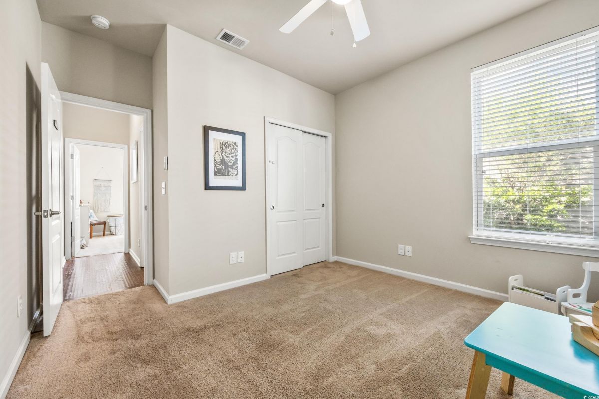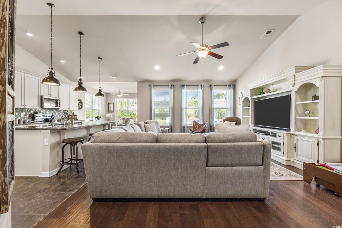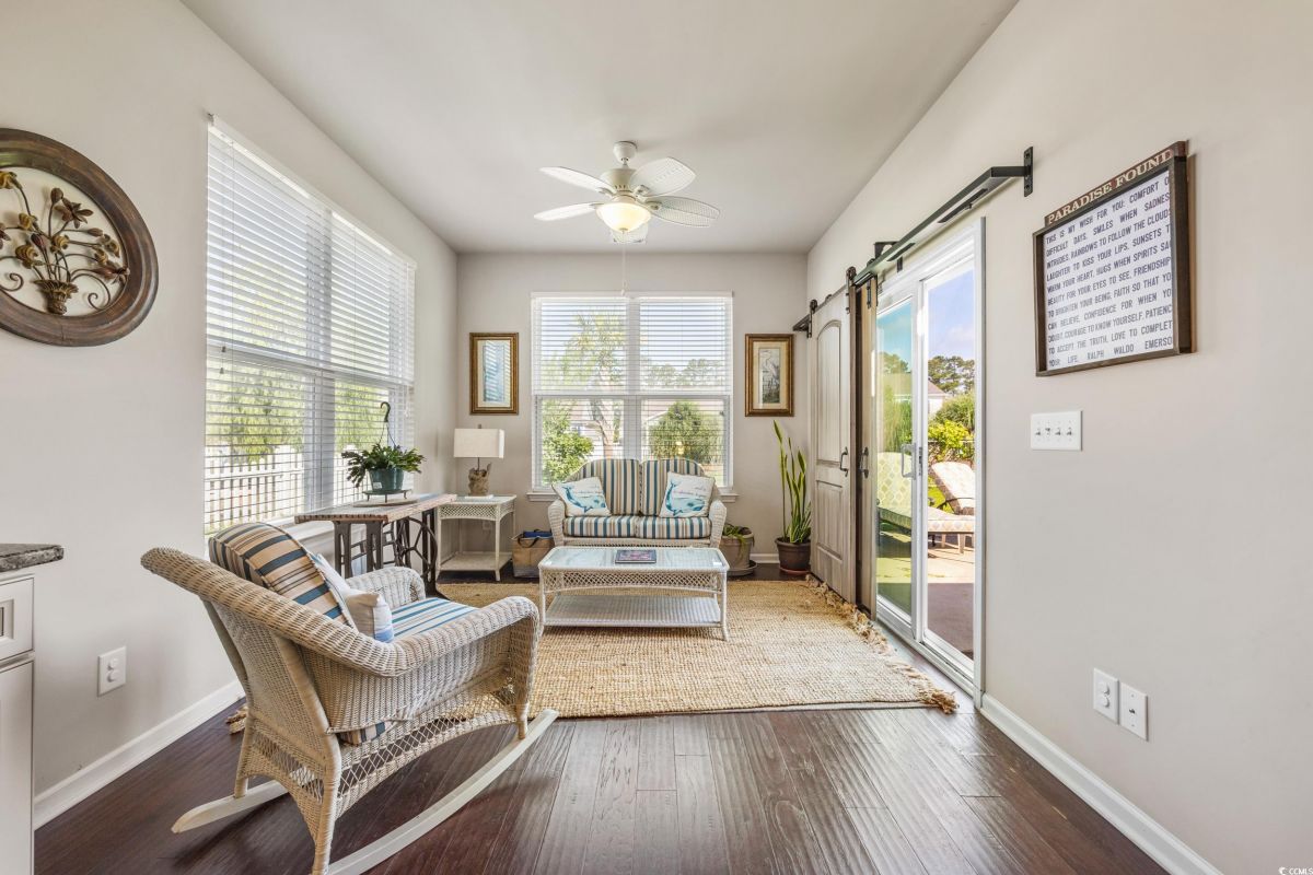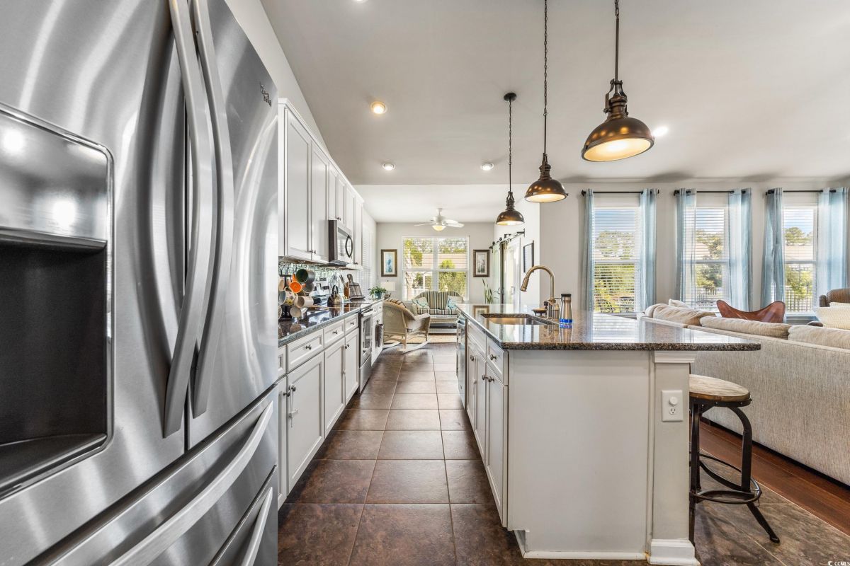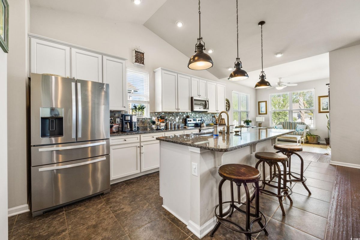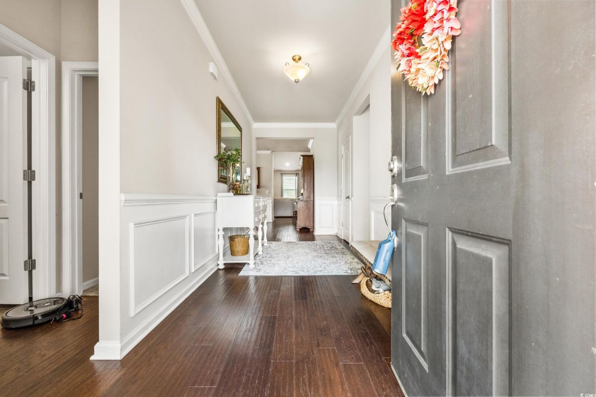 Welcome to your dream home in Cameron Village, Myrtle Beach featuring a 3 CAR GARAGE! This stunning 4 bedroom, 3.5 bath residence boasts upgrades and comfort at every turn. Open and bright kitchen featuring 42-inch cabinets, a LARGE GRANITE ISLAND, and upgraded brushed nickel faucets for a touch of elegance. The primary suite along with 2 additional bedrooms are located on the 1st floor. The 4th bedroom is located on 2nd floor along with a full bathroom and the additional FLEX SPACE perfect for a private retreat for guests. This beautiful home also features a FORMAL DINING ROOM and CAROLINA ROOM. 3-CAR GARAGE for plenty of storage and an EXTENDED BACK PATIO, adorned with beautiful pavers creates an ideal outdoor space for entertaining guests! The CAROLINA ROOM adds additional space for you to enjoy the sunshine! Enjoy the spacious feel with vaulted ceilings throughout the main living areas and open kitchen. Every detail has been carefully considered, from the levered handles to the CROWN & CHAIR MOLDING in the foyer and dining room, creating an atmosphere of refined living. Embrace the convenience of an IRRIGATION SYSTEM, while the meticulously landscaped yard along with additional front pavers trim to your driveway adds curb appeal to this property. R-15/R-38 insulation, externally vented microwaves, tyvek full system used for house wrap allows you to save on utility bills for the life of your home. Cameron Village amenities include pool, club house, tennis courts, basketball court and a playground. Located in St James school district and only a few miles Surfside Beach, Myrtle Beach or the Marshwalk in Murrells Inlet. This home and ideal location truly has it all-from the thoughtful design to the premium finishes, it's ready to welcome you home. Don't miss your chance to make it yours!