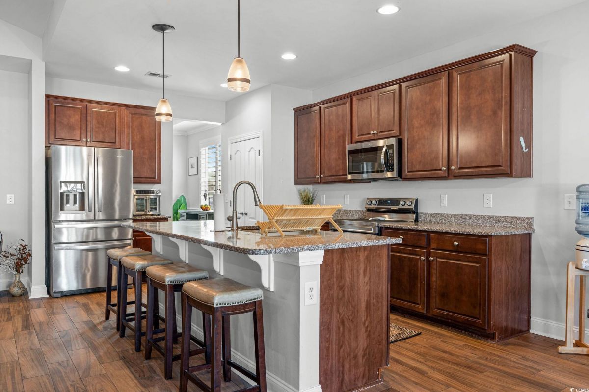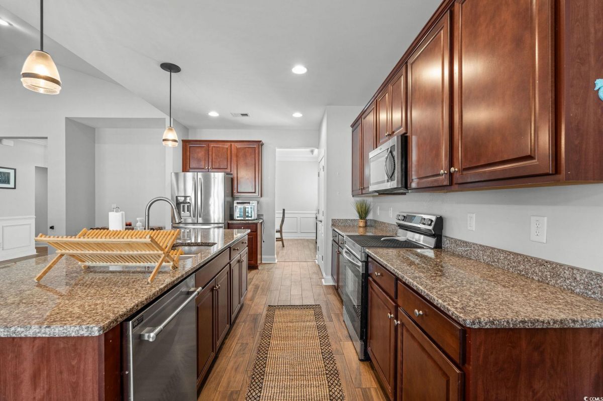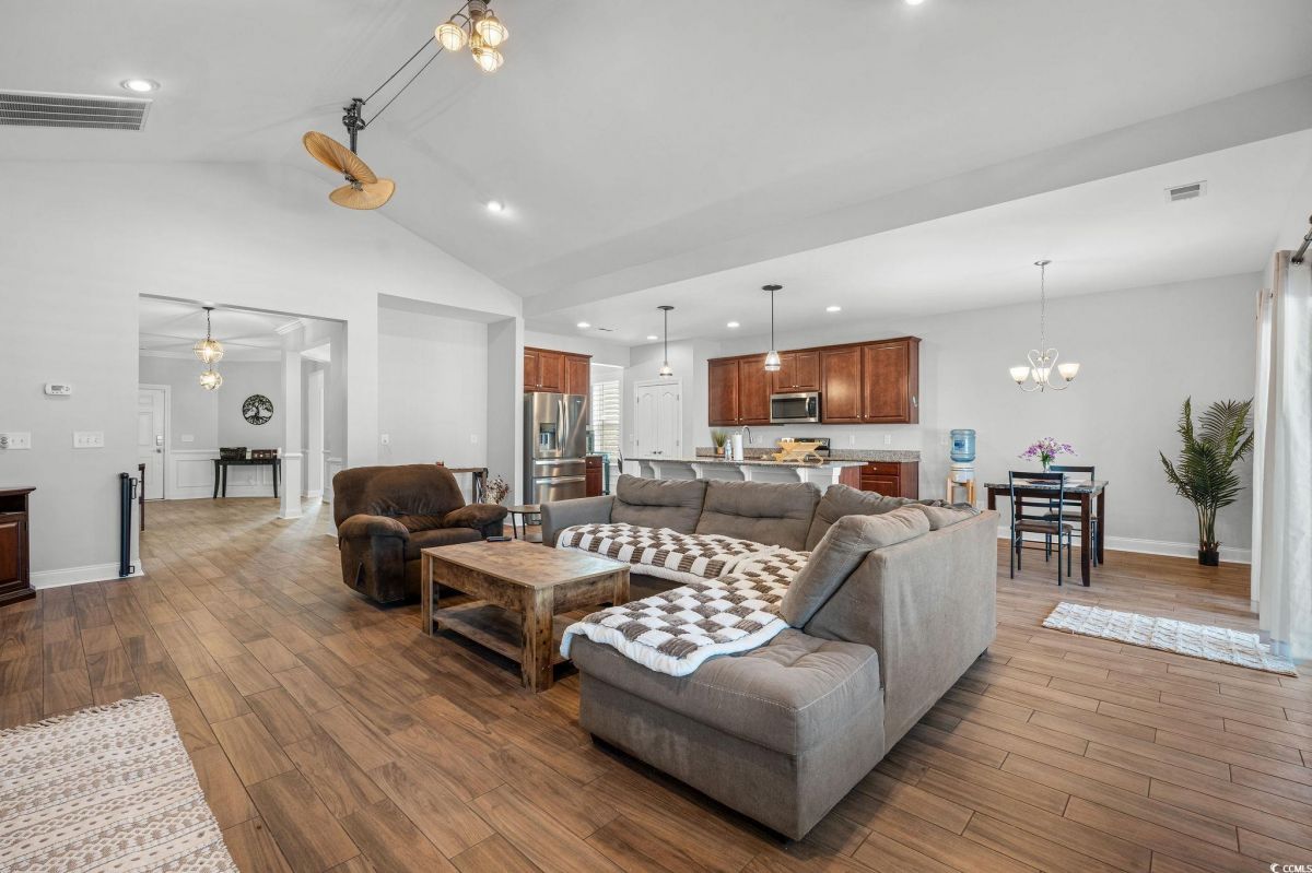 Welcome to this stunning 5-bedroom, 4-bathroom home with a POOL located in Cameron Village. This home is perfectly designed for comfort and entertainment, and it has everything you need to enjoy modern living! Walk into the foyer, you will see that this isn't your typical 5 bedroom home. There are three guest bedrooms upfront, as well as two guest baths and a formal dining room. Not like your typical home with all or most of the bedrooms upstairs. This is a mainly 1 story floor plan, a refreshing break from the norm. Then, step into the heart of the home — there's a chef's kitchen featuring stainless steel appliances, a large work island with a breakfast bar, and plenty of counter space for making that big holiday dinner. From the kitchen you're looking at the big open living room. It's the perfect home for an entertainer. Note, the entire home has recently had high end porcelain wood look tile installed throughout the main living areas. The open floor plan flows seamlessly into the screened-in back porch, ideal for morning coffee or evening relaxation. The backyard is an actual oasis, complete with a sparkling saltwater pool, a relaxing hot tub with a brand new heater and pump, and plenty of space for outdoor gatherings. Back inside, the master suite offers a large private retreat with an enormous ensuite bathroom featuring a beautifully tiled shower. Upstairs, you'll find a versatile bonus room with its own bathroom, perfect for a media room, home office, or guest space. Some awesome features this home has that are above and beyond the majority are the following: there are solar panels, a propane fireplace, a fire pit and a wood grill outside. Cameron Village is located right off 707 with easy access to 31 and 17. The beach is right down Surfside drive and there's plenty of other fun entertainment options, shopping, and dining within a few minutes. You will also have access to a community pool with a clubhouse, tennis courts and basketball courts. But there's nothing like having your own private pool with night time lighting. Don't miss this incredible opportunity to own a spacious home that truly has it all! Contact your agent for a showing today! Buyer to verify any and all pertinent info.