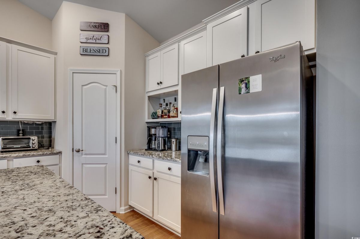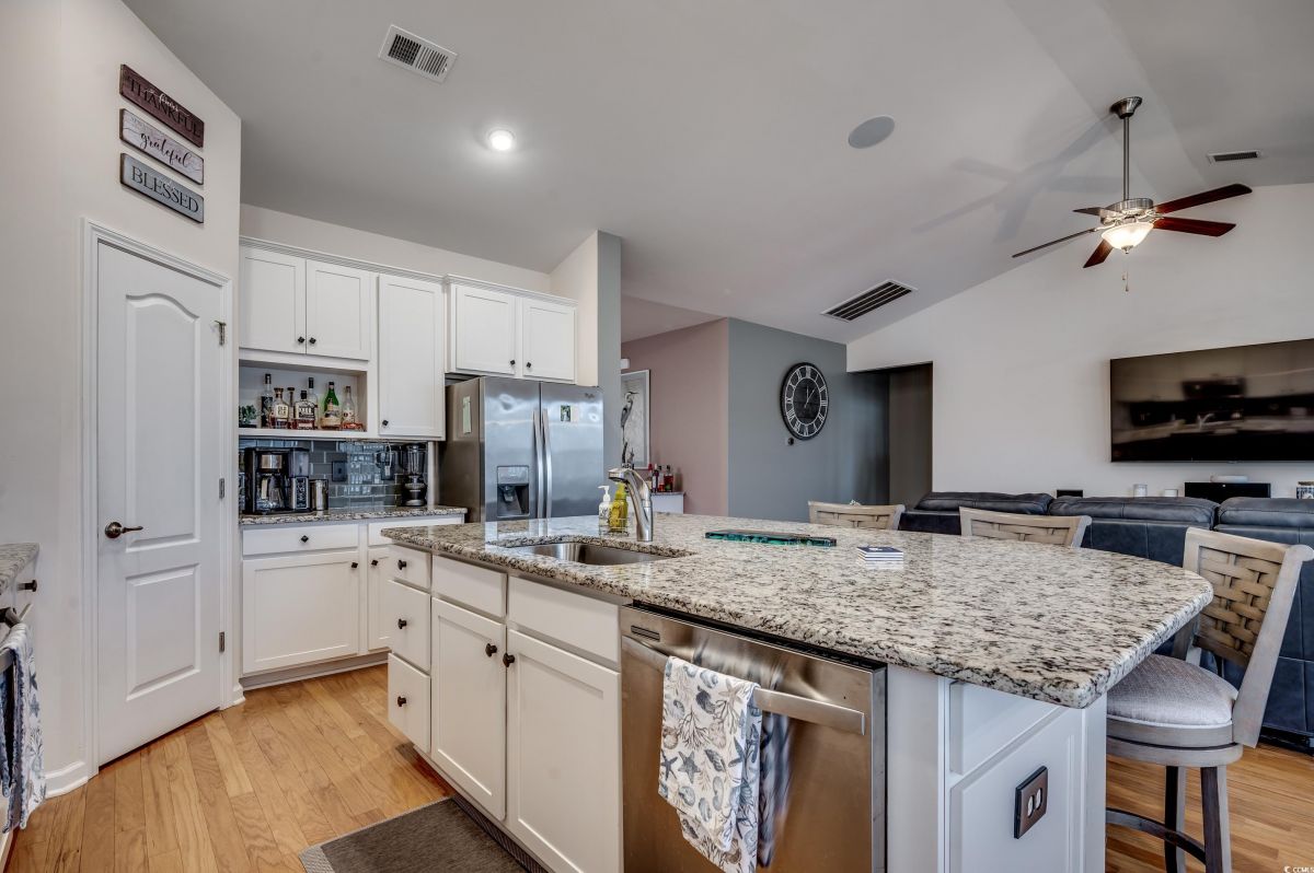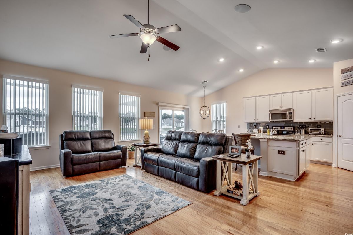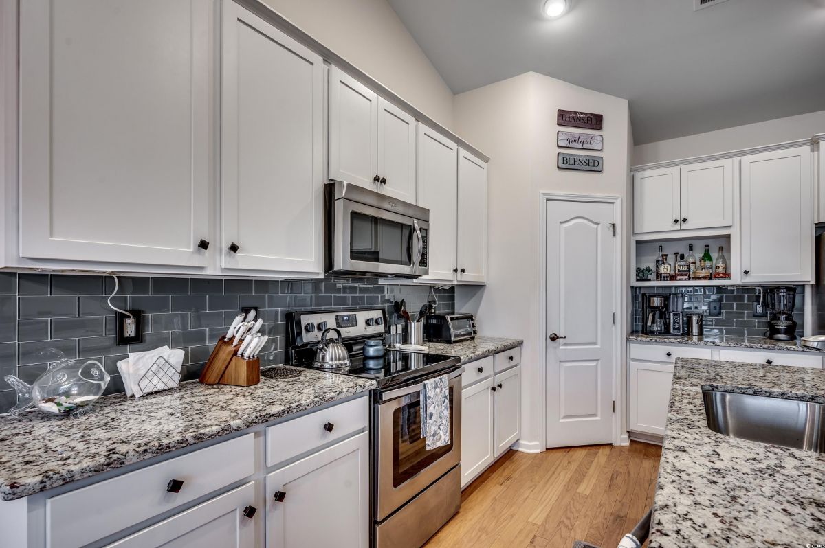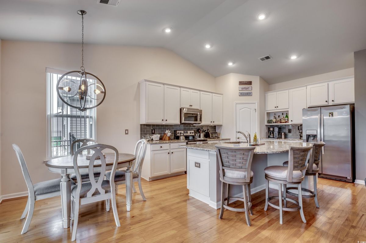 Welcome to your dream home in the highly sought-after Cameron Village community! This beautiful, well-maintained 3 bedroom, 2.5 bathroom home features a spacious 3 car garage with epoxy floors, perfect for storage and even a golf cart. Inside, you’ll find a smartly designed split bedroom floor plan that provides both privacy and a wonderful sense of openness. The expansive master suite boasts a luxurious en-suite bathroom with a large tiled shower, double sink vanity, and a walkin closet that is truly impressive. On the other side of the home, the two additional bedrooms are generously sized, with ample closet space, and share a full bathroom. The heart of this home is its open-concept kitchen and living area. The kitchen is fully equipped with granite countertops, stainless steel appliances, a large breakfast bar, and a cozy breakfast nook. With tons of cabinet space, this kitchen overlooks a spacious living room, perfect for entertaining. A formal dining area offers the perfect space for holiday gatherings or special meals. Step outside to your covered, screened-in patio and lanai, complete with a hot tub overlooking the serene pond which is a peaceful setting for relaxing or entertaining. The custom backyard features a dedicated grilling area ideal for outdoor dining and gatherings. Notable upgrades include a custom bar area, hardwood floors, stylish light fixtures, and premium finishes throughout. Cameron Village itself offers a wealth of amenities, including an outdoor pool, tennis courts, basketball courts, and more. The community is conveniently located just minutes from beautiful beaches, golf courses, the airport, top rated restaurants, and the best of the Grand Strand. Additionally, it’s part of the award-winning St. James school district. Don’t miss out on this incredible opportunity to own a piece of paradise! This home is priced to sell and ready to welcome you so schedule your showing today!