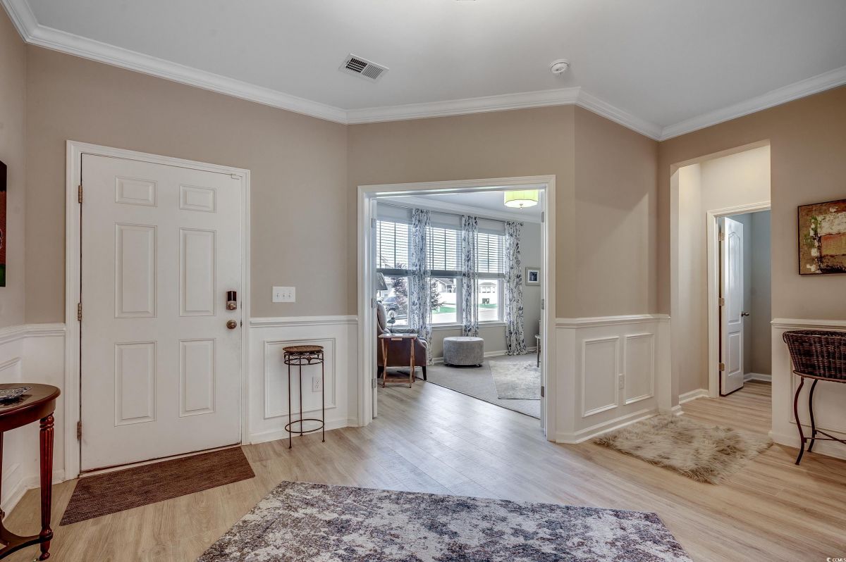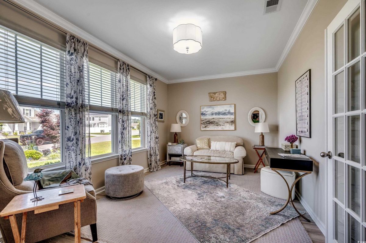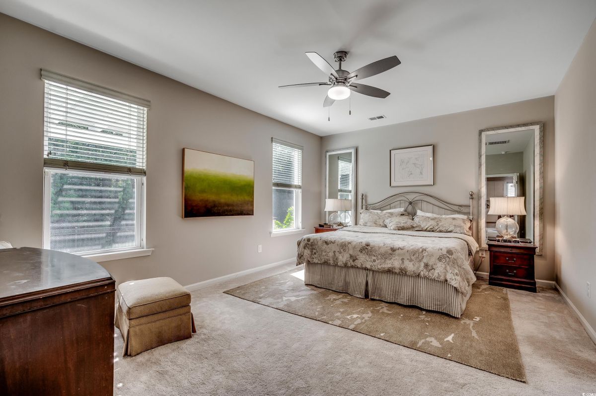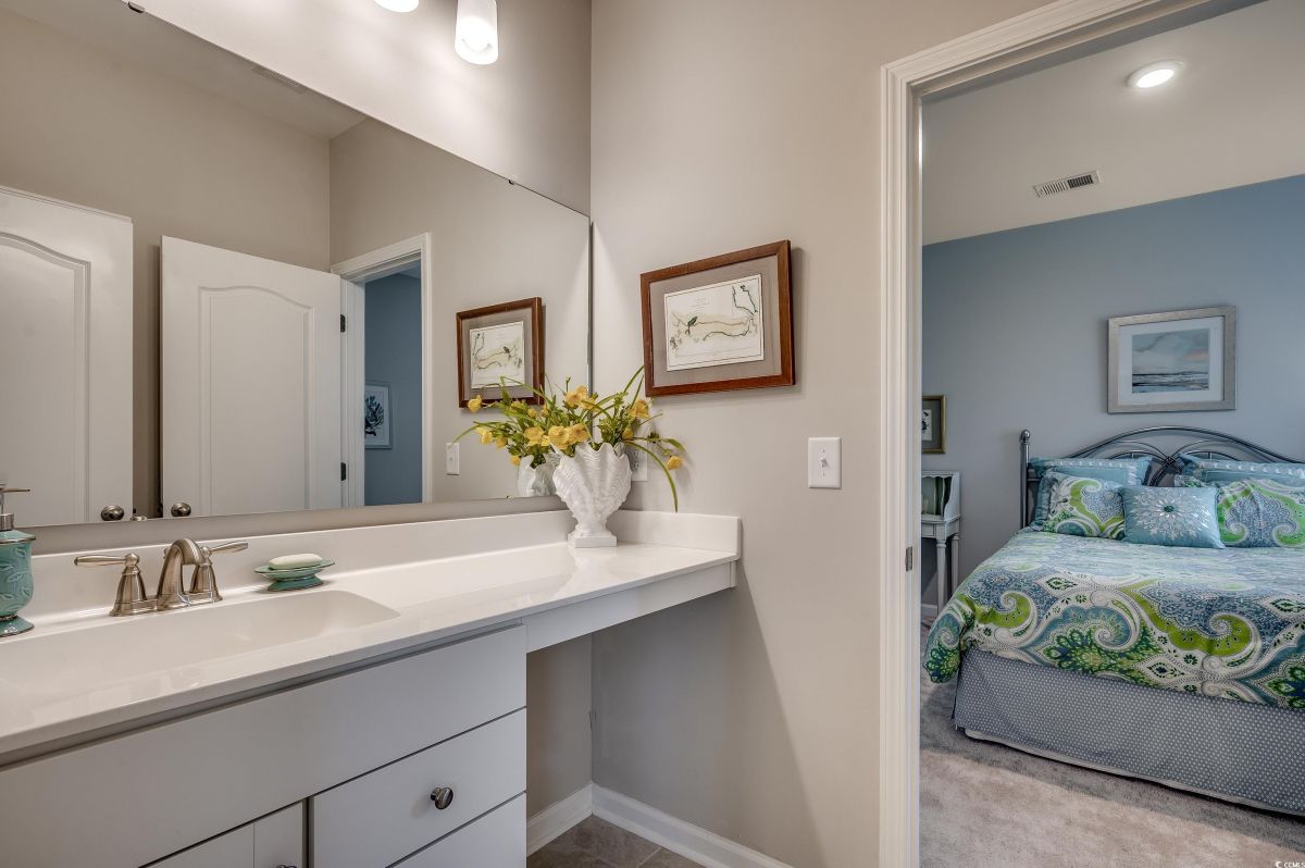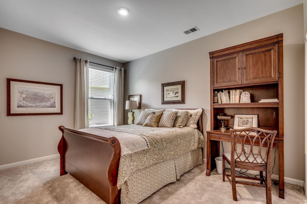***OPEN HOUSE Sunday July 20th 12-3pm*** This spacious home, situated on a meticulously maintained and beautifully landscaped premium lot, features 3 bedrooms and 2.5 baths with numerous upgrades. The floor plan is ideal for everyday life or entertaining, encompassing an open kitchen, formal dining room, flex room, great room, and Carolina room, all designed to achieve perfect flow. The kitchen offers an abundance of upgraded cabinetry, pantry, stainless steel appliances, granite countertops, a large island accommodating four barstools, a breakfast nook, and a dedicated office alcove. The home features a split bedroom plan, with two bedrooms at the front of the house sharing a Jack-and-Jill bath. The primary suite includes a ceiling fan with light, a large walk-in tiled shower, double sink vanity, and a walk-in closet. Lots of storage plus an attached garage with storage above. The flex room at the front of the house and the Carolina room at the back provide ample extra space. Off the Carolina room is a screen porch, accompanied by a paved area on the left and a large patio on the right, complete with a charming pergola. The backyard offers a tranquil oasis with picturesque water views and a secluded private setting, creating a peaceful retreat for relaxation. Each day here provides a unique opportunity to connect with nature and find calmness, ensuring a sense of escape in this peaceful environment. Cameron Village amenities include pool, club house, tennis courts, basketball court and a playground. Located in St James school district and only 6.5 miles to the beach. Schedule your showing today! You won’t be disappointed! Buyer and buyer's agent are responsible for verification of all measurements HOA info and zoning.