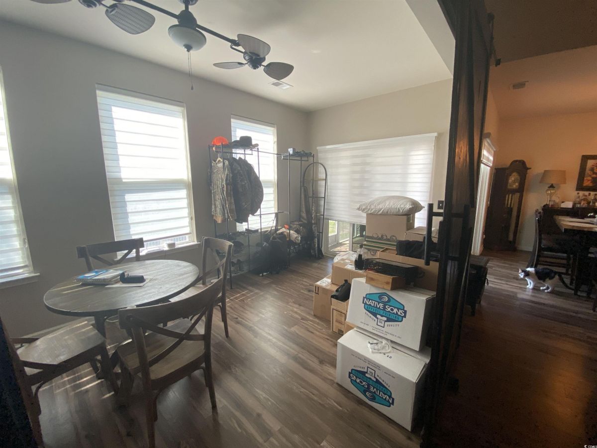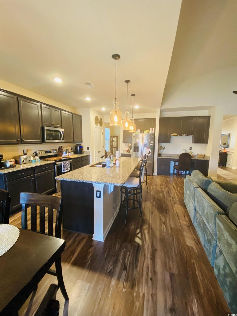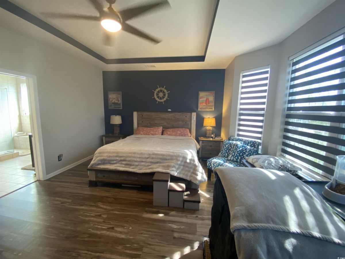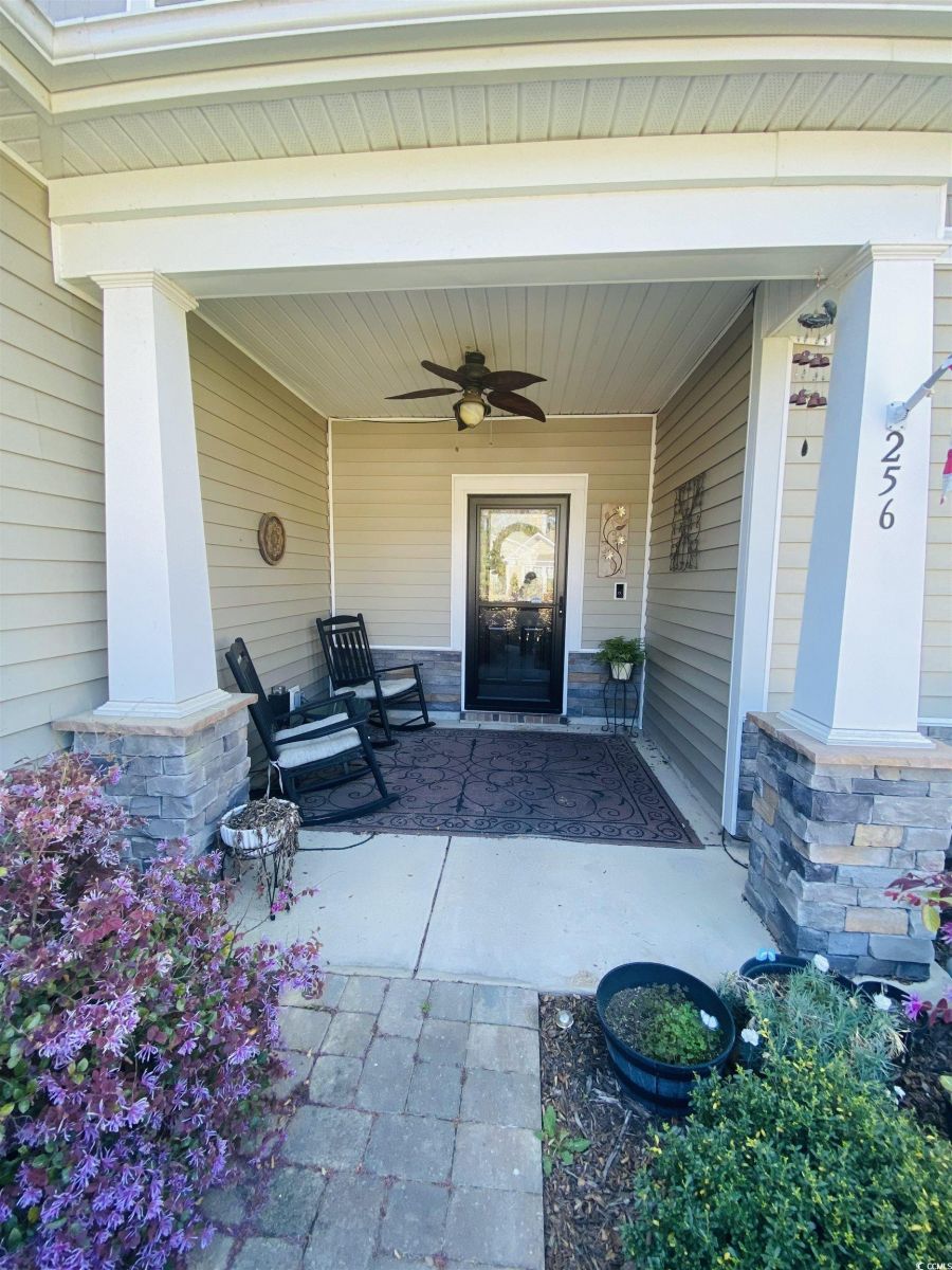 Welcome to 256 Copper Leaf Dr. located on the corner lot of the pond with a fenced in backyard. This exquisite home is move-in-ready and located in the desirable community of Cameron Village located near Surfside Beach, Garden City, Restaurant Row, the Waccamaw River, and Highway 707, offering easy access to shopping, recreation, and attractions. It includes 3 bedrooms, 2.5 bathrooms, and has 2747 sq ft of heated space great for entertaining. With Boasting lofty ceilings, 42 inch cabinets, granite countertops, huge island, stainless steel appliances and spa tile shower this home has a lot to offer. This home also includes significant enhancements such as a sprinkler system, solar panels, motion sensor lights, landscape lights, and garage door opener that is all controlled by compatible apps. There are a lot of storage areas throughout the home and in the garage. Conveying this property is the 9 camera security system and also the washer and dryer. Don`t miss out on this comfortable, safe and welcoming home. It won't stay on the market long.