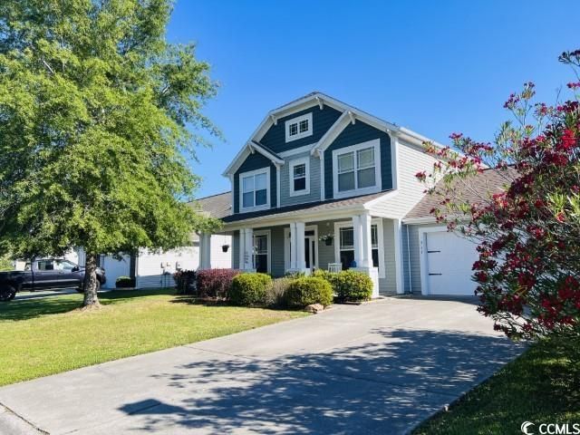 Absolutely lovely Craftsman style home with Big front porch and large fenced-in backyard. Spacious breakfast nook, formal dining, large foyer, and office/den/Play Room with French doors. Lovely Architectural accents featuring, Arched doorways, 9 foot ceilings, tile in dining room, Den/Study/Play Room, living room and kitchen, & family room is wired for surround sound. Kitchen features pantry, Stainless Steel appliances, glass cook top, microwave, dishwasher & refrigerator (Samsung). 42" maple finished cabinetry, breakfast bar, and nook. Sliding glass doors open to two large back patios, built in fire pit and large back yard with 6ft privacy fence. 4 bedrooms with master suite featuring oversized shower, garden tub combo, double sinks, Linen Closet and lots of storage. Walk-in closet in master. Second floor laundry room, Full bath upstairs with linen closet. Irrigation system, door from garage leading to Large, beautiful, private fenced backyard with Mature trees for the perfect combination of Sun & Shade. Elegant custom tile backsplash and Breakfast bar wall in kitchen. Gorgeous community pool, clubhouse, playground, tennis courts, basketball court, & trash included. move in Ready and a short ride to the beach. Shopping, public boat ramp, Golf, and much more. Don't miss this one! Get your appointment Before its gone.