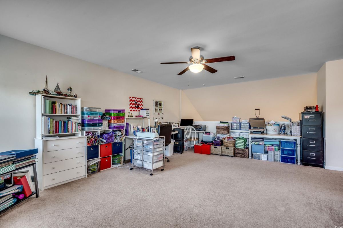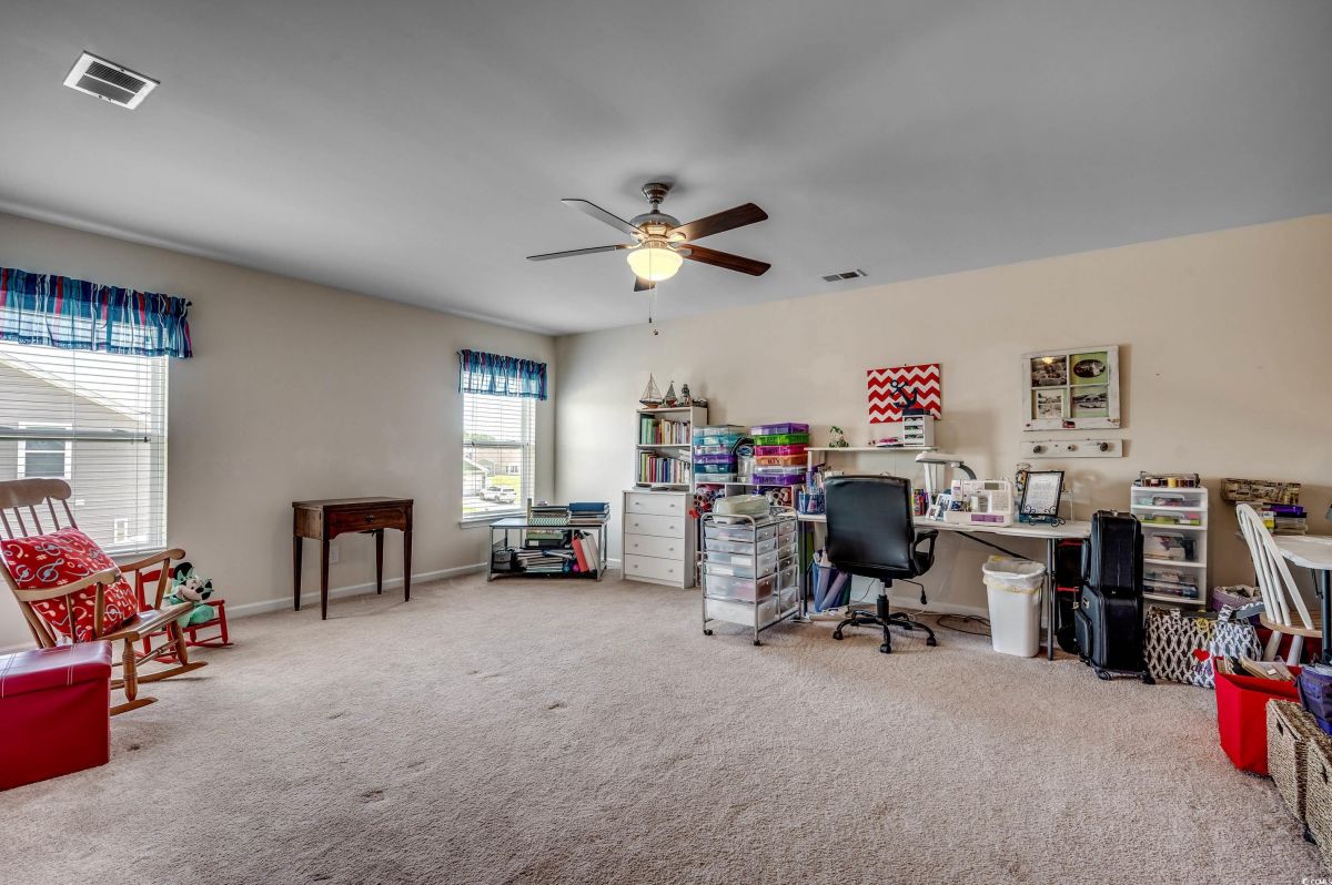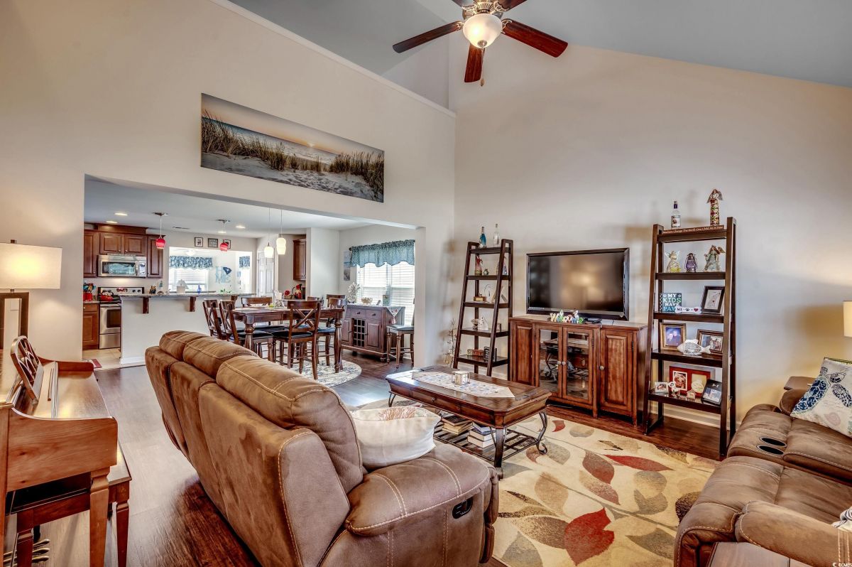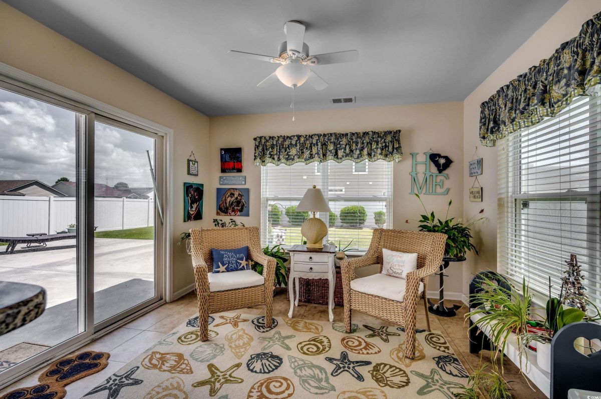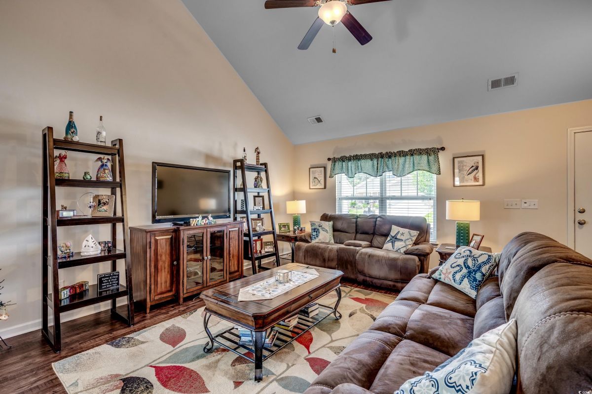 *** Motivated Seller*** Will consider all offers! This newly painted two-story residence in the desirable Cameron Village boasts an open concept design with a great room featuring a dramatic cathedral ceiling, creating an impressive entrance. The first-floor primary bedroom includes a bay window sitting area and a spacious walk-in closet, along with an en-suite master bath complete with a garden tub and separate shower. The Carolina room, next to the kitchen, has patio doors opening to a large, fenced backyard with an extra-wide back patio ideal for entertaining and relaxation, and ample space for you to have a private pool. Upstairs, there are two additional bedrooms, a full bath, and a spacious loft area perfect for a game room or media room. Roof was replaced in 2022, HVAC replaced in 2018.This home also has easy mount aluminum hurricane shutters. Cameron Village community offers excellent amenities including pickleball, tennis, and basketball courts, a clubhouse, swimming pool, and playground. Its location is just one mile from Highway 31, providing easy access to all that Myrtle Beach has to offer.