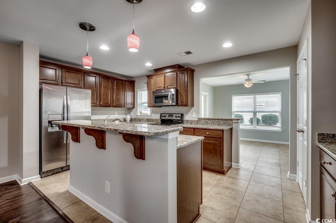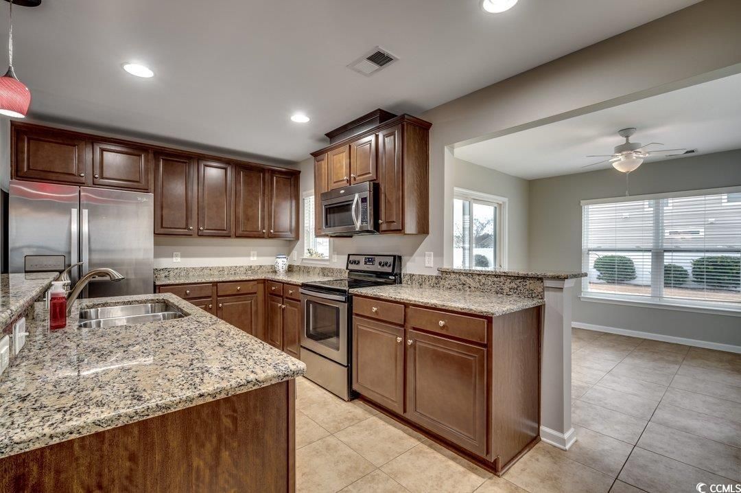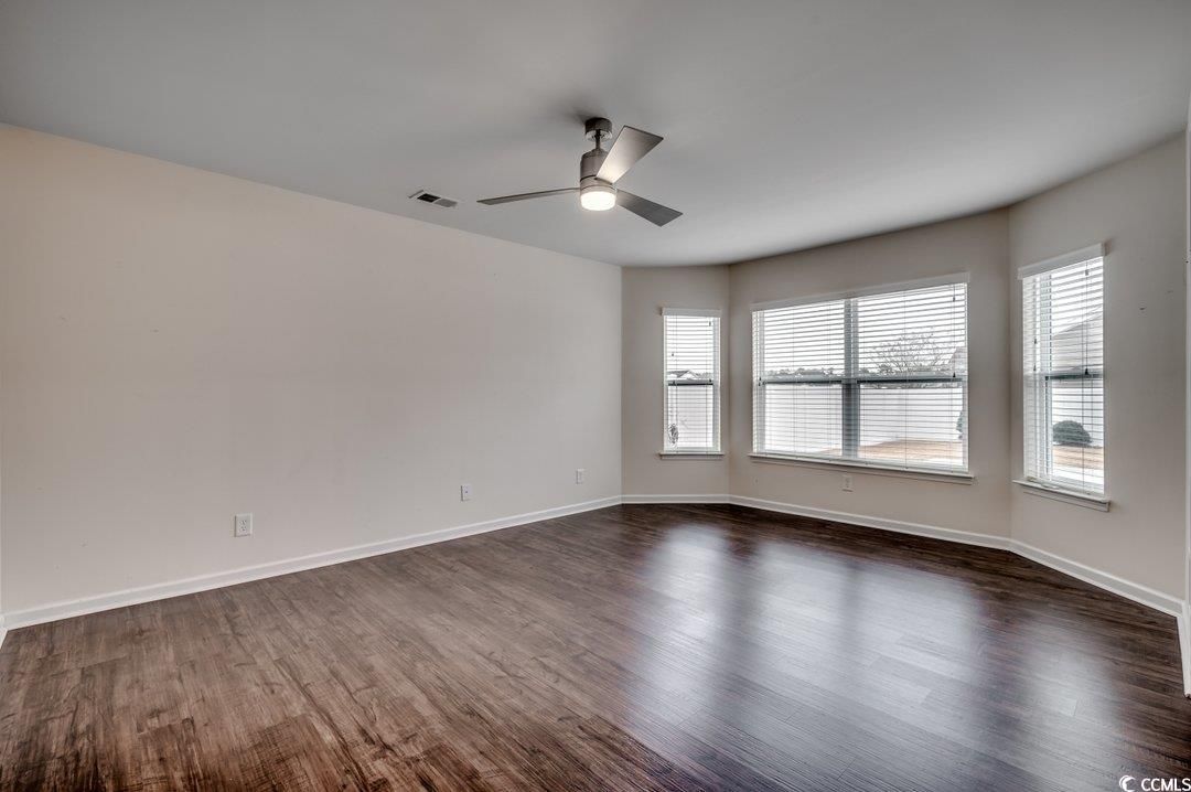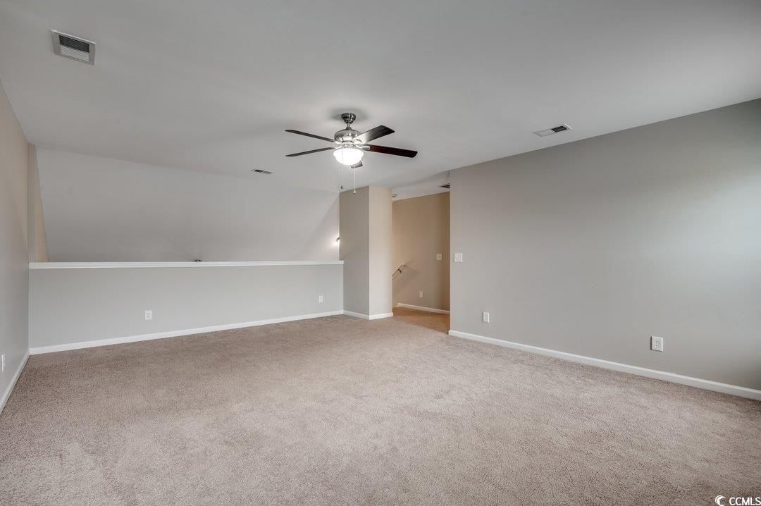 *** OPEN HOUSE SATURDAY 1/4/25 11-2 *** This freshly painted one and half-story residence is located in the desirable Community of Cameron Village. Upon arrival, you are greeted with a welcoming front porch. When you enter the house, you will find an open concept design, the living room features a cathedral ceiling with a ceiling fan. The kitchen features stainless steel appliances with lots of counter space, an abundance of cabinets plus a pantry. Kitchen leads to a cozy Carolina Room to start your mornings or end your day. The first-floor primary bedroom includes a bay window sitting area and a spacious walk-in closet, along with an en-suite master bath complete with a garden tub and separate shower. The Carolina room has patio doors opening to a large, fenced backyard with an extra-wide patio ideal for entertaining, relaxation, and ample space for you to have a private pool installed or a play yard for kids and/or pups! Upstairs, you will find two additional bedrooms, a full bath, and a spacious loft area perfect for a family media room. Roof was replaced in 2022, HVAC replaced in 2018.This home also has easy mount aluminum hurricane shutters. Cameron Village community offers excellent amenities including pickleball, tennis, and basketball courts, a clubhouse, swimming pool, and playground. Its location is just 5.4 miles to the beach, 1.5 miles to Enterprise public boat launch on the Intercoastal and just one mile to Highway 31, providing easy access to all that Myrtle Beach has to offer. Virtual staged photos are included in this listing to show the possibilities.
