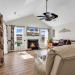 This single level home has great curb appeal with its well-manicured lawn and beautiful landscaping. A covered front patio and a large rear patio with a fenced yard overlooking one of the best water views in the community. When you walk through the front door, you see the large kitchen with an open floor plan and cathedral ceiling showing the dining area and living room. As you look over the open area with tile and wood floors, you see the Fireplace on the backwall. The kitchen has a breakfast bar, Breakfast Nook,lots of open counter space, plenty of cabinets with a pantry and lots of room to work. The kitchen gives access to the utility area and 2 car garage allowing easy unloading of groceries from the car to the kitchen. The split bedroom floor plan allows for privacy. The primary bedroom has plenty of room for your furniture and has a wonderful view of the backyard and water. The primary bath has double sinks, shower and Whirlpool tub. The other two bedrooms on the other side of the home have plenty of room and access to the full bath. Off the Livingroom in the rear of the house is a great 3-season room overlooking the back yard and lake. the roof is 4 years old, the HVAC System with Electric Air Filter is 7 years old. This well-maintained home is bright and is ready for you to move in. All measurements are approximate and not guaranteed; the buyer is responsible for verification. The home also has a lawn sprinkler system, Vinyl Mesh Hurricane Shutters, concrete curbing around gardens, concrete painted/stamped walks and patios, fenced rear yard and water view.