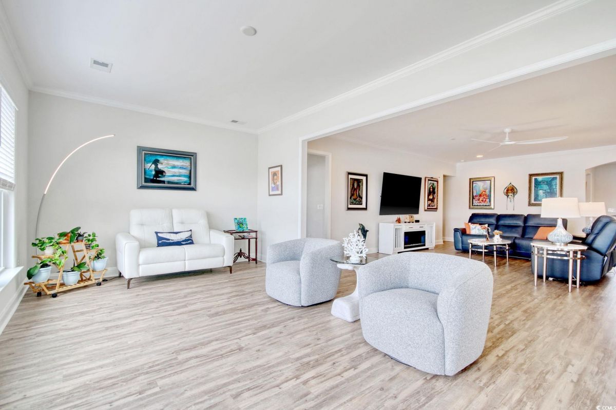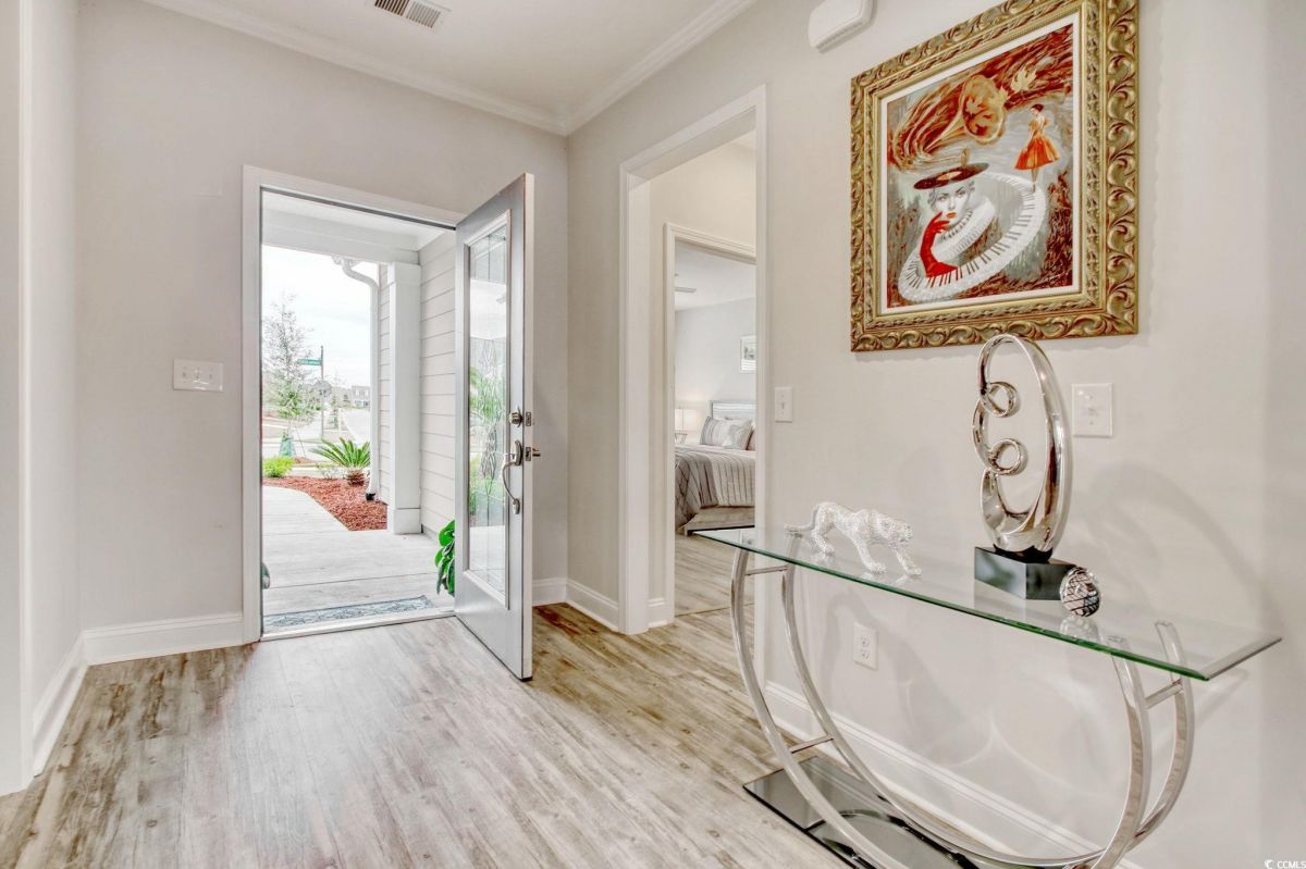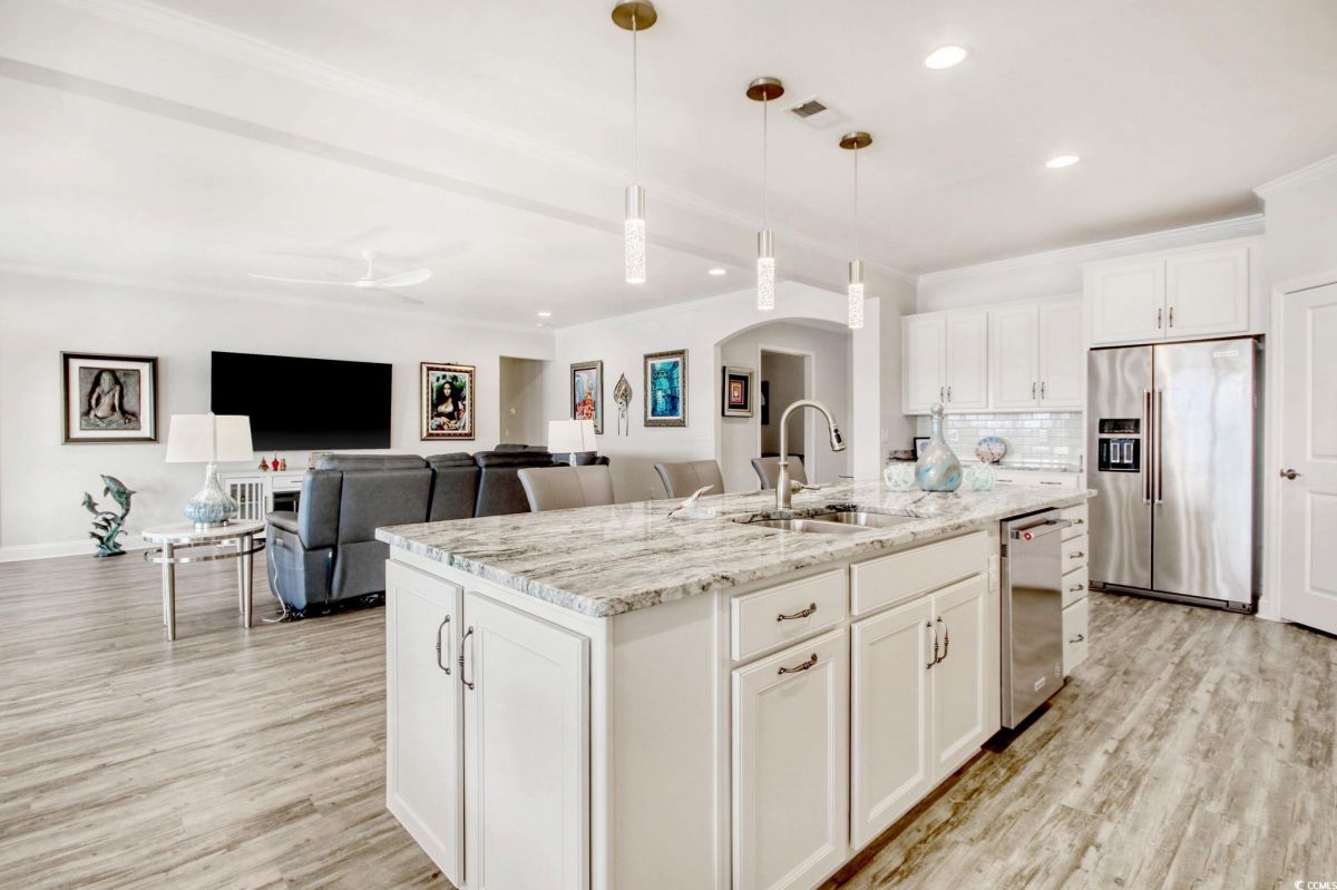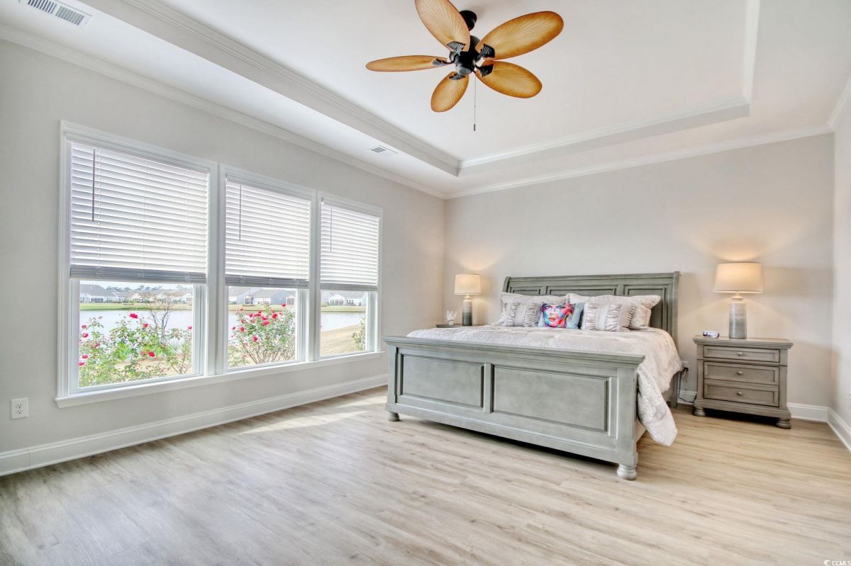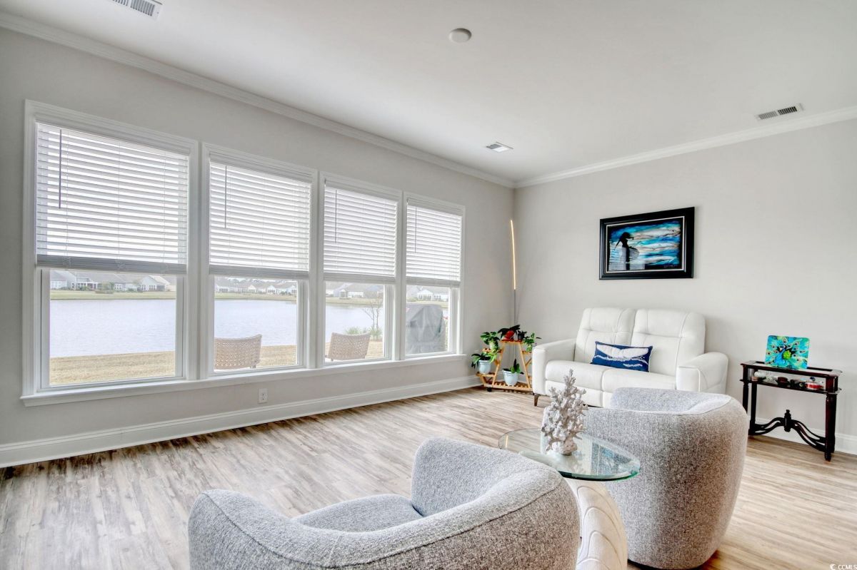 Popular, single story Dunwoody floor plan situated on a premium water view homesite. Premier Active Adult/Lifestyle community with access to world-class Del Webb community amenities, walking paths along the Intracoastal Waterway and private beach access via Grande Dunes Ocean Club. Enter and you are immediately greeted by the light, bright and open floor plan starting with a Foyer leading to a large Gathering Room. The gourmet Kitchen is complete with Kitchen Aid Stainless appliances, upgraded and oversized cabinets, upgraded counters and a large Island...perfect for entertaining. The large Sunroom with oversized windows allows the perfect amount of sunshine into the home. Enjoy the outdoors, water views and beautiful South Carolina sunsets from the Screened Lanai or out on the oversized back patio. Master Suite boasts tray ceilings, huge walk-in closet, double sinks and a walk-in shower featuring wall and floor tile with Rain Fall shower head. Two additional bedrooms with full baths plus a flexible room perfect for an office. Two car garage plus an additional door and space for a golf cart.