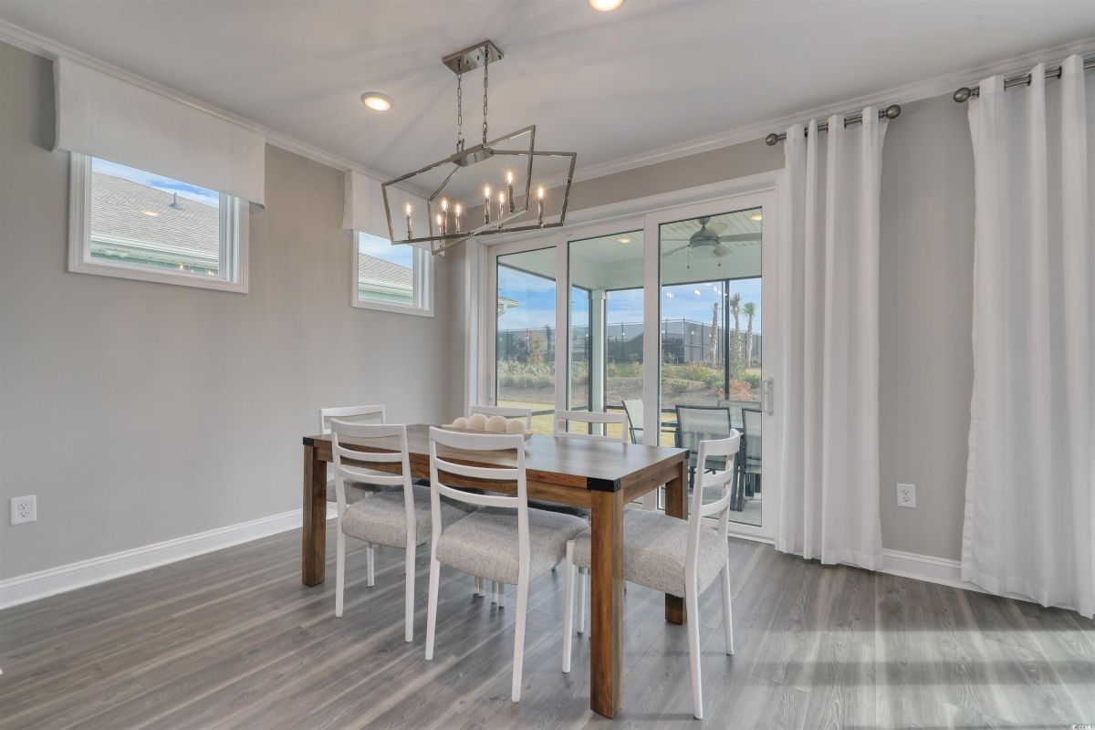 Builder Model Home for Sale in 55+ Community! All Appliances Convey. Phase 1, just a minute walk to the Club House and Amenities. MOVE IN READY NOW - Ask about Builder Special Financing Options and Closing Cost Incentives. Prosperity Plan with Extended Screened Lanai and Double Sliders to Patio. Deluxe Kitchen with Stone Gray Soft-close Cabinetry and roll-out trays. Kitchen-Aid Gas Range and Stainless Steel Appliances. Calcatta Gold Quartz Countertops, White Modern Backsplash, Kitchen Faucet Upgrade and Under Cabinet Lighting. Kitchen Island, Walk-in Pantry and Cafe Space. Bonus Flex Room/Office Space with Glass French Doors. Luxurious Owners & Guest Bath with Frameless Shower doors, Handheld Shower Head and Grab Bar in Owners Bath. Owners Suite with Walk-in Closet. Laminate Flooring throughout Main Living Areas and Bedrooms and White Water 12x24 Tile in Baths/Laundry Room. Laundry Room Sink and White Cabinets with Whirlpool Washer and Dryer. Upgraded Paint package, upgraded Traditional Trim Package with Crown Molding, Wainscoting and Drop Zone at Owners Entry. Upgraded 8 Ft. Front Door. Decorative Lighting, Ceiling Fans, Brushed Nickel Finishes and Blinds Included. Tray Ceilings in Gathering Room, Owners Suite and Flex Room. Finished Garage with Walk-up Stairs to Attic Storage above Garage. Irrigation System, Pest Control System and Bronze Gutters included. Furniture may be purchased as separate Bill of Sale. Remaining Structural 10-year Builder Warranty and Remaining 5-year Leak Protection Warranty. Just a Golf Cart ride to the Beach! 55+ Active Adult/Lifestyle Community – Age Restricted, Central North Myrtle Beach, only 1.5 miles from the ocean. Golf Cart friendly, pets/fences allowed, on-site Amenity Center/Clubhouse, Yard Care, High-Speed Internet and Cable included in Monthly HOA.