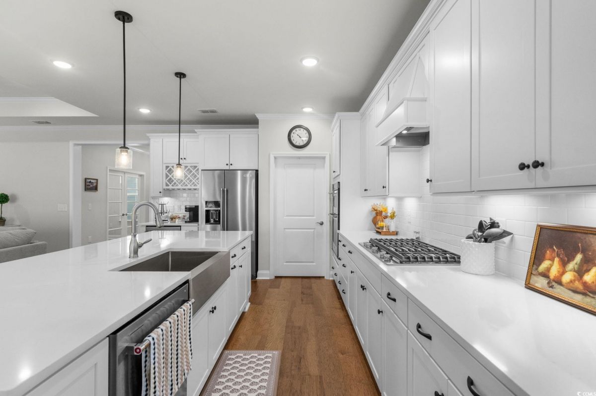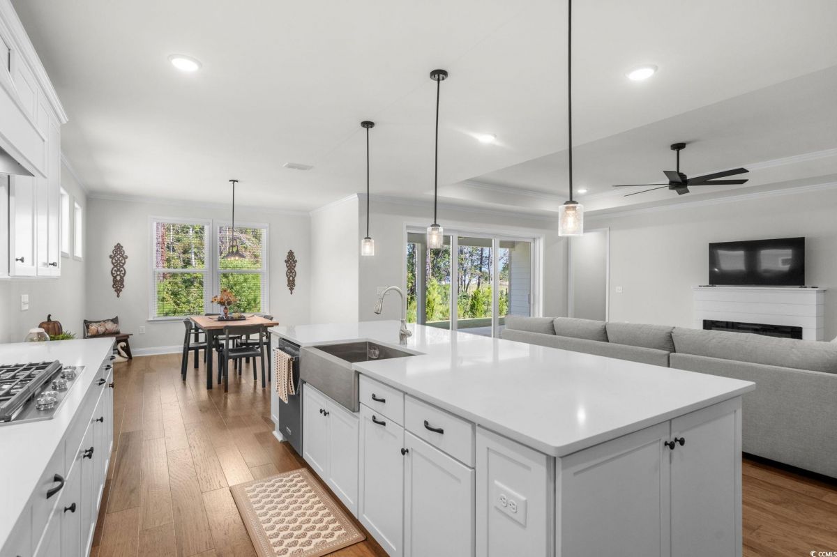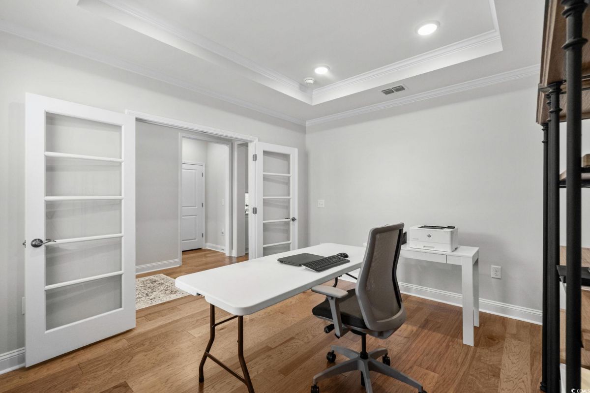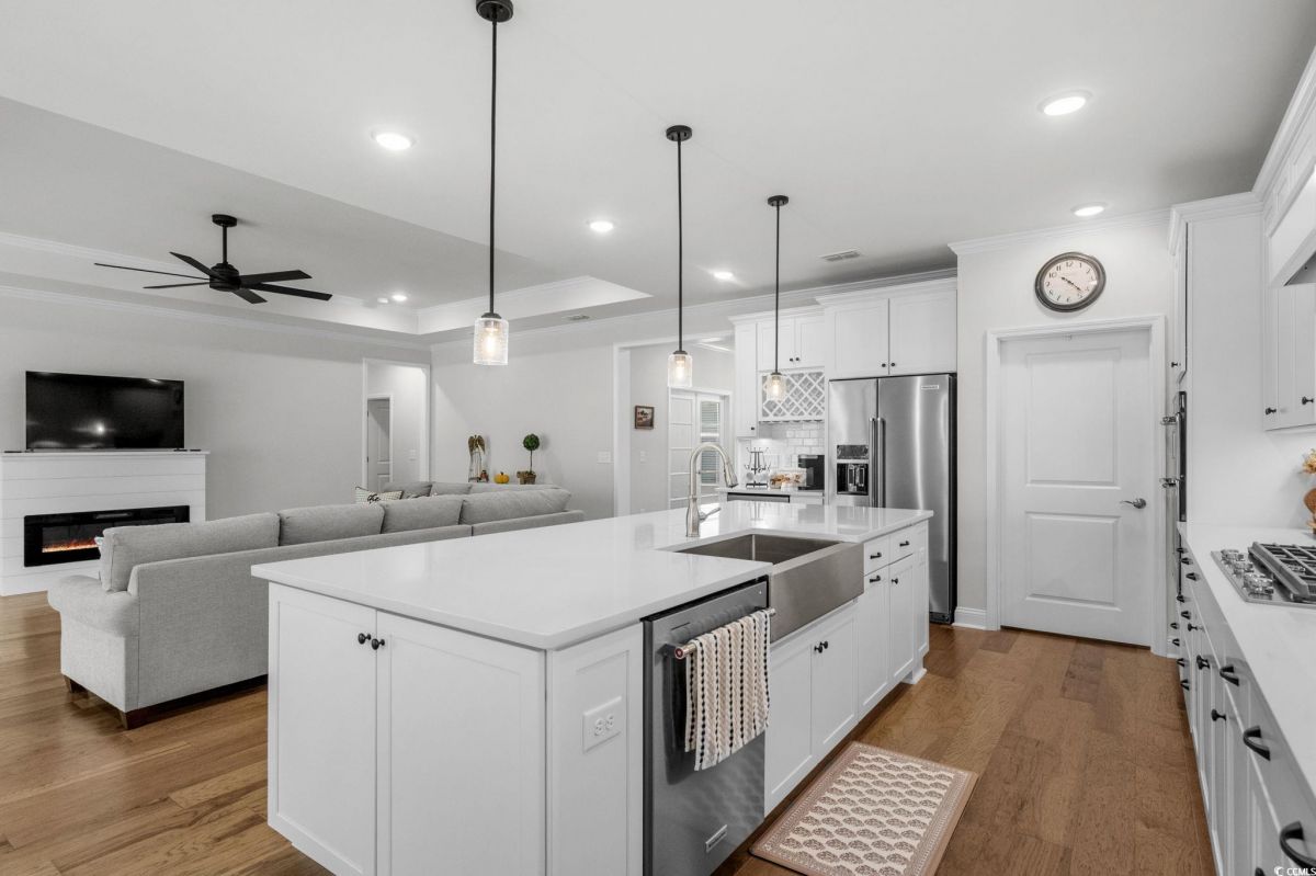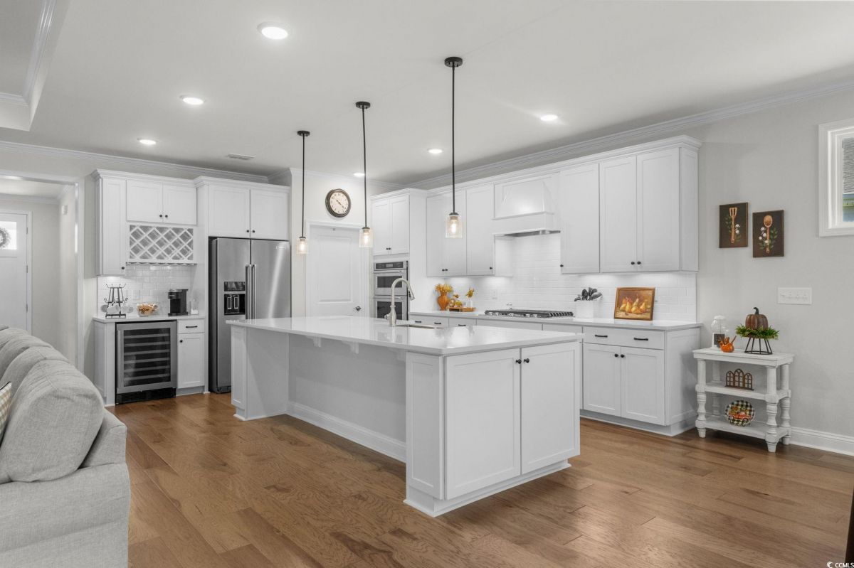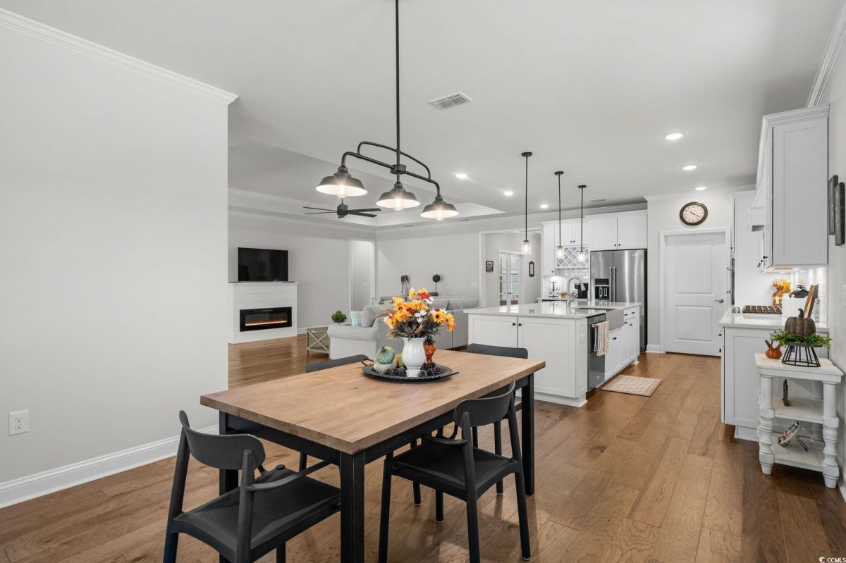 Astonishing Move in Ready Must Sell!! This 3-bedroom 3-bathroom home featuring office flex space, the upgrades and Lot location of this home at this price will not last long. You cannot find this value of a home completed in this neighborhood that compares. Located in highly sought after Del web North with tons of amenities and NMB location with even more amenities. As soon as you pull up to the home you will notice the Hardie Board finished home equipped with Gutters and a 3-car garage and Front Porch. Walking in the home you will quickly feel the quality built home featuring front office flex room that could be used for a 4th Bedroom. Guest bedroom off to your left leaving this home a true split bedroom floorplan. From your Grande foyer entrance you will start to notice all the Trim and Trey Ceilings and Hardwood floors throughout. The Great room features a Custom-built Fireplace, Upgraded lighting fixtures and open kitchen concept. The kitchen is a Chiefs Dream with Upgraded Kitchen aid appliances, gas stove cooktop, custom hood and microwave oven combo, tile backsplash and under light cabinets. Including a wine rack and additional beverage fridge and good size pantry this kitchen is equipped for all!! Large Eating, Dinning area also with new lighting fixture is still open to the kitchen and living room!! An expansive Master Bedroom this home is featuring trey ceiling, and custom light fixture. Master Bathroom is a must see featuring massive walk-in tile shower!! Dual vanities and tons of cabinets space, Private toilet room and walk in Closet. Walking to the other side of the home Featuring your 3rd Bedroom and another Full bathroom, Stop and drop room, and Separate Laundry room. Enjoy any part of the day Outside in your newly screened in porch overlooking a spacious yard with protected greenspace!! Del Webb North Myrtle Beach offers a rich, resort-style living experience tailored for active adults. With a resort-like clubhouse, both indoor and outdoor pools, a variety of sports amenities, creative activity spaces, and a lifestyle director ensuring there’s always something to do, this community is ideal for those seeking both wellness and connection, all within walking distance to the beach and a short ride to local shopping and dining. North Myrtle Beach also offers close access to the ocean, Tons of city access such as library, facilities and more!! This is a must see.
