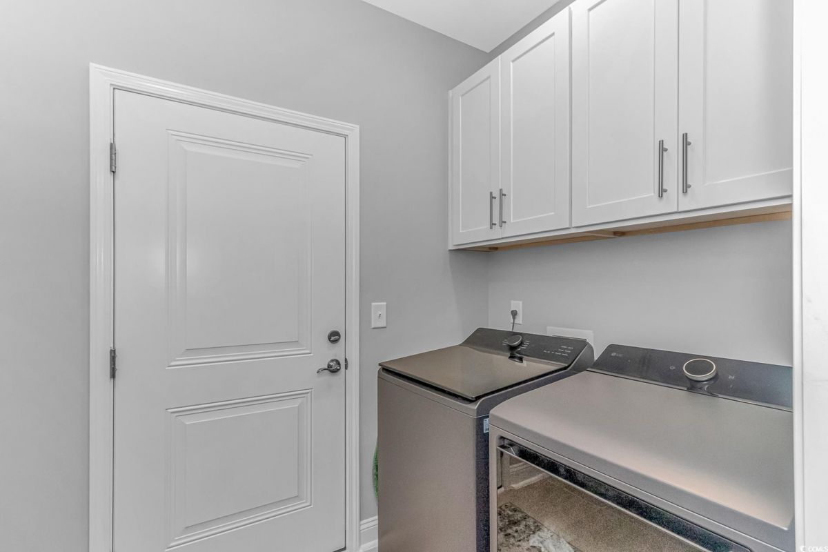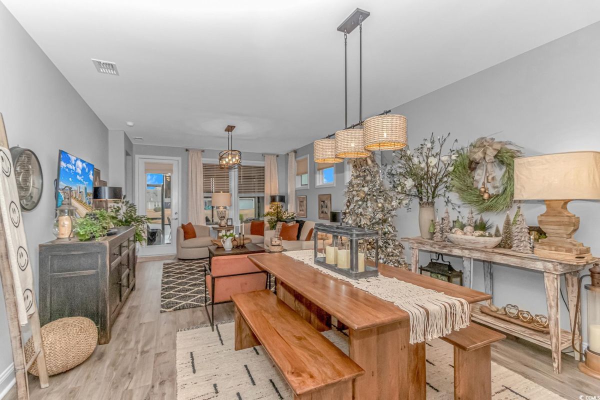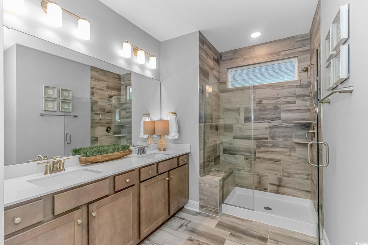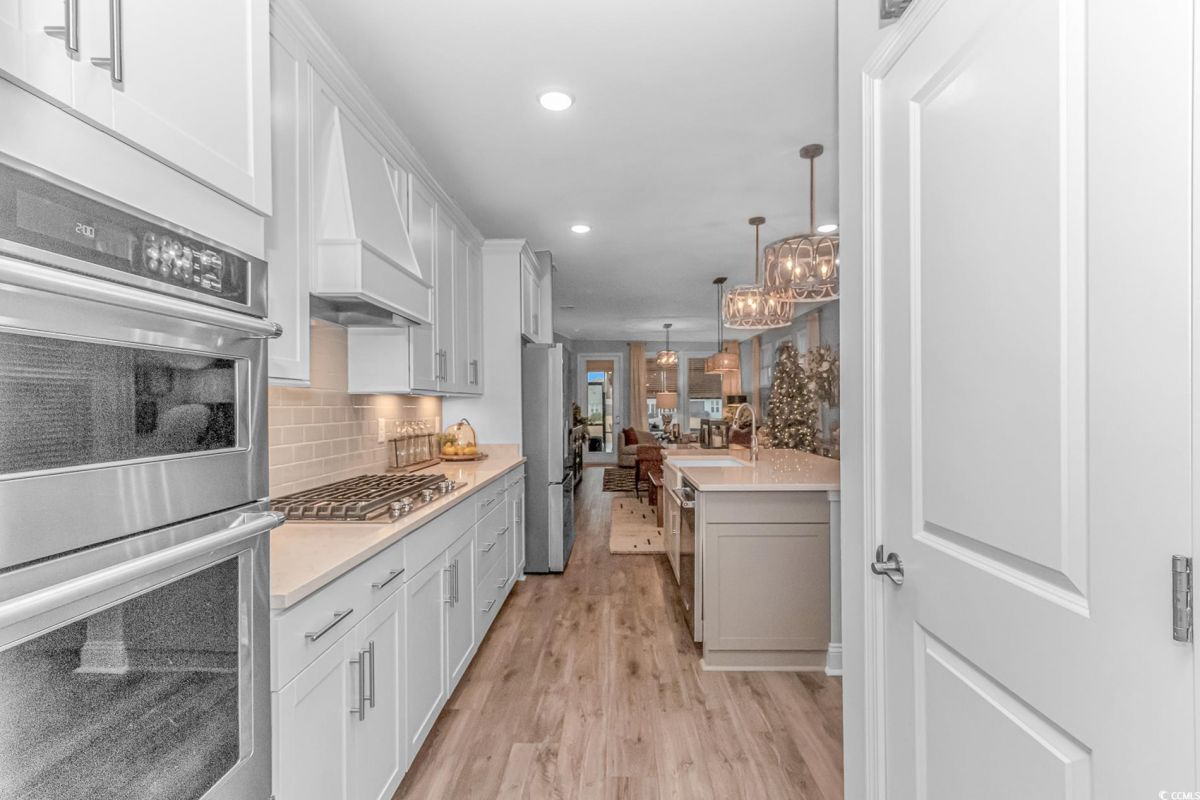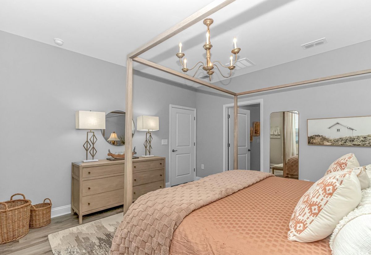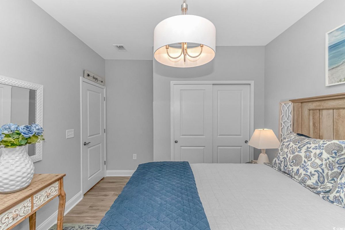 Nestled in the heart of Del Webb North Myrtle Beach, the ultimate retirement destination, this stunning single-story home showcases exceptional upgrades and embodies the sought-after lifestyle of a vibrant 55+ active adult community. Situated on a premium pond lot, this home combines luxury, functionality, and picturesque views, making it the perfect retreat for relaxed yet active living. Step inside and be greeted by an inviting, open-concept living space painted throughout in the versatile Agreeable Gray. The upgraded gourmet kitchen is a chef’s dream, featuring a gas range, double wall ovens by KitchenAid, a wood hood, quartz countertops, a single-basin farmhouse sink, a tile backsplash, under-cabinet lighting, and soft-close cabinets, including a built-in trash can cabinet. Designer pendant lighting illuminates the two-toned kitchen island, creating a perfect focal point for entertaining. The spacious master suite offers serene pond views, a luxurious chandelier, and a beautifully appointed en-suite bathroom with upgraded tile flooring, a glass-enclosed walk-in shower, double vanities, a walk-in closet, and a linen closet for added storage. A guest bedroom and guest bathroom with tile flooring and a tub-shower combo provide comfort and privacy for visitors, while a flex room with a closet adds versatile space for an office, hobby room, or additional guest accommodations. The home’s thoughtful details continue with a laundry room featuring cabinets and included washer and dryer, upgraded flooring throughout, and a Lennox HVAC system with a filtration system for added comfort and efficiency. Outside, the screened porch with privacy shades and an epoxy floor offers a tranquil space to enjoy the pond views, while the grilling patio is perfect for outdoor dining. The epoxy-coated front porch and freshly painted front door add to the home’s curb appeal. The oversized two-car garage features epoxy flooring, painted walls, granite-topped cabinets, and pull-down attic stairs for abundant storage space. Del Webb North Myrtle Beach enhances your lifestyle with resort-style amenities, including a 12,000-square-foot clubhouse, state-of-the-art fitness center, indoor lap pool, outdoor zero-entry pool, tennis, pickleball, bocce ball courts, and scenic walking trails. A full-time lifestyle director ensures there’s always something exciting happening, from social clubs to cultural events. Located in the heart of North Myrtle Beach, this home places you just minutes from pristine beaches, vibrant local events, boutique shopping, and fine dining. With a mild climate, retiree-friendly tax policies, and proximity to excellent healthcare, North Myrtle Beach is the perfect place to call home. Don’t miss the opportunity to own this exceptional property in one of the most sought-after communities on the Grand Strand. Schedule your private tour today and start living the retirement of your dreams!