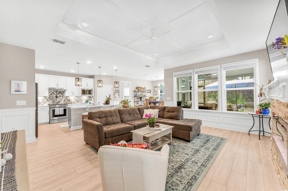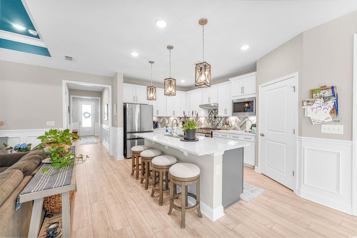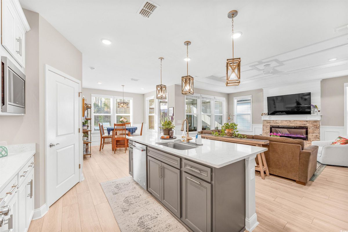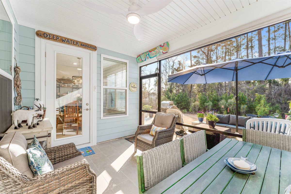 Turnkey-Move in Ready! Stunning-rare & preferred wooded private rear lot location. This Mystique 3 bedroom plus flex model (can be-4th Bedroom, library, office) 1969 sqft home is in the*Finished Construction Phase 3 Area* with immediate occupancy post close offered by seller. No more construction noises! Fully ready to move in and ENJOY! Custom designed upgrades throughout. Chairs and squares in main living areas, fireplace in LR, tray ceilings in primary, flex and LR, nickel shiplap in primary, screened and tiled lanai, double concrete patio,..42inch upgraded soft close kitchen cabinets, quartz top, & SS Kitchen Aid appliances. This Del Webb Active, +55 community is only 1 mile from the beach! A full-time lifestyle director schedules monthly fun activities and healthy lifestyle events to join if you desire. A low-country easy living home, with single level split bedrooms, (owners suite has double sinks, fully tiled walk-in rainfall shower, private water closet, plus a large walk-in clothes closet). Second bath with tub & fully tiled. An “open concept" home that includes a den-4th bedroom, or office space-a true "flex room". Completed construction 5/2024- Limited 10-year Builders warranty transfers to new owners. This gorgeous home is ready & waiting for you. All window treatments, lighting and ceiling fans convey with sale. Tile & laminate flooring throughout, NO carpets. Golf cart AND pet friendly, fences & long-term rentals allowed. LOW monthly HOA fees include a resort style community center, indoor heated saltwater lap pool, outdoor infinity saltwater pool plus 2 hot tubs, 2 cabanas, outdoor SS kitchen, gas conversation firepits, pickle ball & bocce ball courts, a state-of-the-art fitness center plus a putting green. WOW!!! The community center is brand new, opened July 2023! Lawncare, all amenities, spectrum high speed internet & cable with 2 boxes included in the LOW HOA mthly fee. Just 30 minutes to Myrtle Beach airport. Lots of restaurants, live shows, golf courses and fun activities just minutes away from your new home. And... Don’t forget the beach, fishing and boating activities. A perfect low to no maintenance year-round or fun seasonal vacation home! Transferable Builder limited 10-year warranty included. HOA capital contribution fee of 0.5% of sales price to be paid at closing. Listing agent is the owner.