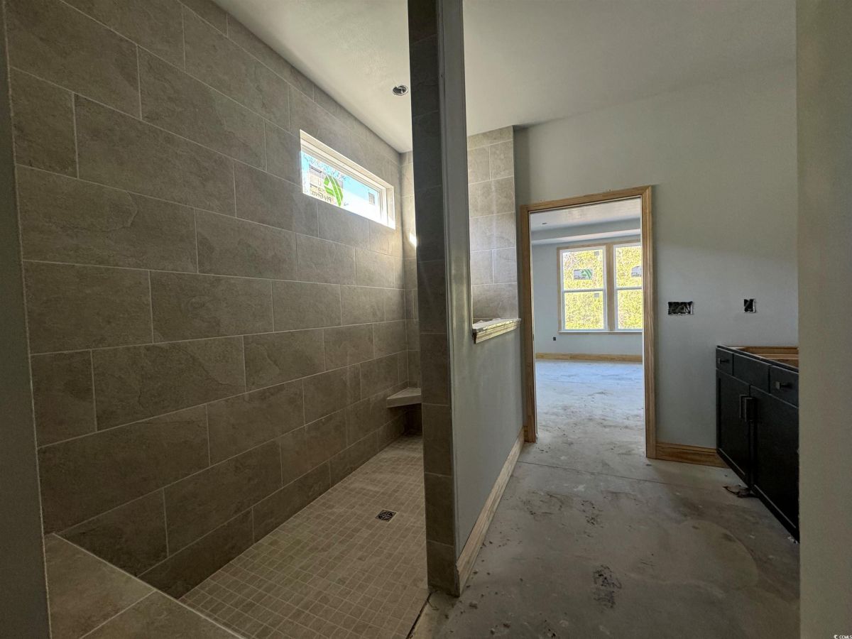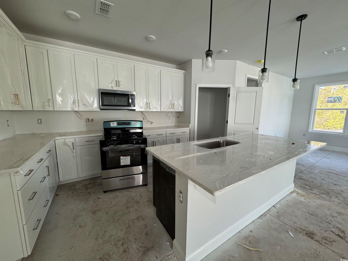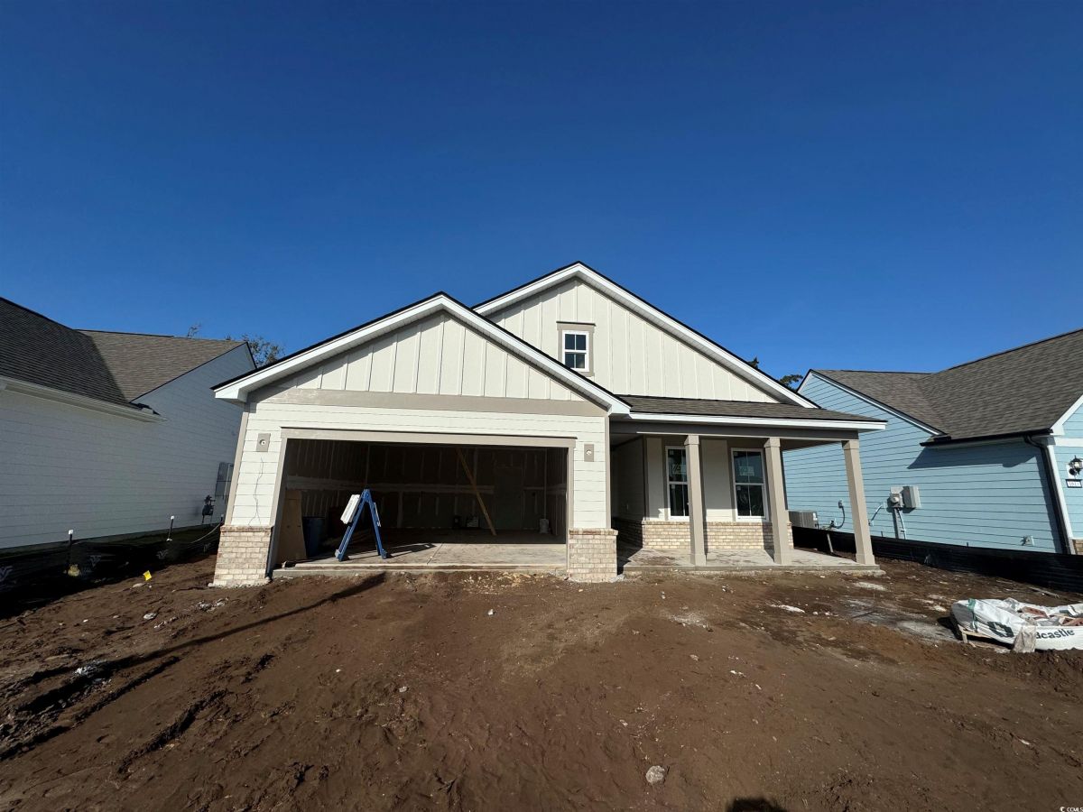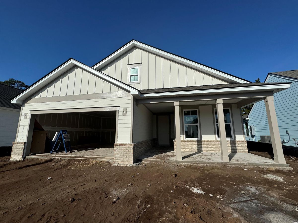 Mystique Floorplan with Extended 26' Foot Garage Option - MOVE-IN READY NOW! Mystique on Wooded/Private Homesite, close-out phase. Open Floorplan with Deluxe Kitchen, Upgraded Kitchen-Aid Appliances, Gas Cooktop, Quartz Countertops, Under-Cabinet Lighting and Pendant Lights. Modern yet classic 4 x12 White Subway Tile, large Kitchen Island and Corner Pantry. Matte Black Hardware and Faucets, Gold Hardware on Kitchen Cabinets, Upgraded Trim Package with Drop Zone at Owner's Entry. Owners Suite with Fully-Tiled Walk-in Shower/ADA Accessible, Tray Ceiling and Spacious Walk-in Closet. Flex Room/Office Space with Glass French Doors. LVP Flooring through out in Hearth "Warm Honey" color, Upgraded Savannah White 12 x 24 large Tile in Baths & Laundry. No Carpet! Screened Porch, Patio and Gas Line Stub-out for BBQ. Attic Storage above garage accesssible via pull-down ladder. ALL NEW 55+ Active Adult Community – Age Restricted, Central North Myrtle Beach, only 1.5 miles from the ocean. Golf Cart friendly, pets/fences allowed, on-site Amenity Center/Clubhouse, Yard Care, High-Speed Internet and Cable included in Monthly HOA.
