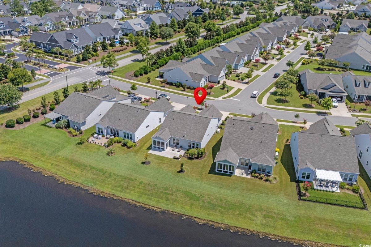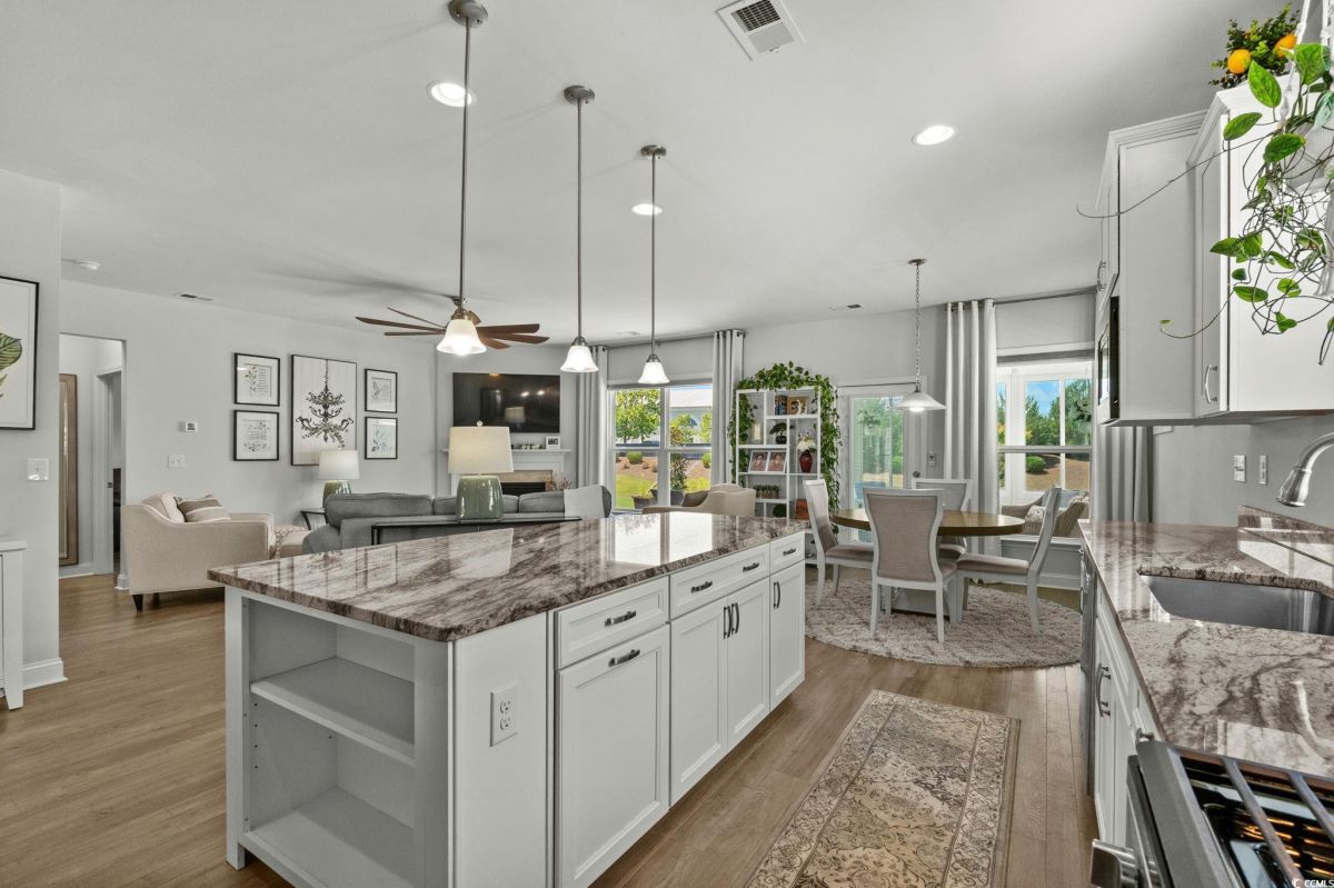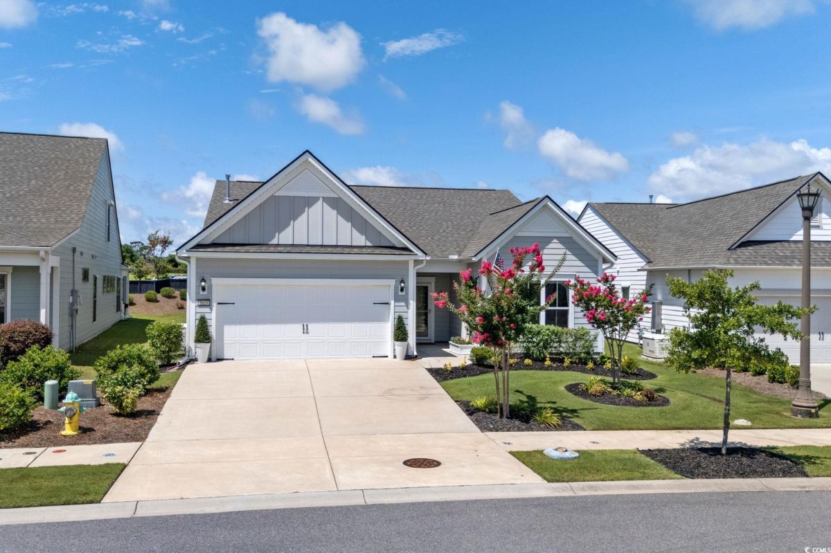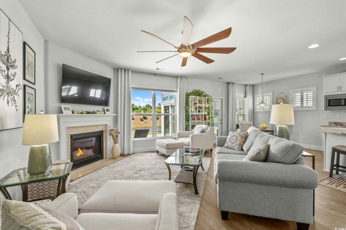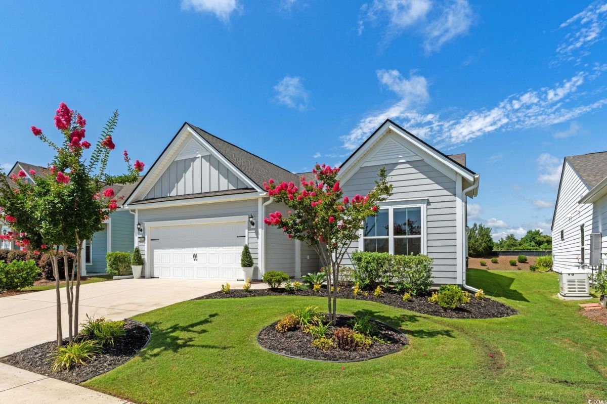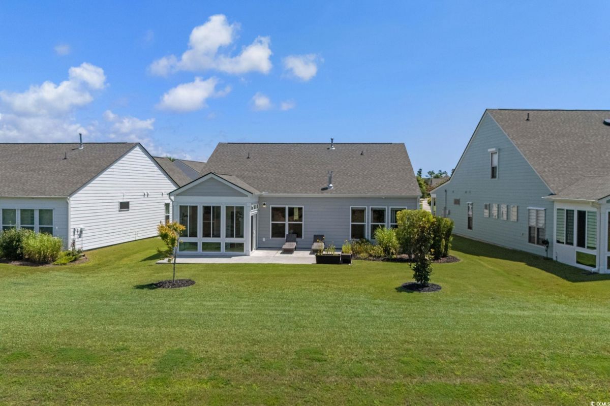 Welcome to your new home in the highly desirable Del Webb at Grande Dunes community, an exclusive 55+ neighborhood. This beautiful 3-bedroom, 2-bathroom property, which shows like a model, features the popular Abbeyville floor plan. It offers a spacious open-concept kitchen, dining, and living area, highlighted by a cozy fireplace in the great room. The kitchen is a chef’s dream, with marble countertops, a large island, stainless steel appliances, and a pantry. Situated on an exceptional homesite, this home provides stunning views from multiple rooms, including a cozy 3-season glass-enclosed sunroom. The private backyard offers peaceful pond views and no homes directly behind it, ensuring tranquility and privacy. The upgraded landscaping enhances the outdoor space, providing a beautifully maintained environment to enjoy year-round. The primary bedroom is filled with natural light, creating a serene retreat. The owner’s bath features a double vanity with a gorgeous granite countertop, a tastefully tiled shower, and a spacious walk-in closet. Built with modern standards, this home includes energy-efficient features, such as radiant barrier sheeting in the attic to help reduce energy costs, irrigation, a Sentricon and Taexx termite system, and gutters. The garage is finished with a durable epoxy floor, providing both functionality and style. The extra-wide driveway ensures plenty of space for two vehicles. Additionally, this home is equipped with a natural gas whole-home generator, ensuring peace of mind during power outages, so you can continue to enjoy the comfort and convenience of modern living no matter the weather. Del Webb amenities are unparalleled, offering a vibrant active community experience. Meet new friends at the monthly events and daily activities hosted at the Amenity Center, take a refreshing dip in the indoor or outdoor pool, or stay active with facilities like the gym, bocce ball, pickleball, and tennis courts. Enjoy leisurely strolls or bike rides along the countless sidewalks and the paved path running alongside the beautiful intracoastal waterfront. Running errands or heading to the beach is a breeze with your golf cart—the ultimate beach life necessity! And speaking of the beach, easy access is granted via the Grande Dunes Beach Club, a delightful amenity included in the HOA amenities.