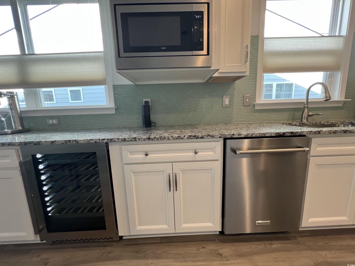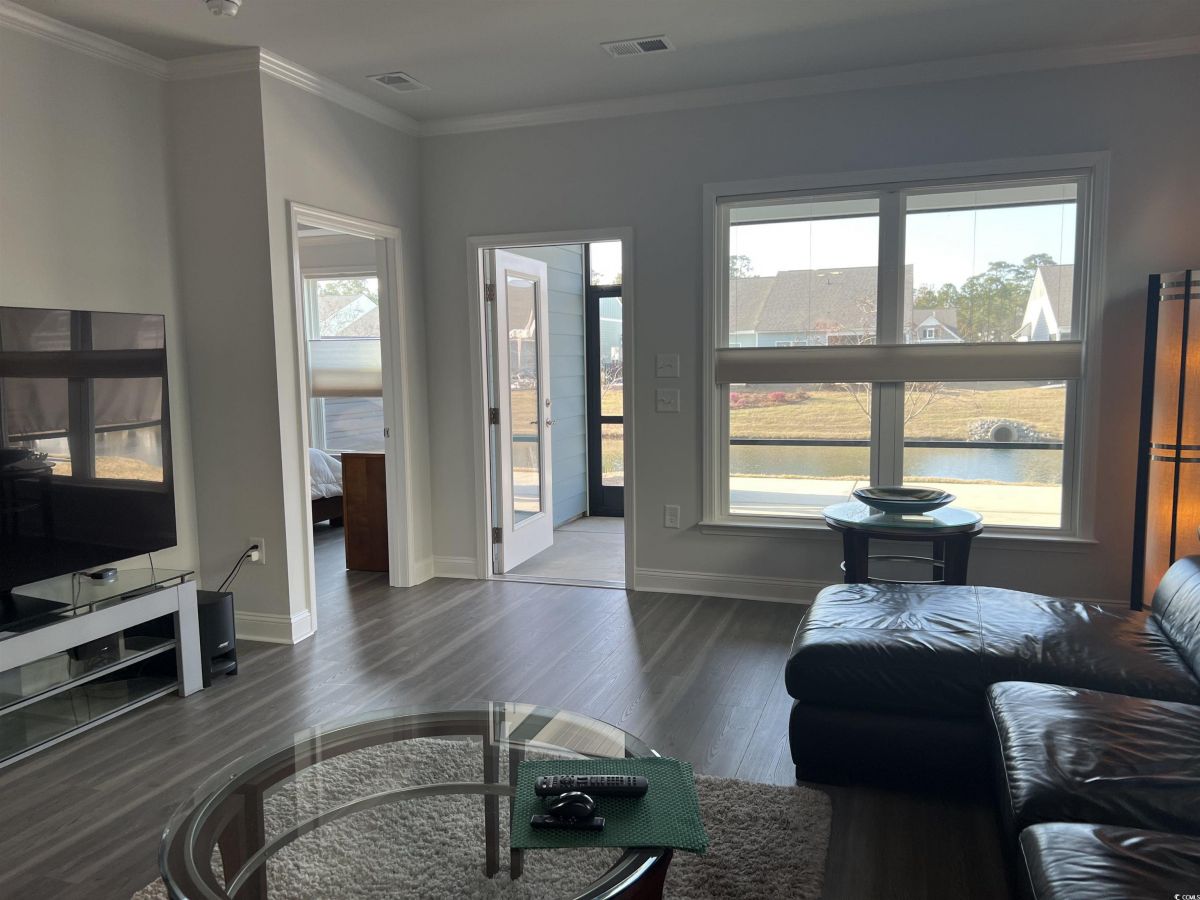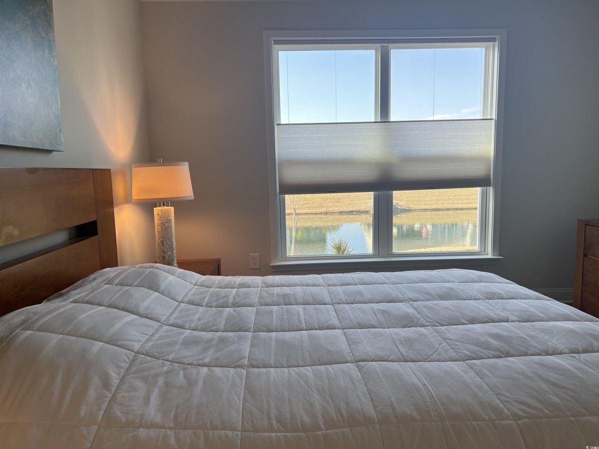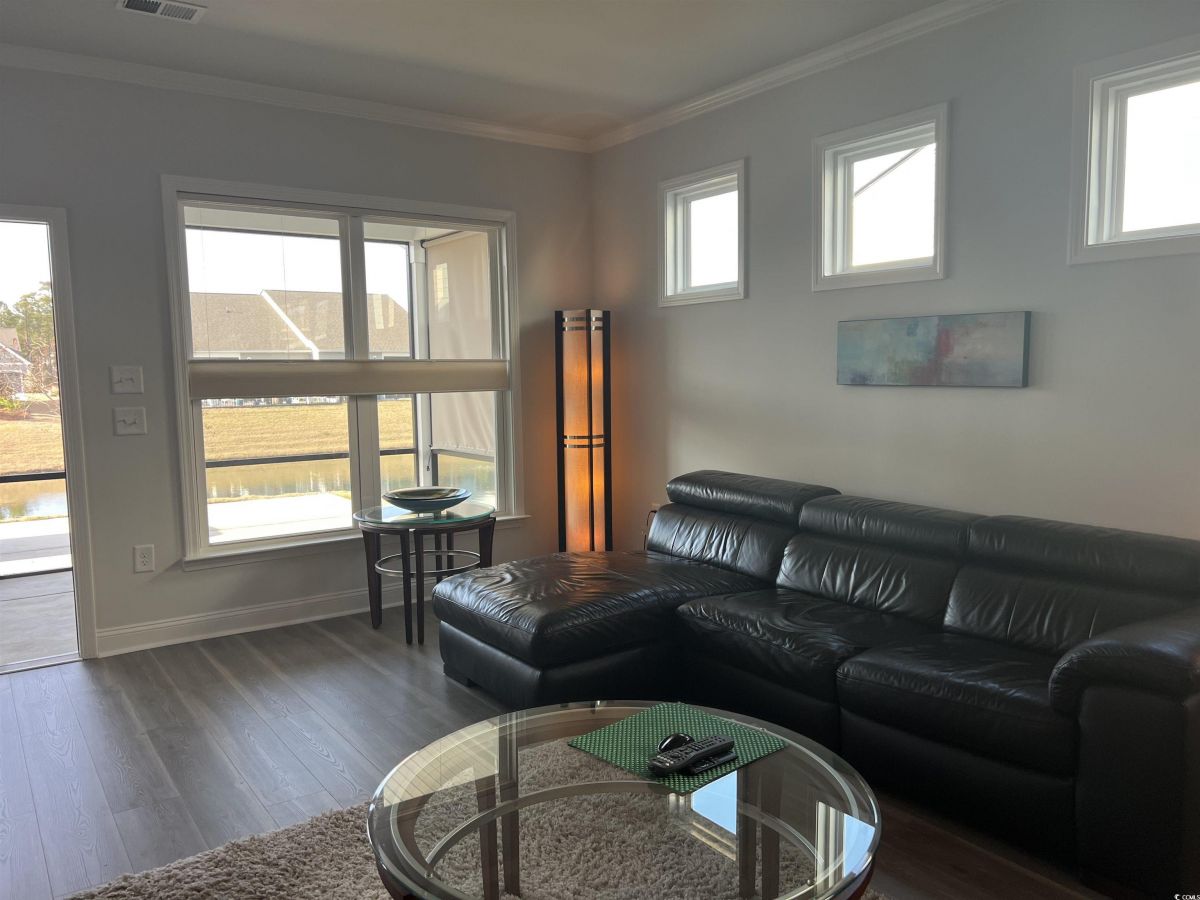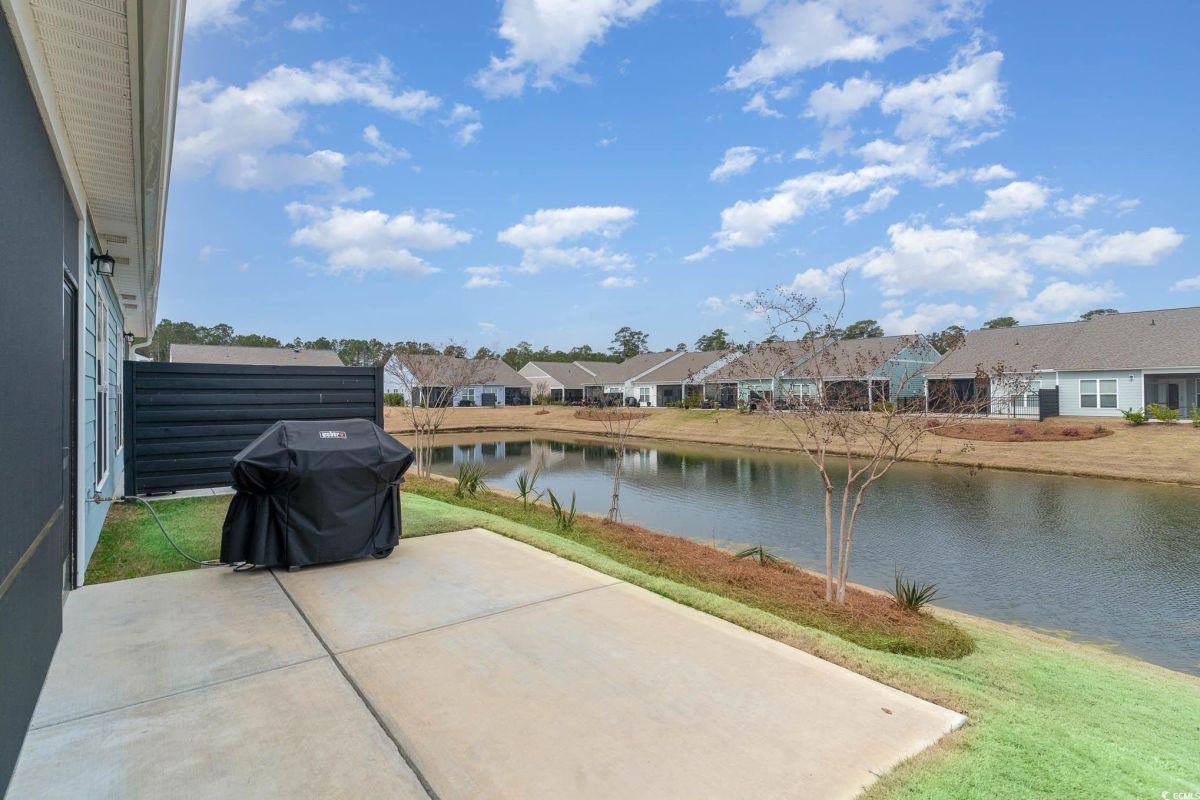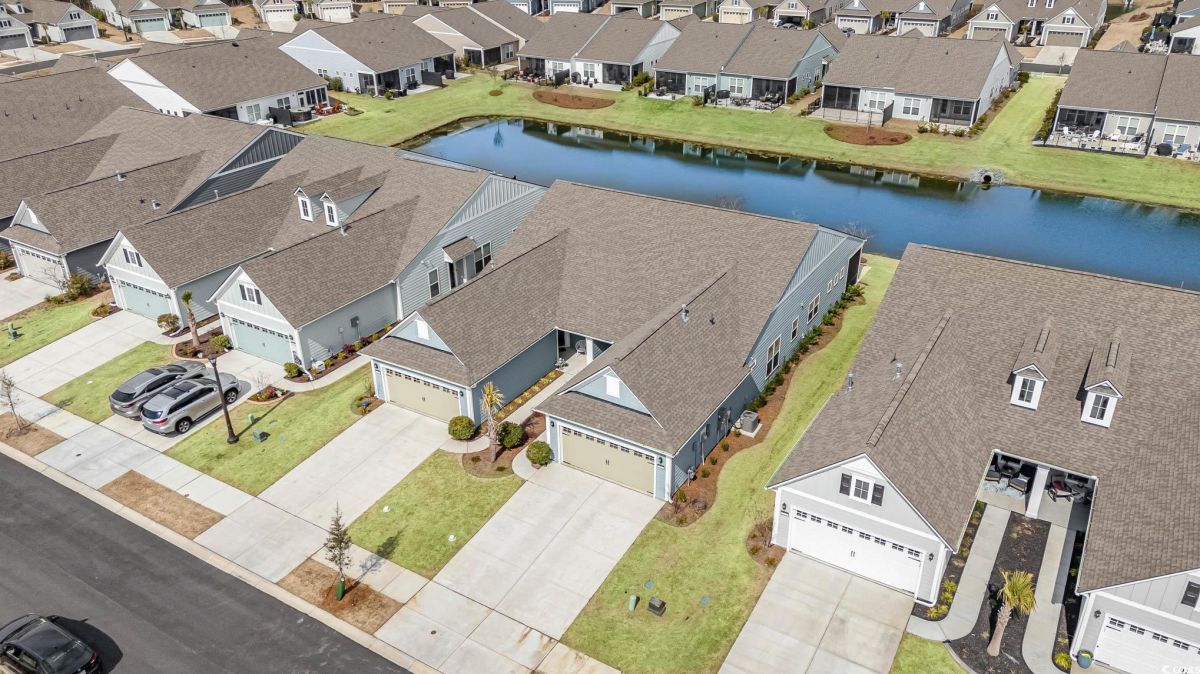 Welcome to 5834 Cremona Drive. This waterfront home is bright and airy with lots of upgrades making it the perfect place to enjoy the Del Webb lifestyle. Del Webb Grande Dunes is located in the most desirable section of Myrtle Beach with shopping, dining, golf and beaches all close by. This home features an upgraded kitchen with top end Kitchen Aid appliances, including an professional level gas range, a whisper quiet dishwasher and a spacious French door refrigerator. The kitchen's work island is perfect for the aspiring chef, and and the beverage center showcases your wine collection with a wine refrigerator, wine rack and an extended granite counter top. The glass tile backsplash, staggered cabinetry and soft close hardware complete this kitchen with comfort and elegance. The screened lanai is a great spot to enjoy the waterfront and soak up some sunshine. The back patio features a gas hookup for your grill and plenty of space to enjoy the outdoors. The interior of this home is laid out perfectly to enjoy water views from both the primary bedroom and the living room. The architectural details on this home include "chairs and squares" wainscotting, crown molding and a tray ceiling in the primary bedroom. The primary bath features a double vanity, tile shower and a large walk-in closet. The second bedroom offers plenty of room for your guests and the flex room is perfect for an office, a second living space or an exercise room. The finishes in the home are outstanding including tile, hardwoods and matching granite in the bathrooms. Del Webb has an abundance of amenities including indoor and outdoor pools, a bustling club house, tennis courts, pickleball courts, day docks on the intracoastal waterway and access to the Grande Dunes Ocean Club. Don't miss out on the opportunity to see this home. All measurements are considered reliable but are not guaranteed and should be confirmed by buyer or their agent.