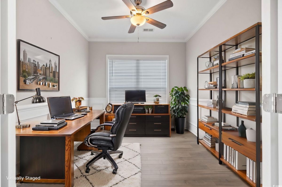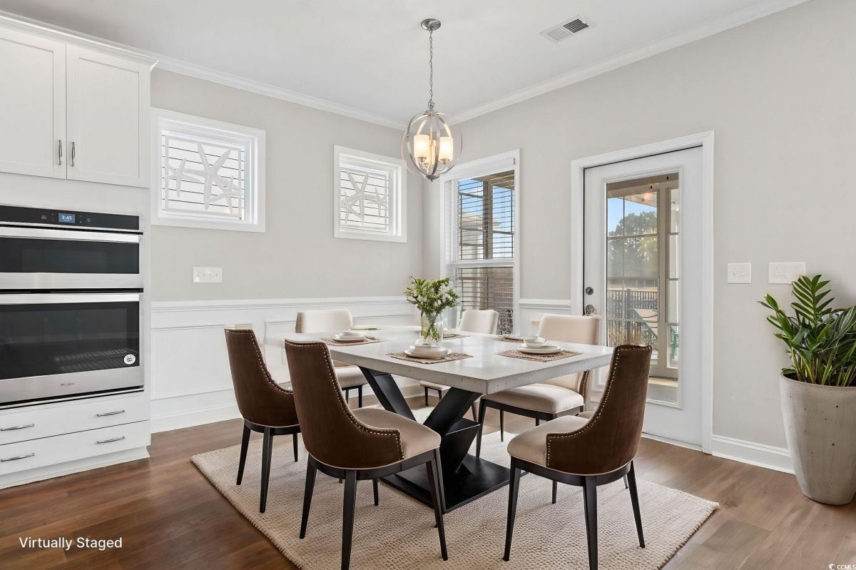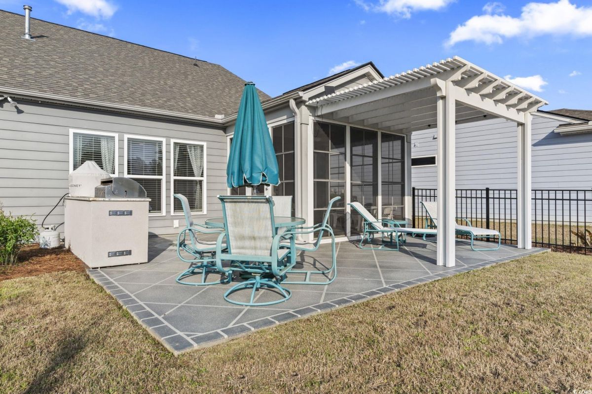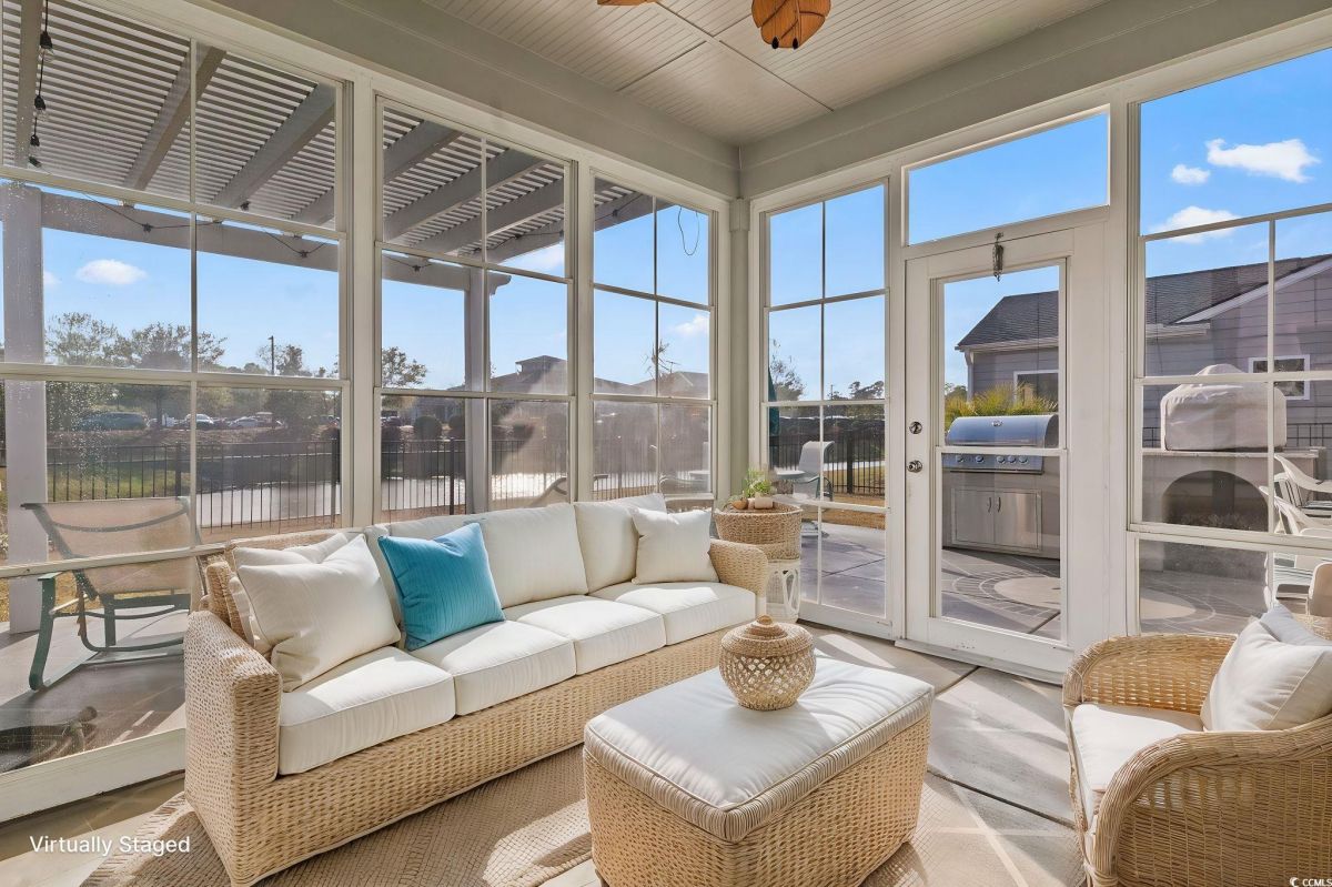 Currently, the LOWEST PRICED detached home available in Grande Dunes and in Del Webb, the 55+community featuring 3 bed/2 bath. This beautiful home features 2 additional rooms, a flex room to be used as a non-conforming 3rd BR or an office/den with glass French doors, plus a rare LOFT on the 2nd floor. Many updates and special features include lighting fixtures, ceiling fans, wainscoting, crown, floating shelves, ample storage and a convenient drop zone as you come in from your attached 2 car garage. The gourmet chef kitchen is equipped with a gas stove top insert and vented hood, stainless appliances, ample cabinet storage with soft close, slide-outs, and upgraded granite countertops. Enjoy the sunset view of the pond from the primary bedroom suite located on the first floor. This primary ensuite features double sinks, private water closet, walk in tile shower, plus a large custom walk-in closet with built in storage cabinets. Head out back to your screened in porch with EZE Breeze windows to keep the seasonal pollen outside. Entertain friends and family on your expansive patio with a stamped design and equipped with outdoor kitchen, built-in grill and pizza oven plus a pergola overlooking the pond with a rod iron fenced in yard! This home has all the upgrades and ready to be enjoyed and with an easy walk to the YMCA. This bustling community hugs the Intracoastal Waterway with onsite Lifestyle Amenity Center including indoor/outdoor resort style pools, water aerobics, fitness center, tennis, pickleball, bocce ball, outdoor grilling kitchen, all purpose social and gathering place, dancing and fitness classes, craft/activity room, cards and gaming, snack bar, dog park, a fire pit overlooking the Intracoastal Waterway plus a day dock. The deep water marina is close by as well as restaurants, shopping, entertainment venues, hospital and medical park, golf courses, and only minutes to your private Grande Dunes Ocean Club which is included in the HOA dues. You can ride your golf cart or park for free in the private parking area. The club has a breathtaking resort style pool, kiddie pool, adult jacuzzi, chair side food and beverage service, socials, dining, live music, happy hours, private beach handicapped access, and even watercolor painting. The HOA also includes landscaping services and full time lifestyle director. It's time to enjoy your golden years by living like a local and playing like a tourist!