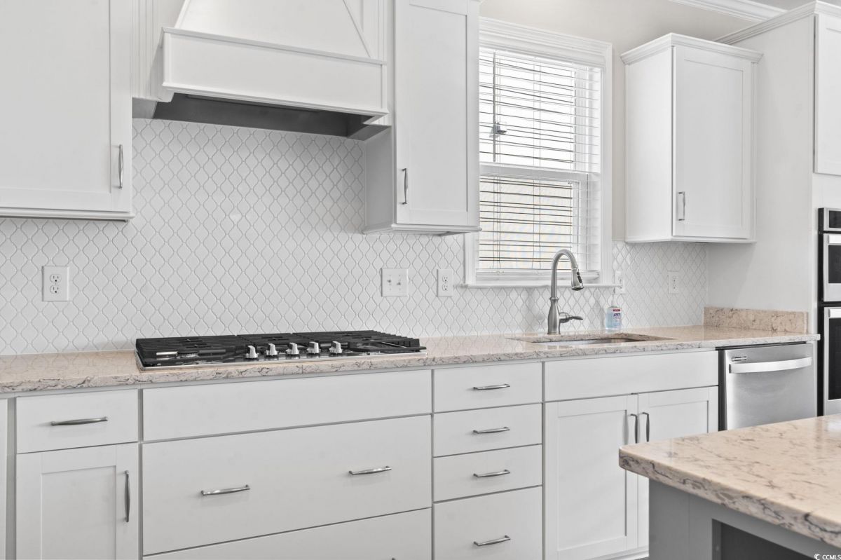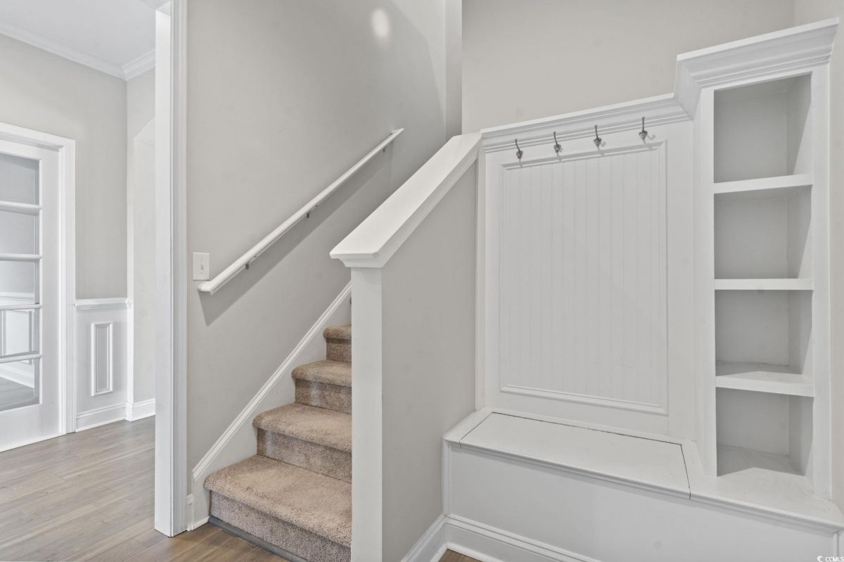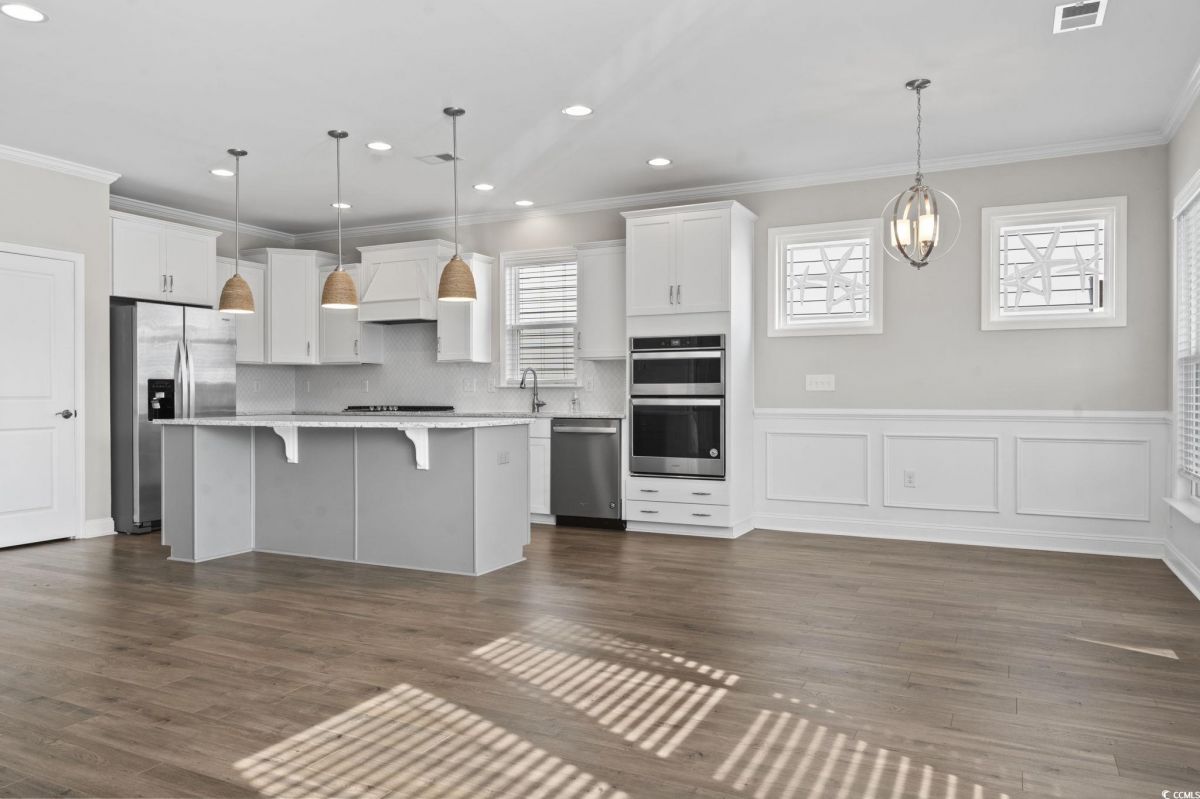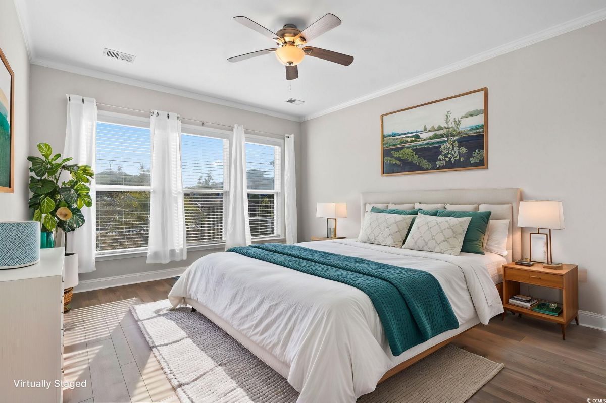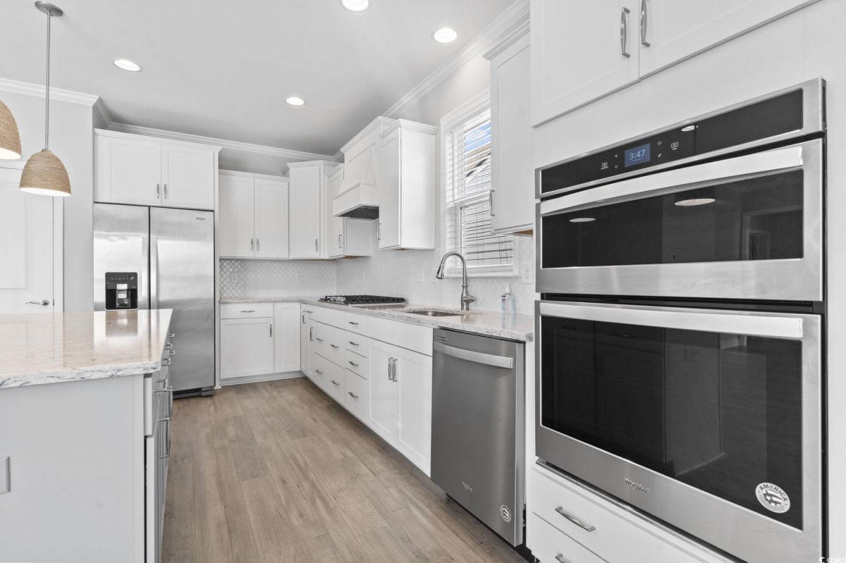 Currently, the LOWEST PRICED detached home available in Grande Dunes and in Del Webb, the 55+community featuring 3 bed/2 bath. This beautiful home features 2 additional rooms, a flex room to be used as a non-conforming 3rd BR or an office/den with glass French doors, plus a rare LOFT on the 2nd floor. Many updates and special features include lighting fixtures, ceiling fans, wainscoting, crown, floating shelves, ample storage and a convenient drop zone as you come in from your attached 2 car garage. The gourmet chef kitchen is equipped with a gas stove top insert and vented hood, stainless appliances, ample cabinet storage with soft close, slide-outs, and upgraded granite countertops. Enjoy the sunset view of the pond from the primary bedroom suite located on the first floor. This primary ensuite features double sinks, private water closet, walk in tile shower, plus a large custom walk-in closet with built in storage cabinets. Head out back to your screened in porch with EZE Breeze windows to keep the seasonal pollen outside. Entertain friends and family on your expansive patio with a stamped design and equipped with outdoor kitchen, built-in grill and pizza oven plus a pergola overlooking the pond with a rod iron fenced in yard! This home has all the upgrades and ready to be enjoyed and with an easy walk to the YMCA. This bustling community hugs the Intracoastal Waterway with onsite Lifestyle Amenity Center including indoor/outdoor resort style pools, water aerobics, fitness center, tennis, pickleball, bocce ball, outdoor grilling kitchen, all purpose social and gathering place, dancing and fitness classes, craft/activity room, cards and gaming, snack bar, dog park, a fire pit overlooking the Intracoastal Waterway plus a day dock. The deep water marina is close by as well as restaurants, shopping, entertainment venues, hospital and medical park, golf courses, and only minutes to your private Grande Dunes Ocean Club which is included in the HOA dues. You can ride your golf cart or park for free in the private parking area. The club has a breathtaking resort style pool, kiddie pool, adult jacuzzi, chair side food and beverage service, socials, dining, live music, happy hours, private beach handicapped access, and even watercolor painting. The HOA also includes landscaping services and full time lifestyle director. It's time to enjoy your golden years by living like a local and playing like a tourist!