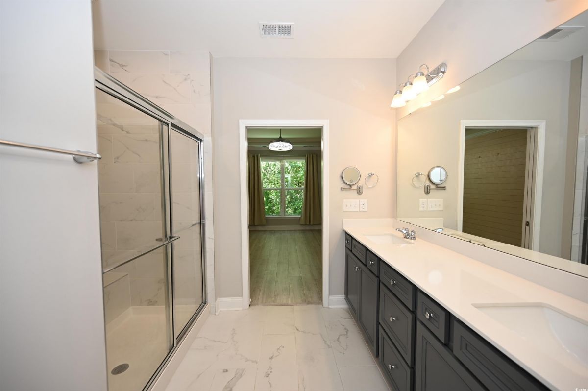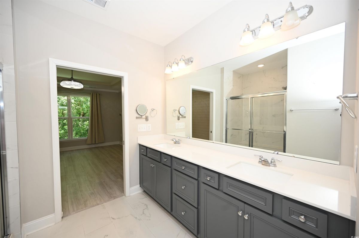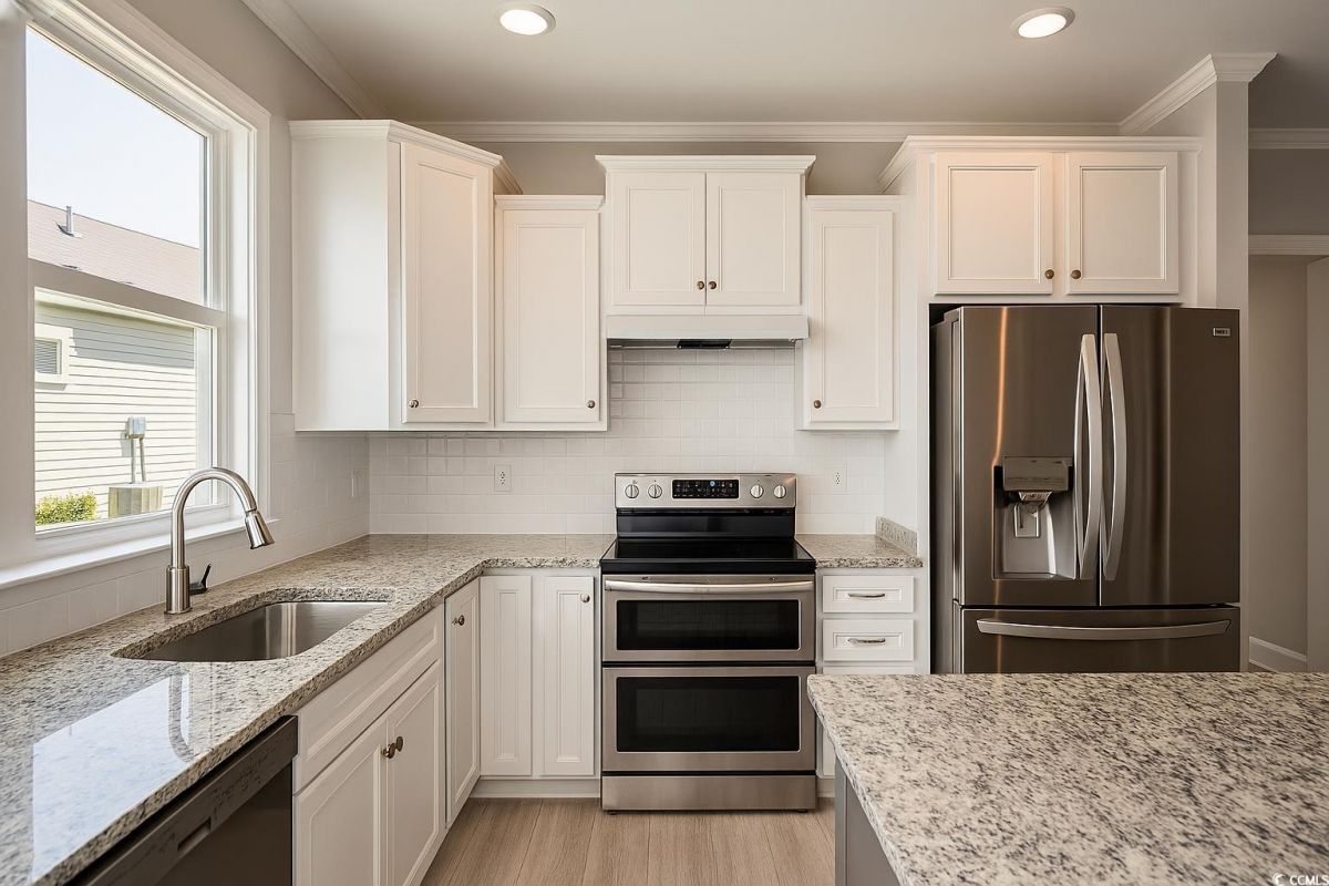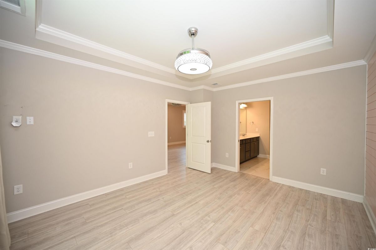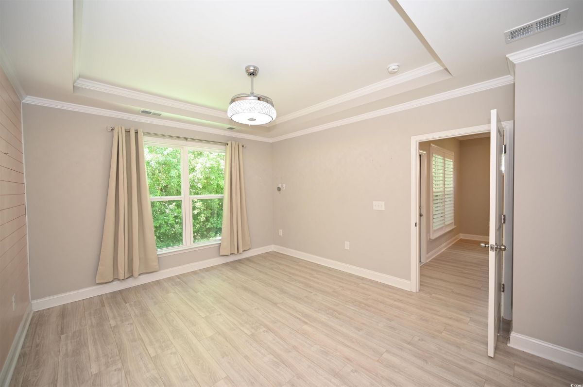 Welcome to this beautiful 2-bedroom, 2-bathroom home located in the popular 55+ Del Webb community at Grande Dunes in Myrtle Beach. Just a quick golf cart ride from the private Grande Dunes Ocean Club, this home blends style, comfort, and convenience. The kitchen boasts granite countertops, stainless steel appliances, and stylish staggered shaker cabinets. Luxury vinyl plank flooring runs throughout the main living areas, giving the home a sleek, modern feel. There’s also a spacious flex room with French doors, which is ideal for a home office, cozy den, or even a potential THIRD BEDROOM. The master bedroom features tray ceilings, crown molding, and an elegant bathroom with double sinks, a walk-in tile shower, linen closet, and a LARGE master walk in closet. It has top of the line LG appliances which includes a refrigerator with craft ice. Ceiling fans with hide a blade in master and living room, plus a ceiling fan in 2nd bedroom for guest comfort.Enjoy the outdoors on the screened-in porch or the extended patio.Enjoy tranquility with no rear neighbors, creating the perfect space for relaxing or entertaining.The back patio features a gas hookup for your grill and plenty of space to enjoy the outdoors. If you become a Del Webb resident, you’ll have access to premium amenities including indoor and outdoor pools, tennis and pickleball courts, a fitness center, and scenic walking and biking trails. The community’s waterfront amenity center also offers an outdoor kitchen, firepit, and hot tub overlooking the Intracoastal Waterway—perfect for sunsets or socializing with neighbors. Conveniently located near dining, shopping, golf, and entertainment in Myrtle Beach, SC. Don't miss out on the perfect blend of coastal charm and active adult living. Pictures that are furnished are virtually staged.
