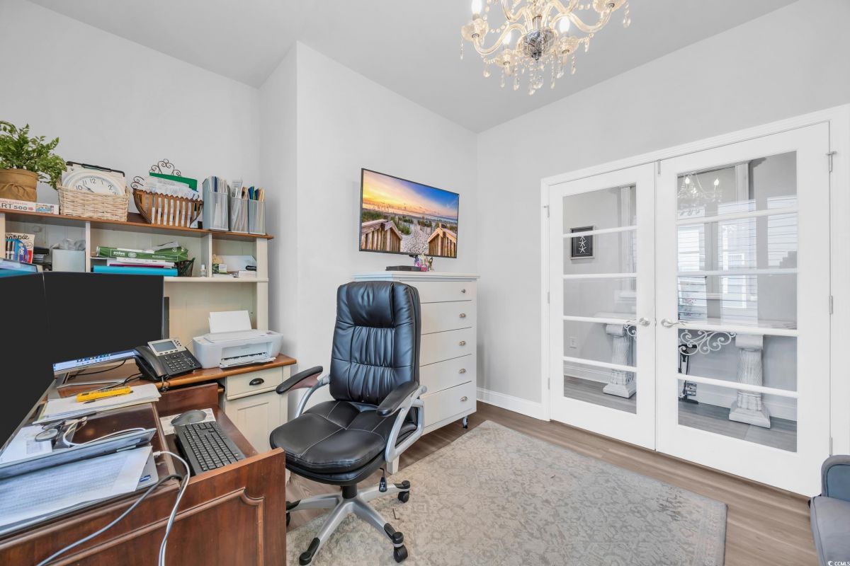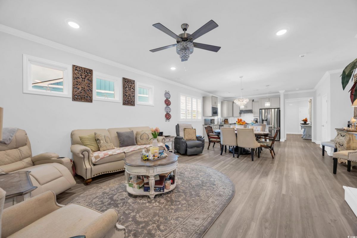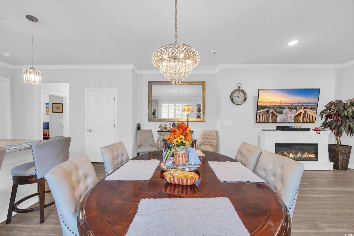 Welcome to 5911 Cremona Dr, located in the sought-after 55+ gated community of Del Webb at Grande Dunes. Built in 2023, this home blends modern design with low-maintenance living, just minutes from the beach, golf, dining, and medical facilities. The open floor plan features a gourmet kitchen with solid surface countertops, stainless steel appliances, a gas range, and a large island that flows into the dining and living areas. Plantation shutters, abundant natural light, and thoughtful finishes create a comfortable yet elegant space. A versatile flex room offers the perfect spot for a home office, den, or guest bedroom to suit your lifestyle needs. The owner’s suite includes tray ceilings, a spa-inspired bath, and a spacious walk-in closet. A covered patio extends your living area outdoors—perfect for relaxing with morning coffee or entertaining friends in the evening. Del Webb residents enjoy unmatched resort-style amenities: indoor and outdoor pools, a fitness center, pickleball and tennis courts, bocce ball, walking trails, a fire pit overlooking the Intracoastal Waterway, and a private day dock. A full-time lifestyle director organizes activities and events, and membership includes access to the exclusive Grande Dunes Ocean Club. This property offers the perfect combination of comfort, convenience, and community in one of Myrtle Beach’s premier active-adult neighborhoods.