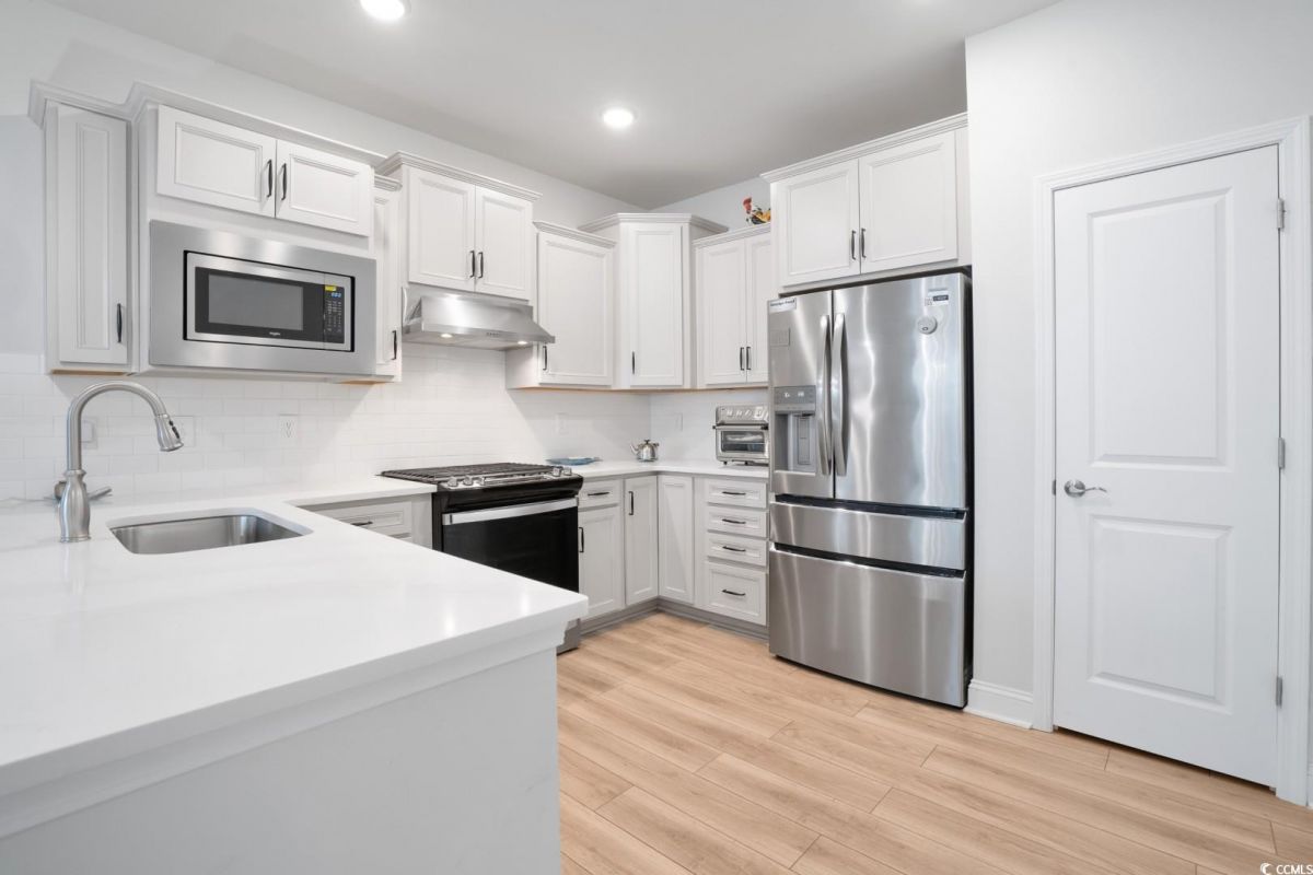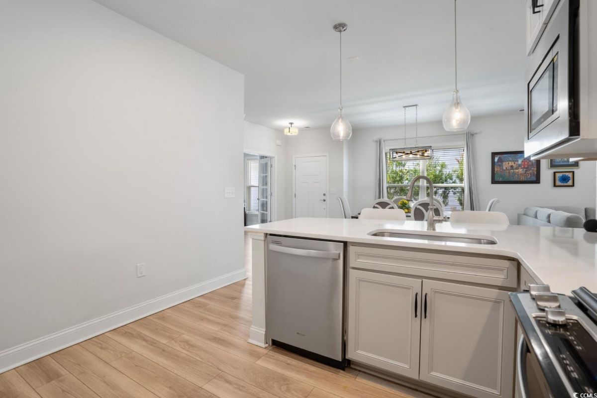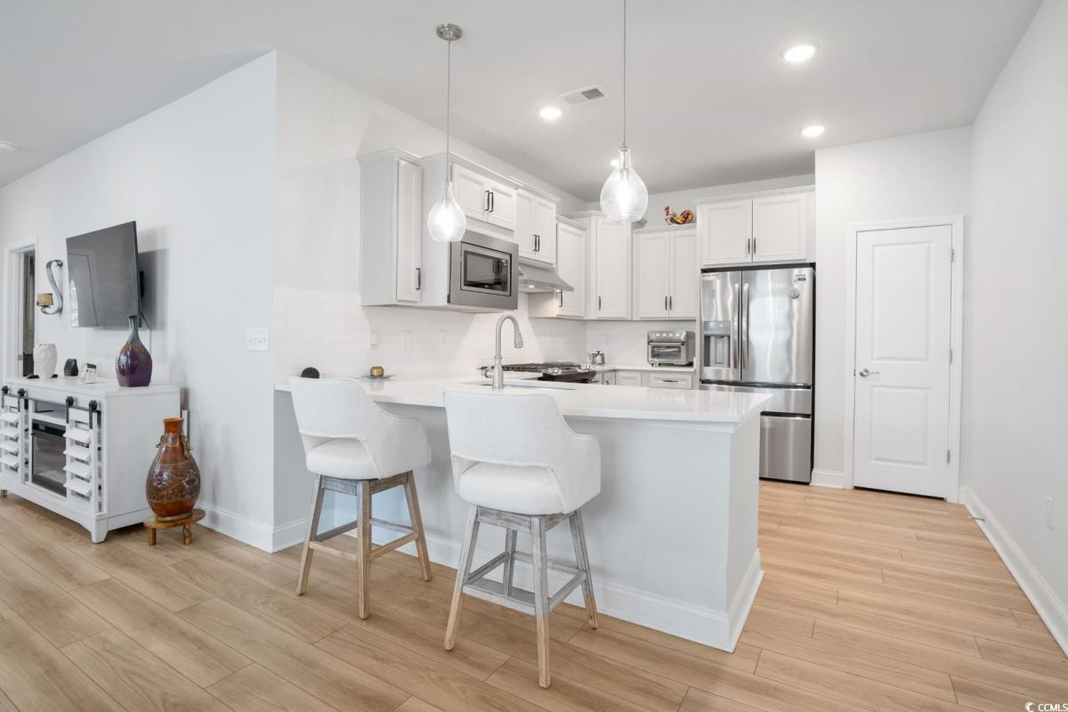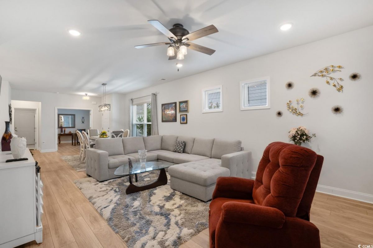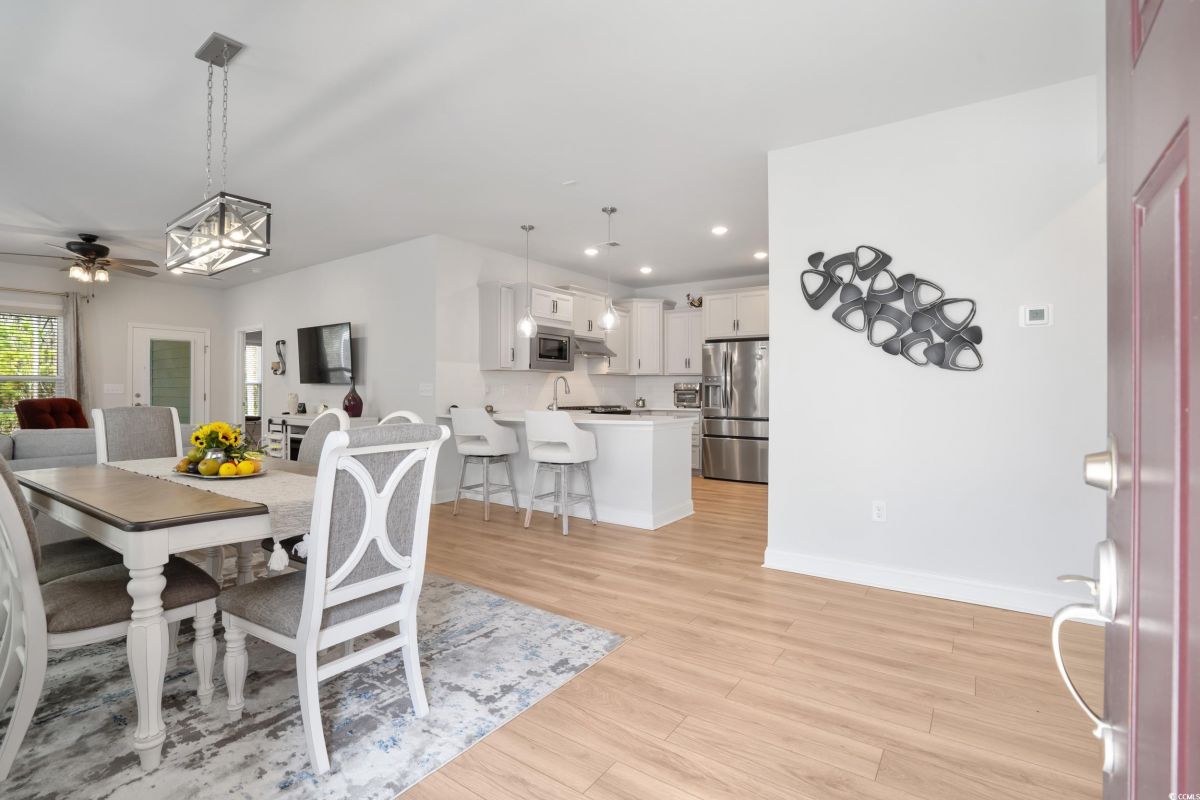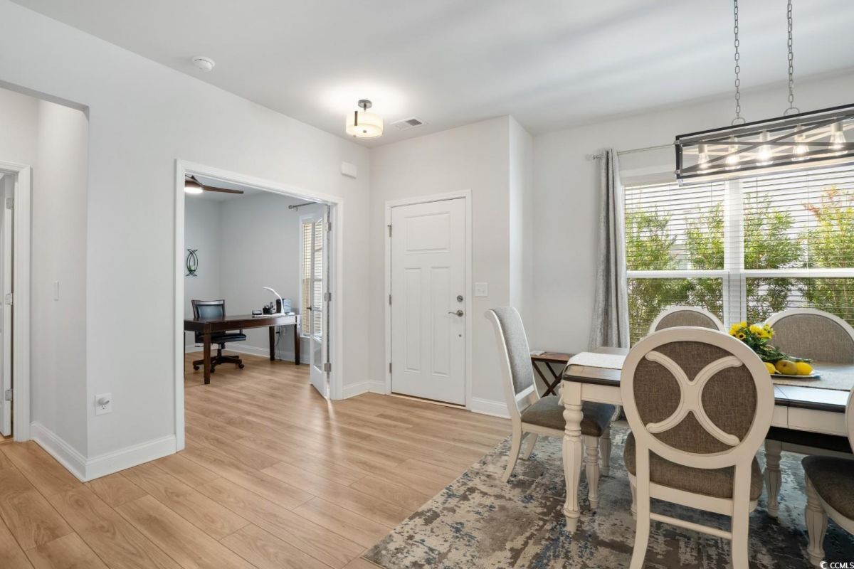 Discover the perfect blend of elegance and comfort in this stunning 2-bedroom, 2-bathroom semi-detached home with a versatile office space that can easily serve as a third bedroom. Nestled in the highly sought-after Del Webb at Grande Dunes, this residence offers spacious single-level living with a thoughtfully designed open floor plan. Step inside to find luxury vinyl plank flooring throughout, creating a seamless flow from room to room. The bright and airy living room boasts ample space, complemented by a ceiling fan for added comfort. The gourmet kitchen is a chef's dream, featuring stainless steel appliances, quartz countertops, and abundant cabinet storage-perfect for all your culinary needs. The primary suite is a retreat of its own, complete with a walk-in closet, ceiling fan, and an en-suite bathroom featuring a walk-in shower and double vanity sink. The spacious second bedroom also includes a ceiling fan, ensuring comfort for guests or family members. A dedicated laundry room and a two-car garage add convenience to your everyday lifestyle. Outdoor living is just as impressive with a screened-in porch and a private backyard-ideal for relaxing or entertaining, with no neighbors behind you for added tranquility. As part of the exclusive Del Webb at Grande Dunes, residents enjoy resort-style amenities, including a state-of-the-art clubhouse, fitness center, indoor and outdoor pools, tennis and pickleball courts, walking trails, and social activities tailored for active lifestyles. Additionally, homeowners have access to the Grande Dunes Ocean Club, offering private beach access, oceanfront dining, and additional upscale amenities. Located in the heart of Myrtle Beach, you're just minutes away from top-rated golf courses, premier shopping, fine dining, entertainment venues, and the stunning beaches of the Grand Strand. Don't miss this rare opportunity to own a private, move-in-ready home in one of Myrtle Beach's most prestigious 55+ communities. Schedule your private showing today!