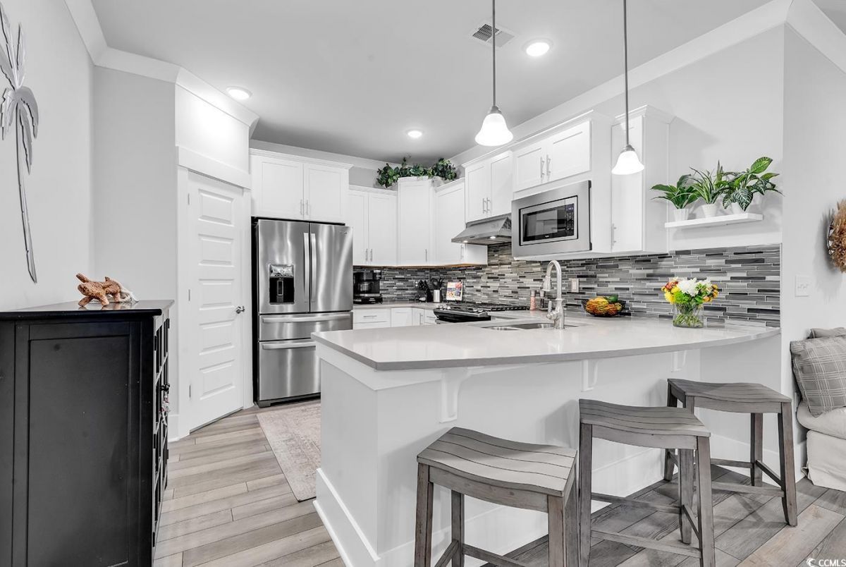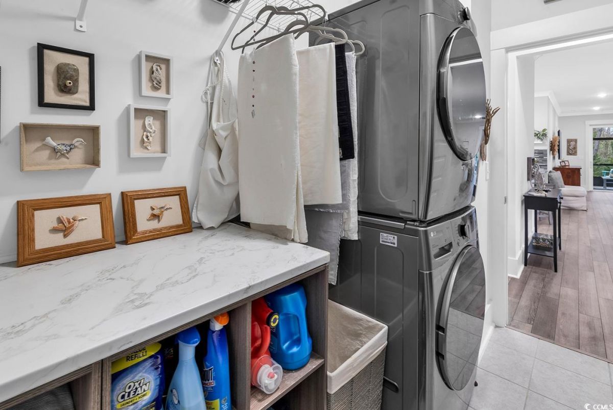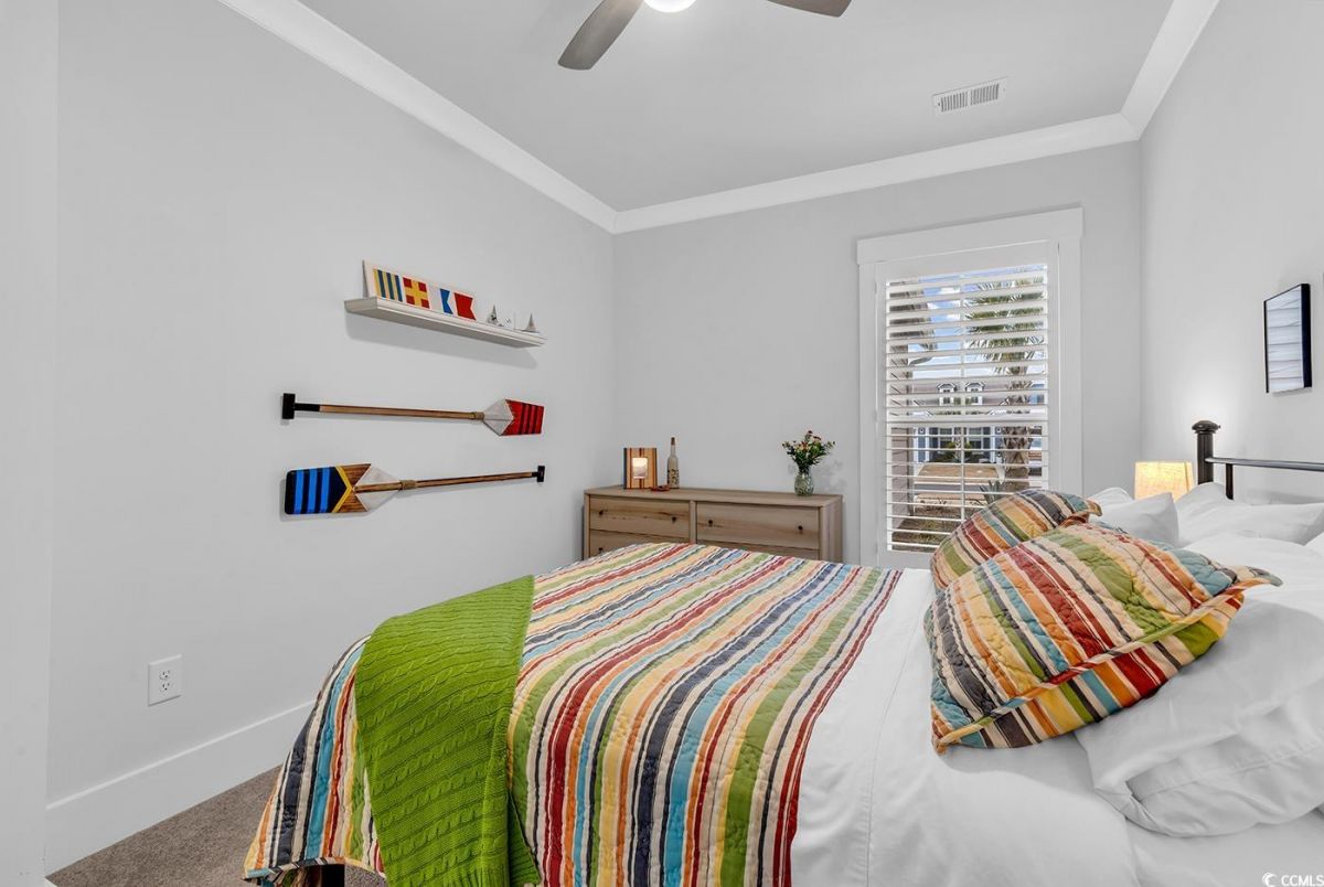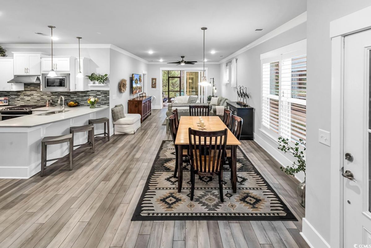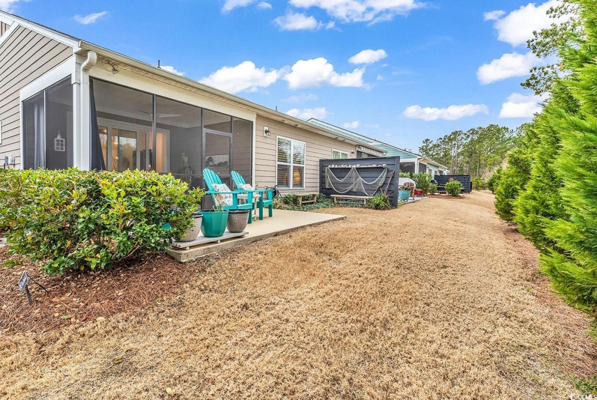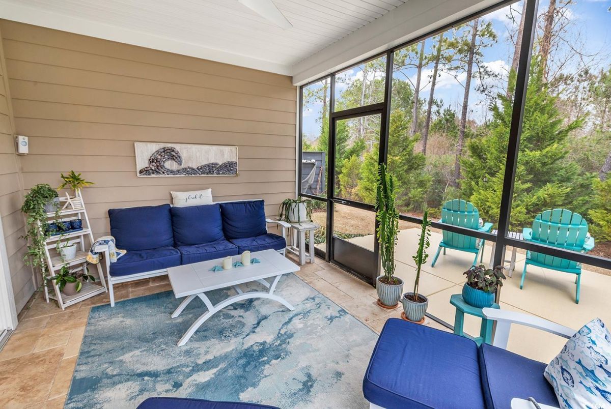 **MUST-SEE!** 6013 Tramonto is an absolute must-see two-bedroom home with an office/den that can easily serve as a third bedroom! With impeccable interior maintenance and rare backyard privacy, this beautifully upgraded residence defines serenity. For the culinary enthusiast, the kitchen features a custom walk-in pantry, a sleek glass-tile backsplash, quartz countertops, and stainless steel appliances. Three-panel, multi-slide patio doors allow plenty of natural light to fill the great room, seamlessly connecting it to the outdoor living space. Outside, you'll find a travertine-tiled porch and a stained patio with a gas line, perfect for grilling. Luxury vinyl plank flooring extends throughout the main living areas, complemented by upgraded craftsman-style baseboards, crown molding, and custom window trim. Additional enhancements include a stunning dining room chandelier, five ceiling fans, and three-inch plantation shutters with hidden tilt rods. The master suite features a tray ceiling, a walk-in closet with extra shelving, and a master bathroom complete with a double vanity and a frameless shower door. The property also features a well-equipped laundry room and a two-car garage, which includes a workbench and a generator setup. 6013 Tramonto is ready for you to call it home! Located in the prestigious Grande Dunes area, this property is part of the sought-after Del Webb Amenity Center, situated along the Intracoastal Waterway, which features a day dock. Amenities include indoor and outdoor pools, fitness facilities, bocce and pickleball courts, a fire pit, and a vibrant schedule of social activities. Additionally, the Grande Dunes Ocean Club provides private beach access, fine dining, and resort-style experiences, making this property the pinnacle of luxury and comfort in 55+ living.