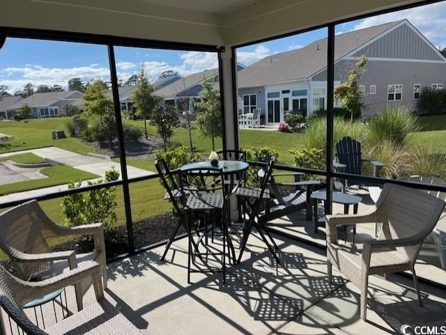 ***FURNISHED***This is the one you’ve been waiting for! An immaculate, move-in ready, end of street, large corner lot villa located in the prestigious Del Webb 55+ Grande Dunes Community, offering a blend of luxury and convenience. The home features 2 bedrooms, 2 baths, with a flex room, providing plenty of space for comfort and flexibility. Highlights include tankless gas water heater, whole house surge protection, Cabinets installed in laundry room and garage and plantation shutters throughout. The kitchen and bathrooms boast beautiful quartz countertops, while the kitchen also offers stainless steel appliances, pendant lighting, and luxury vinyl plank (LVP) flooring in the main living areas. The bedrooms feature luxury carpet, and the bathrooms and laundry area are enhanced with ceramic tile flooring. The master bath is designed for comfort and style, with upgraded faucets for double vanity sinks, a modern shower head, mirrors, and fixtures, along with a tiled shower complete with a bench. Outside, enjoy a large, peaceful screened-in lanai and an extended concrete patio—perfect for relaxing or entertaining. The community offers resort-style living, with access to both indoor and outdoor pools, a clubhouse, fitness center, tennis and pickleball courts, walking and biking trails, and a full-time lifestyle director organizing events and activities. Residents also enjoy access to the Grande Dunes Ocean Club, featuring a private oceanfront clubhouse with a pool, beach, and on-site restaurant. Located in a desirable natural gas community, you are just a short ride away from the beach, shopping, dining, and medical facilities. Some Furniture may be available to purchase separately with a separate bill of sale. Don't miss the chance to enjoy the ultimate in resort-style amenities in this beautiful villa!