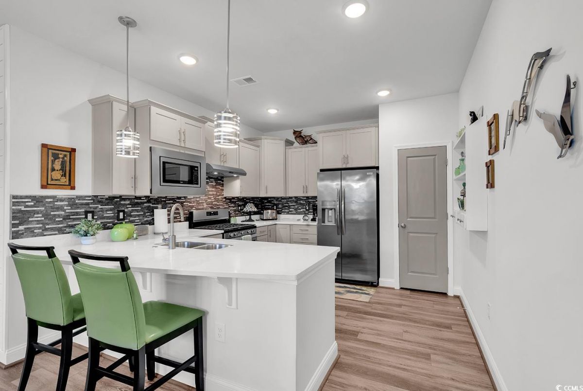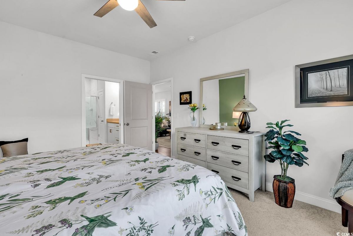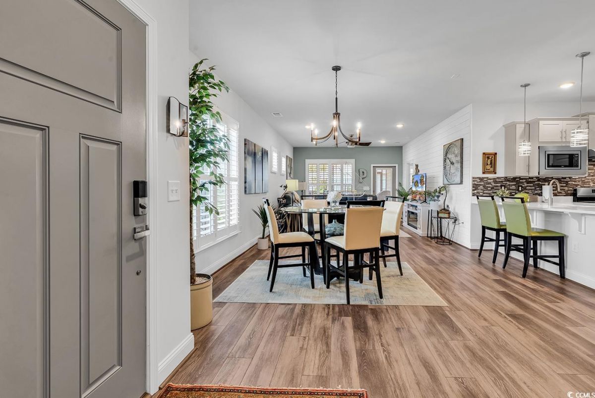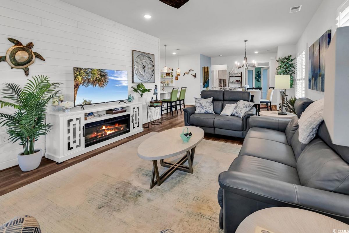 Welcome to the prestigious 55+ community of Del Webb Grande Dunes in Myrtle Beach! This beautifully furnished 2-bedroom, 2-bath villa with an additional flex room showcases the highly desired Serenity floor plan, blending comfort, elegance, and thoughtful design. Nestled on a premium lot at the end of a quiet street, this home enjoys maximum privacy and no through traffic—perfect for peaceful living. Inside, you’ll find luxury vinyl plank (LVP) flooring throughout the main living areas and plush carpeting in the bedrooms for added comfort. This villa is a true standout with its tasteful decor and upscale furnishings. Features include plantation shutters, designer accent walls, a gorgeous shiplap wall in the living room, and upgraded French doors leading to the versatile flex room. There is ample storage in the form of cabinets in the 2 car-garage. The chef’s kitchen impresses with quartz countertops, upgraded cabinetry, and stainless-steel appliances, combining both style and functionality. The spacious primary suite offers a spa-like experience with a walk-in shower and double vanity sinks. Additional upgrades include: • Ceiling fans throughout • Modern light fixtures and faucets • Tankless gas water heater • Irrigation system with smart sensors • Custom laundry room storage • Whole-house electrical surge protection Step outside to relax in your screened-in lanai or enjoy the sunshine on the extended patio—perfect for entertaining or unwinding. This home is move-in ready and designed for easy, elegant living in one of Myrtle Beach’s premier active adult communities. Del Webb Grande Dunes stands apart with its unparalleled amenities and prime location. Residents enjoy access to a spectacular 15,000 sq. ft. clubhouse featuring a state-of-the-art fitness center, an indoor heated pool, and a resort-style outdoor pool. Sports enthusiasts can take advantage of tennis, pickleball, and bocce ball courts. Social clubs and hobby groups are abundant, with a dedicated Lifestyle Director ensuring exciting events and activities year-round. Residents also enjoy exclusive gated access to the Grande Dunes Ocean Club, complete with private parking for cars and golf carts, a private pool with oceanfront access, and exceptional dining and entertainment experiences. The Ocean Club offers added conveniences such as beach towels, chairs, and umbrellas, along with both casual cafeteria options and a high-end restaurant. Conveniently located along the Intracoastal Waterway, this Del Webb community is less than 2 miles from the beach. The renowned Grand Strand boasts 60 miles of stunning coastline, with nearby restaurants, shopping, hospitals, and medical facilities. Myrtle Beach is proudly known as the "Golf Capital of the World," featuring over 90 golf courses to enjoy. Don't miss out on this exceptional opportunity to live in one of Myrtle Beach's premier active adult communities!