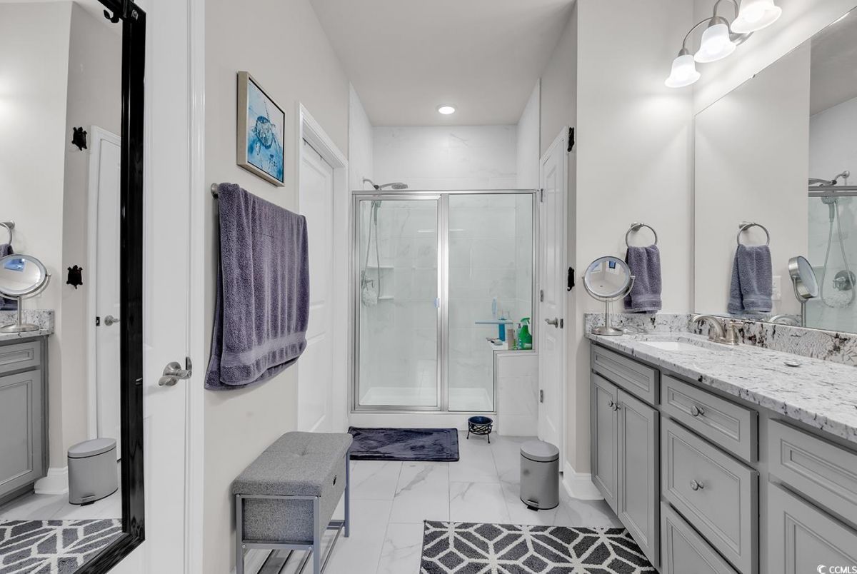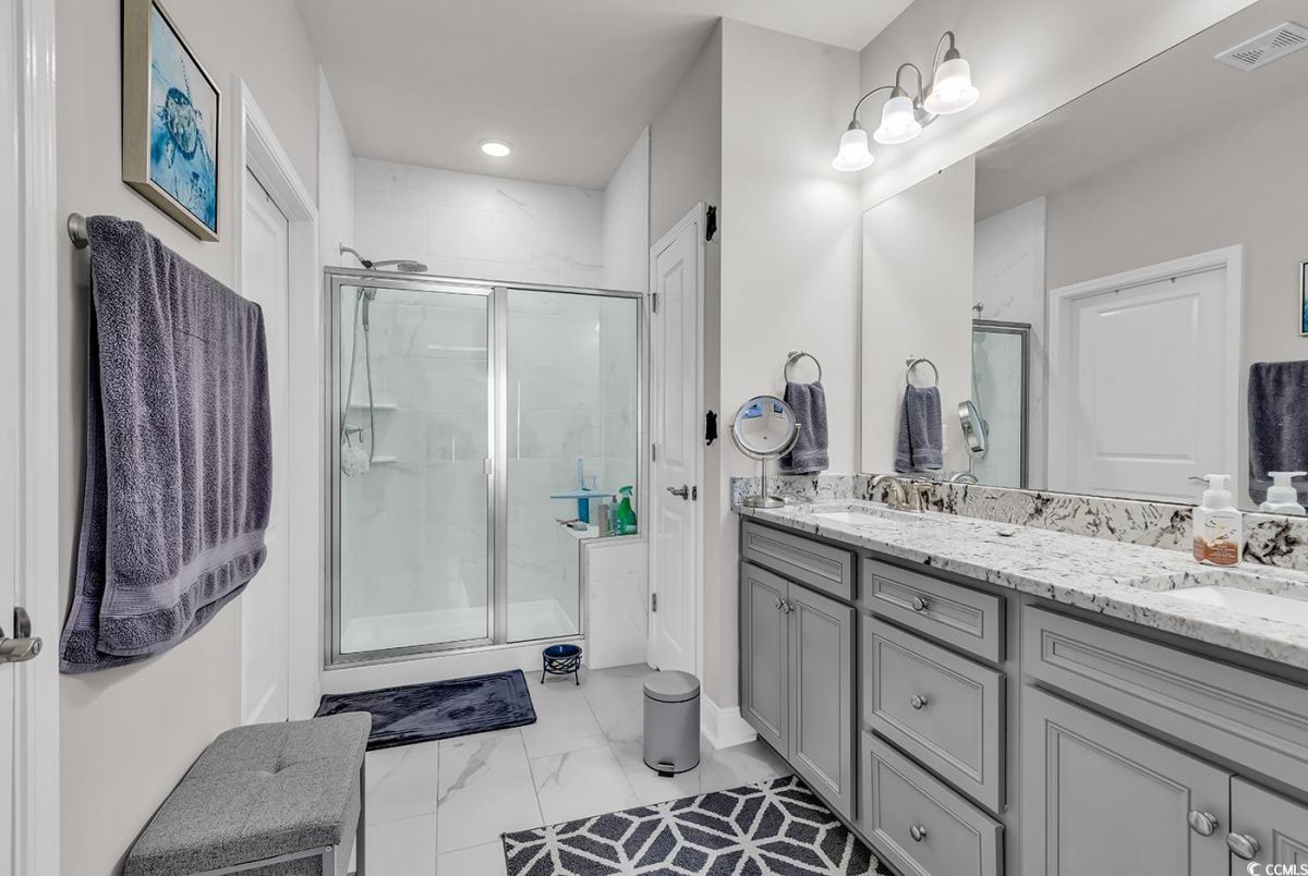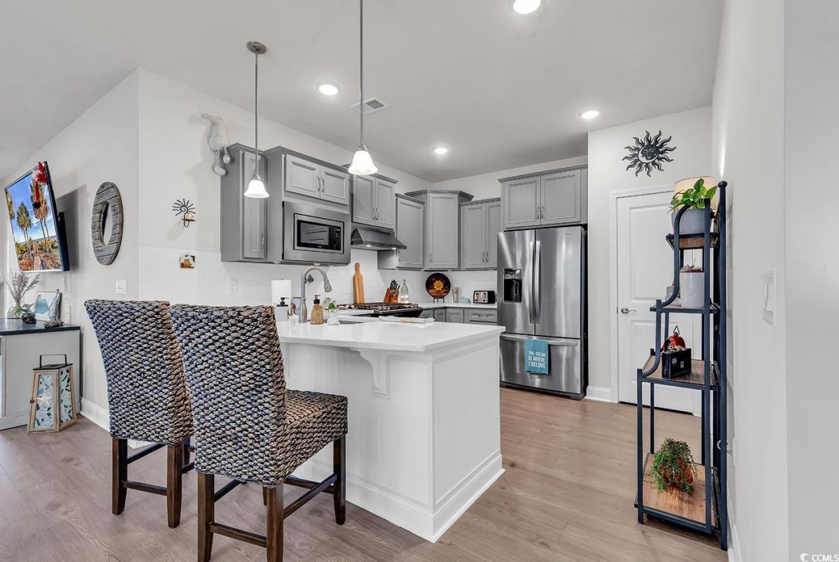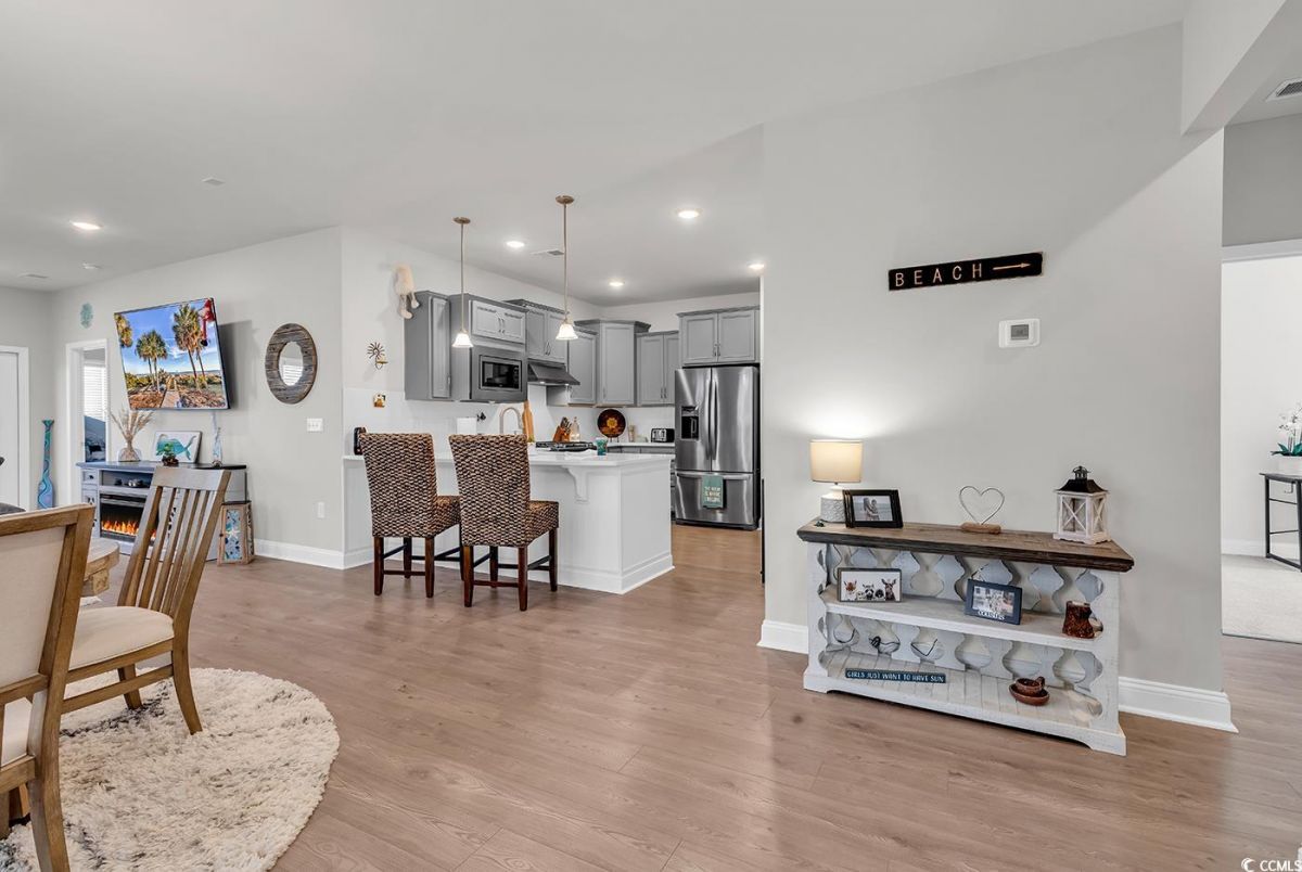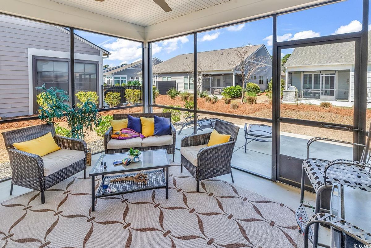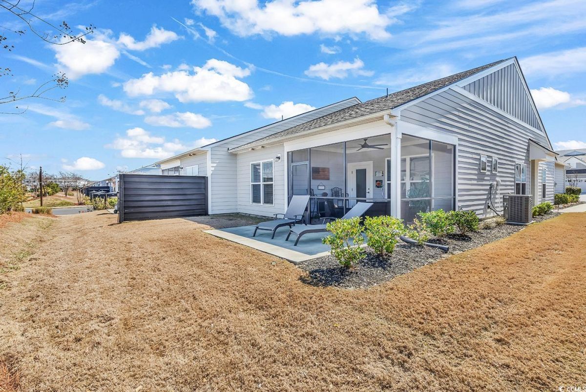 This is a must see Serenity villa located in the Del Webb 55+ Grande Dunes Community! Only a short golf cart ride to the beach and the Grande Dunes Ocean Club! Home features 2 bedrooms, 2 baths with a flex room that can be used for guests, office or den. Features include upgraded cabinets, quartz counter tops and stainless steel appliances in the kitchen and LVP in most of the home. The primary bath features a tiled shower with a bench, double vanity sinks with lots of counter space. The other full bath is a tub/shower combo. Both baths have tiles floors. Outside you will find a large quiet screened in lanai. Community includes both indoor & outdoor pools, amentity center, fitness center, tennis, pickle ball, walking & biking trails and a full time lifestyle director with events and activities and access to the Grande Dunes Ocean Club. Come take a look!