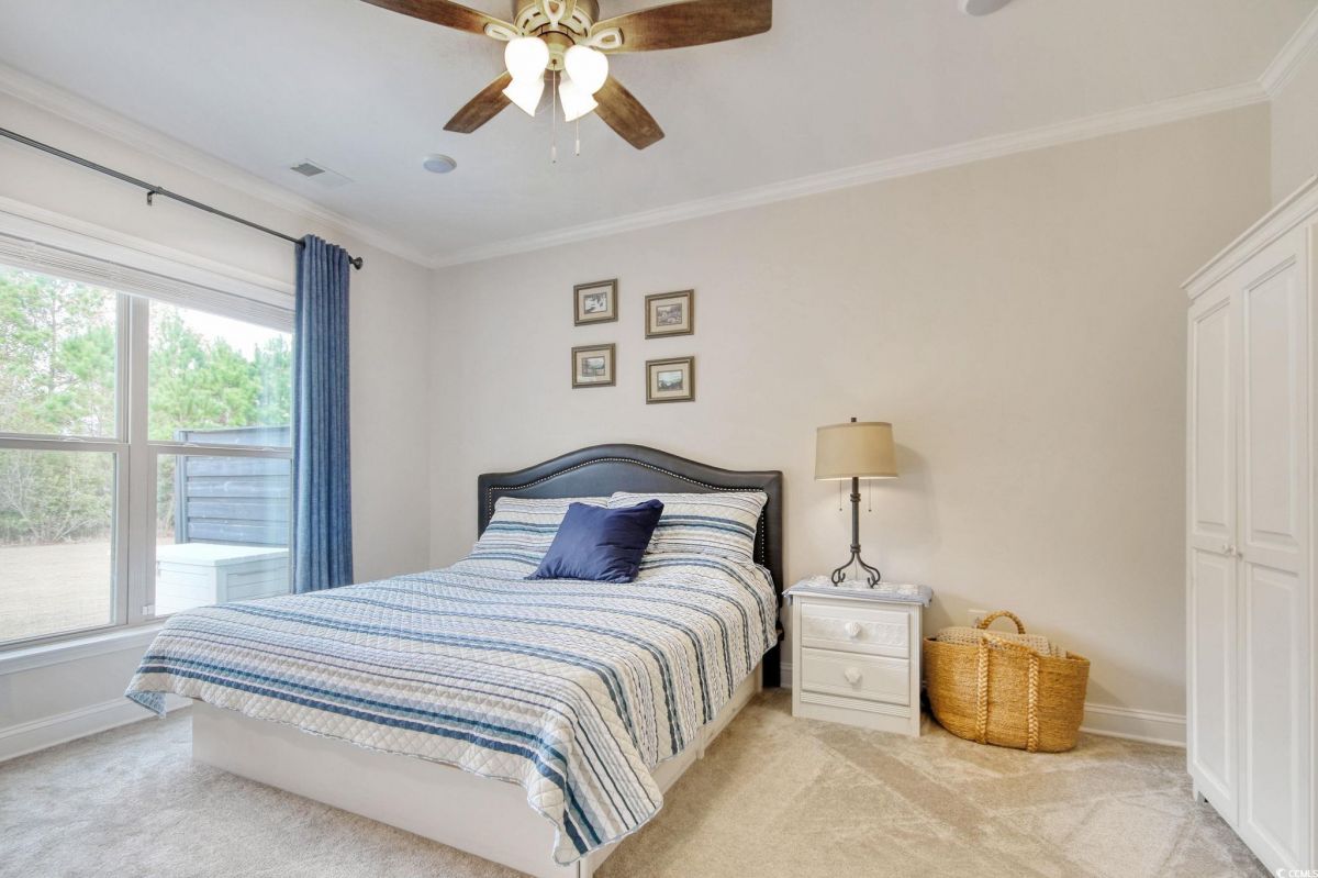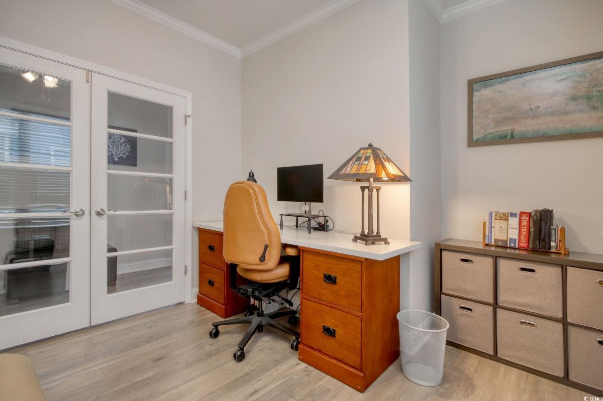 Welcome to the prestigious 55+ community of Del Webb Grande Dunes of Myrtle Beach. This 2-bedroom with a separate office, 2-bath home features the Cressida floor plan, the most popular villa home design due to its openness and livability. This outstanding villa home features many upgrades. It sits on one of the best lots in the community for its openness and privacy. There is luxury vinyl plank (LVP) flooring throughout the home including the bedrooms (the carpets in the bedroom with upgraded padding are there for your comfort but underneath you have LVP flooring). Among the outstanding upgrades included is the 3-season sunroom facing the open land space and trees. The blackout blinds in the sunroom provide full privacy. Plenty of sunlight is allowed into the home due to the practical 3-panel sliding glass door. Electric blinds control the amount of sunlight allowed. There are also many practical upgrades added like space-saving custom closets and cabinets and shelving in the garage. The back concrete patio was extended. There is a water osmosis filtration system in the house and hurricane panels are provided. What sets Del Webb at Grande Dunes apart from other active adult communities is the unparalleled amenities and convenient location. This vibrant community offers a beautiful 15,000 sq. ft. clubhouse that includes a state-of-the art fitness center, indoor heated pool, resort-style outdoor pool, tennis, pickleball and bocce ball courts, as well as active social clubs and hobby groups. The full-time Lifestyle Director helps plan events and activities happening in and outside the community. You'll also enjoy residents-only gated access to the Grande Dunes Ocean Club that offers private parking for both cars and golf carts, private pool and oceanfront access, dining and entertainment experiences. The Ocean Club also offers conveniences like beach towels, chairs and umbrellas. There is also a cafeteria and a high-end restaurant. This Del Webb community sits along the Intracoastal Waterway and is located less than 2 miles from the beach (the Grand Strand has 60 miles of beach coastline), and is close to restaurants, shopping, hospital and medical facilities. Myrtle Beach is known as the “Golf Capital of the World” with over 90 golf courses.