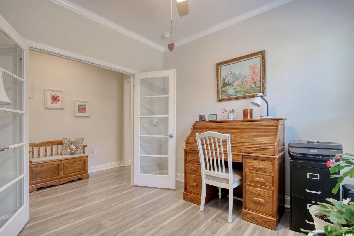 Welcome to the prestigious 55+ community of Del Webb Grande Dunes of Myrtle Beach. This 2-bedroom with a separate office with French doors, 2-bath home features the Cressida floor plan, the most popular villa home design due to its openness and livability. This outstanding villa home features many upgrades. It is one of the very few homes with a generator, an 18 kW Generac Generator. It also has a whole house surge protector. Among the outstanding upgrades included is the 3-season room with EZ Breeze vinyl windows and the floor is tastefully tiled. The house features LVP flooring, crown molding, and modern kitchen with island and breakfast bar, quartz countertops and stainless steel appliances. There are also many practical upgrades like the convenient drop zone with bench and storage, the garage is finished with epoxy flooring and a pull-down staircase, and ceiling fans throughout most of the home. What sets Del Webb at Grande Dunes apart from other active adult communities is the unparalleled amenities and convenient location. This vibrant community offers a beautiful 15,000 sq. ft. clubhouse that includes a state-of-the art fitness center, indoor heated pool, resort-style outdoor pool, tennis, pickleball and bocce ball courts, as well as active social clubs and hobby groups. The full-time Lifestyle Director helps plan events and activities happening in and outside the community. You'll also enjoy residents-only gated access to the Grande Dunes Ocean Club that offers private parking for both cars and golf carts, private pool and oceanfront access, dining and entertainment experiences. The Ocean Club also offers conveniences like beach towels, chairs and umbrellas. There is also a cafeteria and a high-end restaurant. This Del Webb community sits along the Intracoastal Waterway and is located less than 2 miles from the beach (the Grand Strand has 60 miles of beach coastline), and is close to restaurants, shopping, hospital and medical facilities. Myrtle Beach is known as the “Golf Capital of the World” with over 90 golf courses.