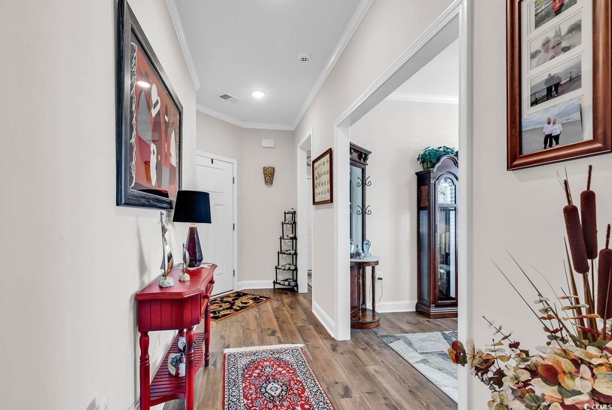MOTIVATED SELLER!! BRING OFFER!! Welcome to this meticulously maintained Villa located at 6096 Campanella Street in the 55-plus Intercoastal Waterway community of Del Webb at Grande Dunes. Please note that not all Villas are the same, check out this Cassida model which boosts many upgrades on a premium corner lot located on a quiet low-traffic street, away from Hwy 17 and Robert Grissom Parkway. When you pull up to 6096 Campanella Street take note of the professionally landscape lot, the driveway's width has been extended on each side. The spacious front porch will be where you enjoy turning neighbors into friends. You can open the front door to the welcoming entryway with the office/flex room to your left. The open floorplan connects the kitchen, dining area, and great room with a ton of natural light. The kitchen features upgraded cabinets, under-cabinet lighting, granite countertops, a backsplash, stainless steel appliances, large walk-in pantry, and an island. The guest bedroom offers your family/guests a view of the lovely front porch and a convenient full bath with a walk-in shower. The spacious master suite has crown molding and windows for natural light. A pocket door leads to the master bath with a large walk-in shower, double vanity, upgraded cabinets, and tile floor. Step out of the great room to the gracious lanai with easy breeze windows, and epoxy floor. The door from the Lanai leads to the great patio. The two-car garage walls are professionally painted, have a utility sink, screen door, and epoxy floor. Upgrades in this villa include R-38 insulation in the attic and walls, insulated enclosure at attic opening, security system, spouting with pop-ups ( takes the water away from home), crown molding, ceiling fans with remote, storm door on front door, whole house surge protector, plantation shutters, tankless water heater and MORE! The owner has the HVAC system on a maintenance agreement and checks twice a year. Del Webb neighborhood features extensive on-site amenities: a fitness center, indoor/outdoor pool, pickle ball court, bocce ball court, a firepit overlooking the Intracoastal Waterway, a day doc, and a full-time lifestyle director that plans events & activities monthly. Only minutes away homeowners of the Del Webb community have access to the gated Ocean Club, residents can enjoy the clubhouse, resort-style pool with bar service, towel service, beach chairs and umbrellas, restaurant, and yes BEACH access. Call today to view this move-in condition home!!