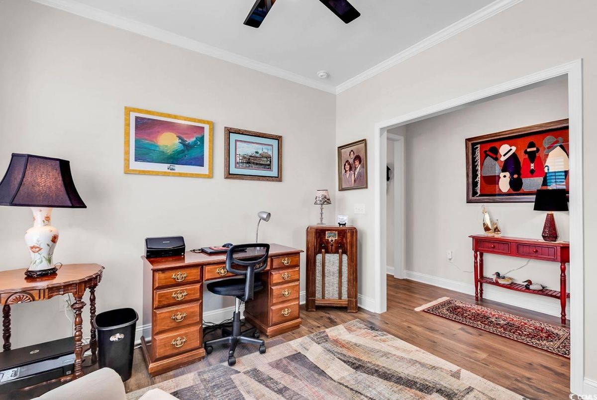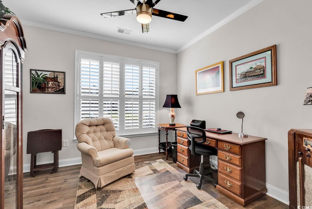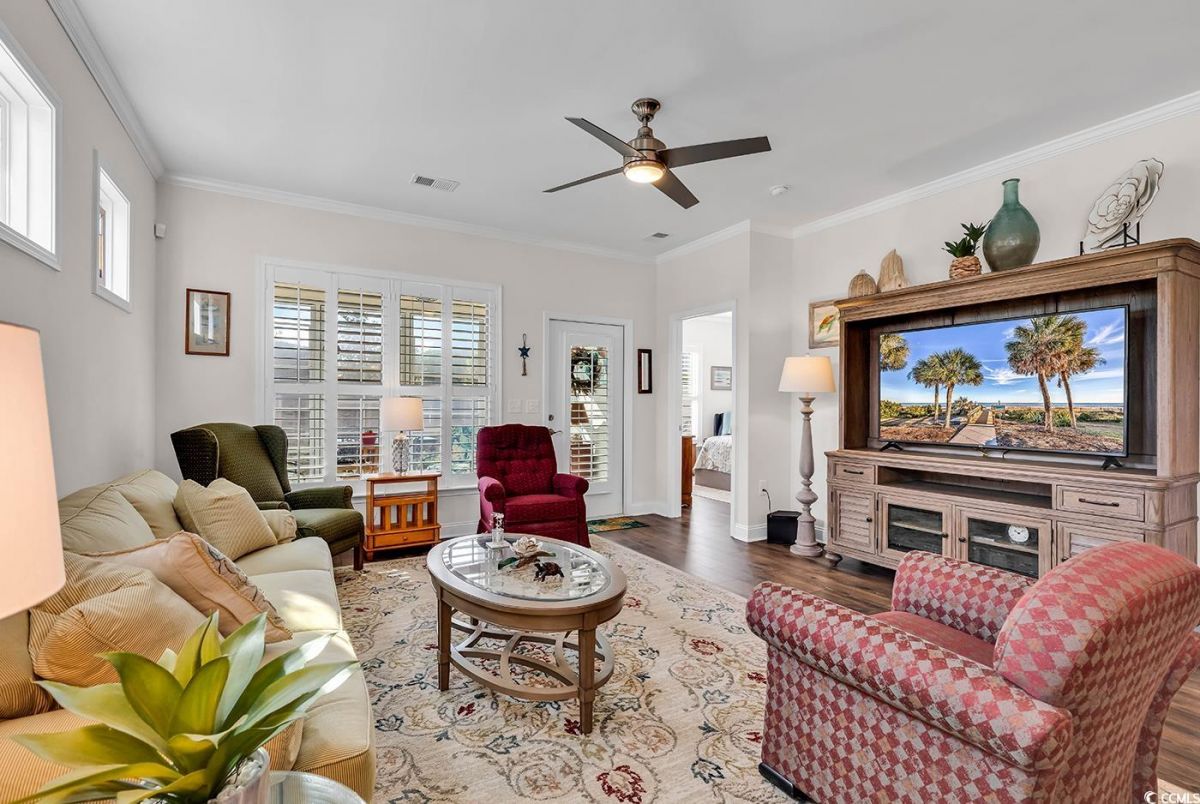 WELCOME to this meticulously maintained Villa located at 6096 Campanella Street in the 55-plus Intercoastal Waterway community of Del Webb at Grande Dunes. Please note that not all Villas are the same. Check out this Cassida model, which boasts many upgrades on a premium corner lot located on a quiet, low-traffic street, away from Hwy 17 and Robert Grissom Parkway. When you pull up to 6096 Campanella Street, take note of the professionally landscaped lot; the driveway's width has been extended on each side. The spacious front porch will be where you enjoy turning neighbors into friends. You can open the front door to the welcoming entryway with the office/flex room to your left, French doors could be added with no structural changes. The open floor plan connects the kitchen, dining area, and great room with a ton of natural light. The kitchen features upgraded cabinets, under-cabinet lighting, granite countertops, a backsplash, stainless steel appliances, a large walk-in pantry, and an island. The guest bedroom offers your family/guests a view of the lovely front porch and a convenient full bath with a walk-in shower. The spacious primary bedroom has crown molding and windows for natural light. A pocket door leads to the primary bathroom with a large walk-in shower, double vanity, upgraded cabinets, and tile floor. Step out of the great room to the gracious lanai with easy breeze windows, and epoxy floor. The door from the Lanai leads to the great patio. The two-car garage walls are professionally painted, have a utility sink, a screen door, and an epoxy floor. Upgrades in this villa include R-38 insulation in the attic and walls, insulated enclosure at attic opening, security system, spouting with pop-ups takes the water away from the home), crown molding, ceiling fans with remote, storm door on front door, whole house surge protector, plantation shutters, tankless water heater and MORE! The owner has the HVAC system on a maintenance agreement and checks it twice a year. Del Webb neighborhood features extensive on-site amenities: a fitness center, indoor/outdoor pools, a pickleball court, a bocce ball court, tennis courts, a firepit overlooking the Intracoastal Waterway, a day dock, and a full-time lifestyle director who plans events & activities monthly. Only minutes away, homeowners of the Del Webb community have access to the gated Ocean Club, residents can enjoy the c; clubhouse, resort-style pool with bar service, towel service, beach chairs and umbrellas, restaurant, and yes, BEACH access. Looking for a place to retire and still be active, CHECK this home OUT!!