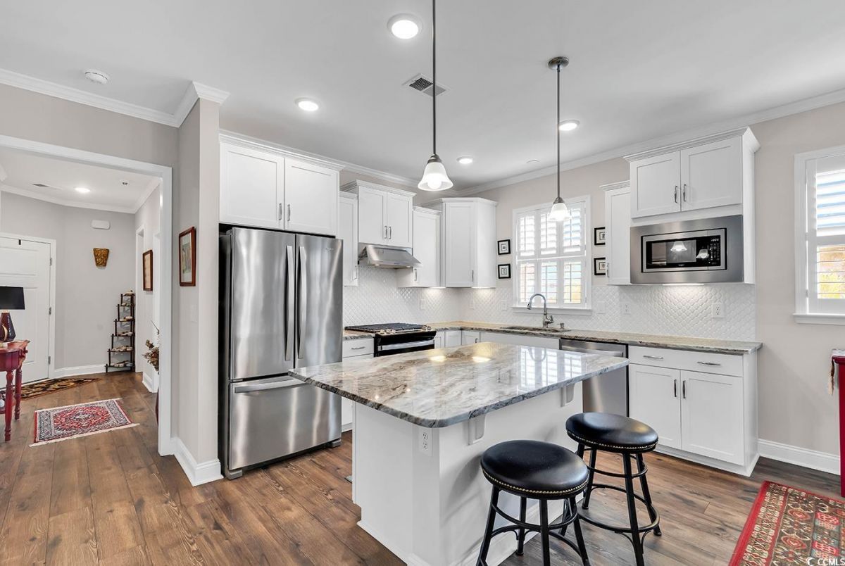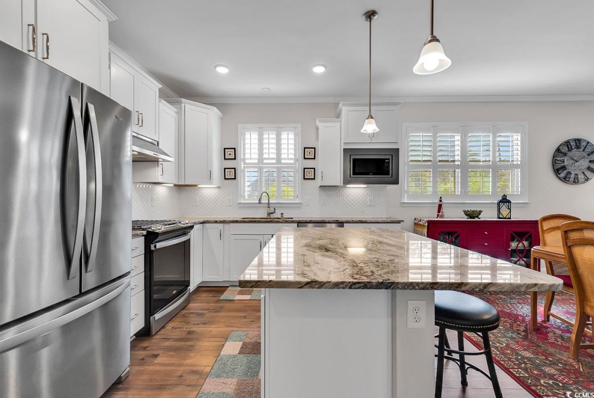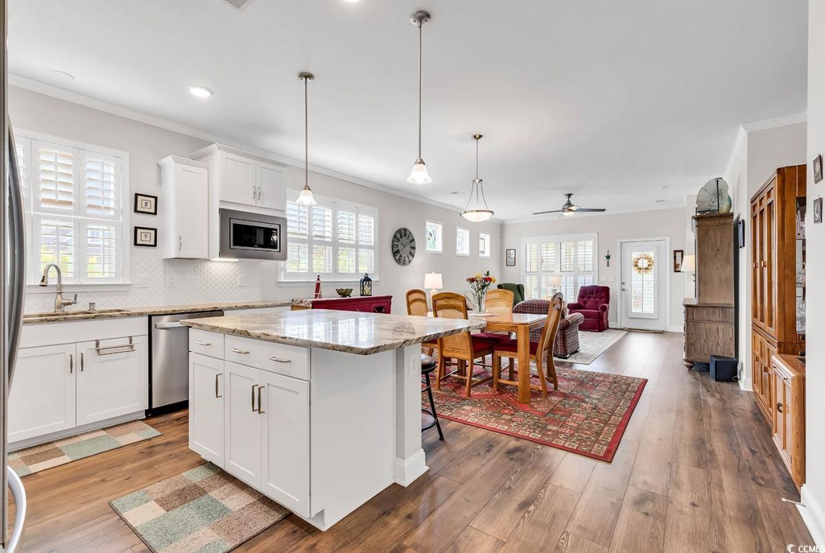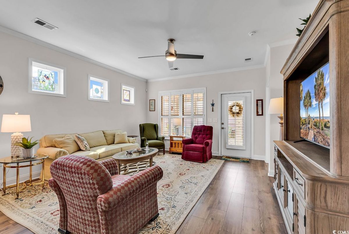 WELCOME to this meticulously maintained Villa located at 6096 Campanella Street in the 55-plus Intercoastal Waterway community of Del Webb at Grande Dunes. Please note that not all Villas are the same. Check out this Cassida model, which boasts many upgrades on a premium corner lot located on a quiet, low-traffic street, away from Hwy 17 and Robert Grissom Parkway. When you pull up to 6096 Campanella Street, take note of the professionally landscaped lot; the driveway's width has been extended on each side. The spacious front porch will be where you enjoy turning neighbors into friends. You can open the front door to the welcoming entryway with the office/flex room to your left, French doors could be added with no structural changes. The open floor plan connects the kitchen, dining area, and great room with a ton of natural light. The kitchen features upgraded cabinets, under-cabinet lighting, granite countertops, a backsplash, stainless steel appliances, a large walk-in pantry, and an island. The guest bedroom offers your family/guests a view of the lovely front porch and a convenient full bath with a walk-in shower. The spacious primary bedroom has crown molding and windows for natural light. A pocket door leads to the primary bathroom with a large walk-in shower, double vanity, upgraded cabinets, and tile floor. Step out of the great room to the gracious lanai with easy breeze windows, and epoxy floor. The door from the Lanai leads to the great patio. The two-car garage walls are professionally painted, have a utility sink, a screen door, and an epoxy floor. Upgrades in this villa include R-38 insulation in the attic and walls, insulated enclosure at attic opening, security system, spouting with pop-ups takes the water away from the home), crown molding, ceiling fans with remote, storm door on front door, whole house surge protector, plantation shutters, tankless water heater and MORE! The owner has the HVAC system on a maintenance agreement and checks it twice a year. Del Webb neighborhood features extensive on-site amenities: a fitness center, indoor/outdoor pools, a pickleball court, a bocce ball court, tennis courts, a firepit overlooking the Intracoastal Waterway, a day dock, and a full-time lifestyle director who plans events & activities monthly. Only minutes away, homeowners of the Del Webb community have access to the gated Ocean Club, residents can enjoy the c; clubhouse, resort-style pool with bar service, towel service, beach chairs and umbrellas, restaurant, and yes, BEACH access. Looking for a place to retire and still be active, CHECK this home OUT!!