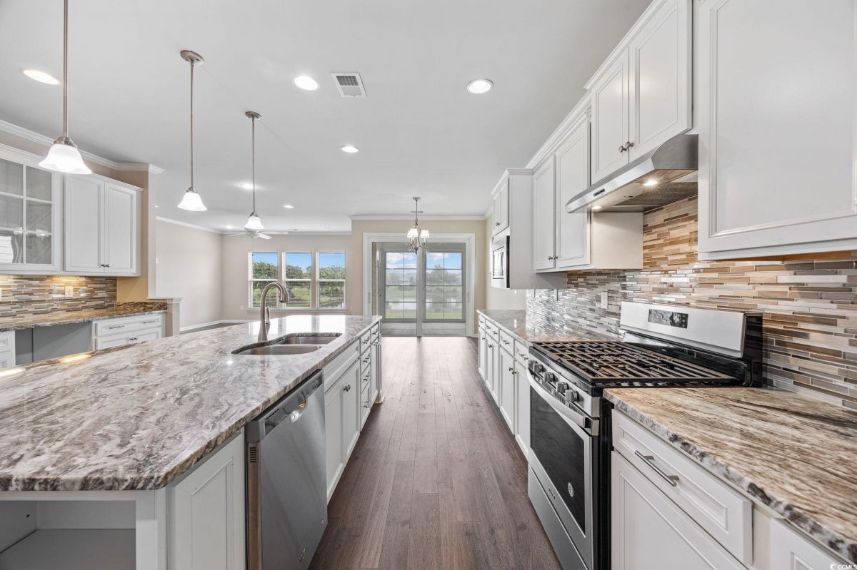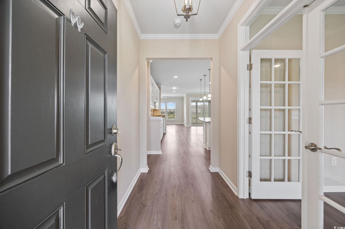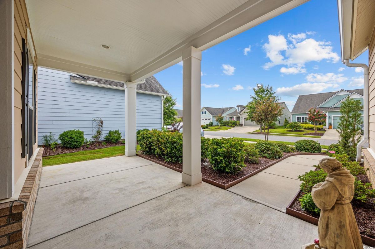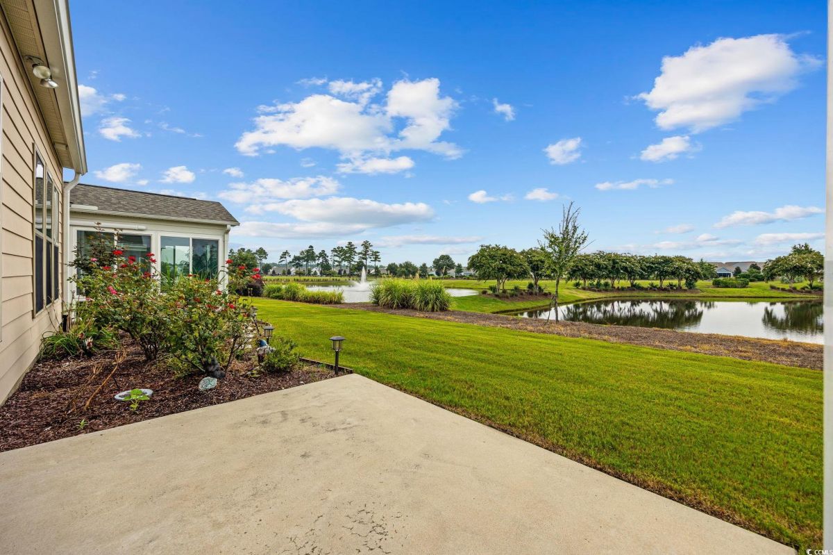 Open House on Sunday, Sept 28th from 1-3 pm. Discover the ultimate in active adult coastal living in the prestigious 55+ Del Webb at Grande Dunes community in Myrtle Beach. This beautifully appointed Castle Rock floor plan offers 2 bedrooms, 2 baths, plus a versatile flex room that can serve as a guest bedroom, home office, or hobby space. From the moment you arrive, you’ll appreciate the manicured landscaping, irrigation system, and welcoming large front porch. Inside, the home is filled with natural light and features an open design perfect for entertaining. The chef’s kitchen is a true showstopper, complete with granite countertops, stainless steel appliances, gas stove, wine rack, tile backsplash, generous pantry, pendant and recessed lighting, and cupboards galore. The spacious dining area flows seamlessly into the formal living room, and a peaceful lanai with EZE Breeze windows overlooks a tranquil community pond for your own private retreat. The owner’s suite offers a tray ceiling, spa like bath with garden tub, tiled shower, dual vanity, and a walk-in closet with custom shelving. Crown molding adds a touch of elegance throughout. Everyday living is made easier with a laundry room just steps from the owner’s suite, a mudroom style entry with built-in storage, and an upgraded garage featuring an epoxy-finished floor, utility sink, extra refrigerator, mini-split system for heating and cooling, and convenient walk up attic stairs for storage. HOA maintains your yard, so you can spend more time enjoying life and less time on chores. Living here means more than just a home, it’s a lifestyle. Enjoy indoor/outdoor pools, fitness center, tennis, pickleball, bocce, arts & crafts, social clubs, and a full-time lifestyle director to keep your calendar full. Plus, you’ll have exclusive access to the Grande Dunes Ocean Club, with private beachfront pools, dining, and cabanas. All this, just minutes to shopping, dining, golf, medical facilities and the sparkling beaches of the Grand Strand.