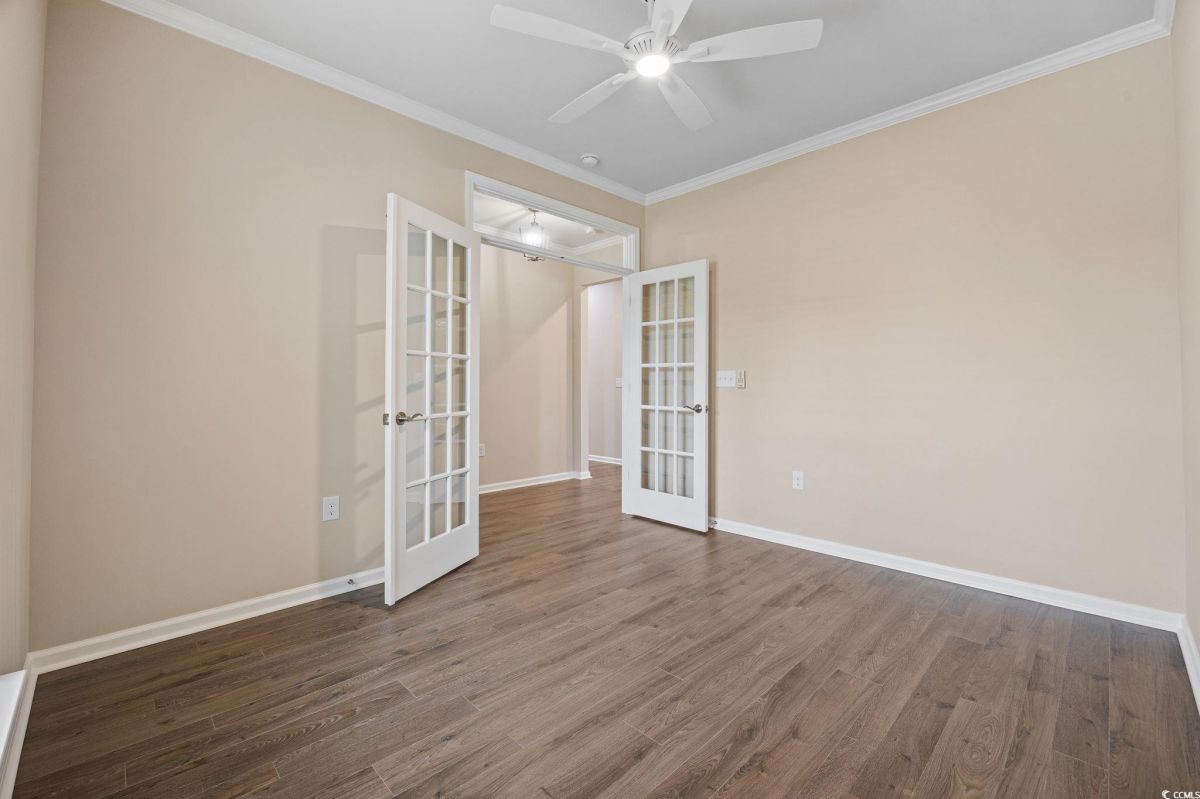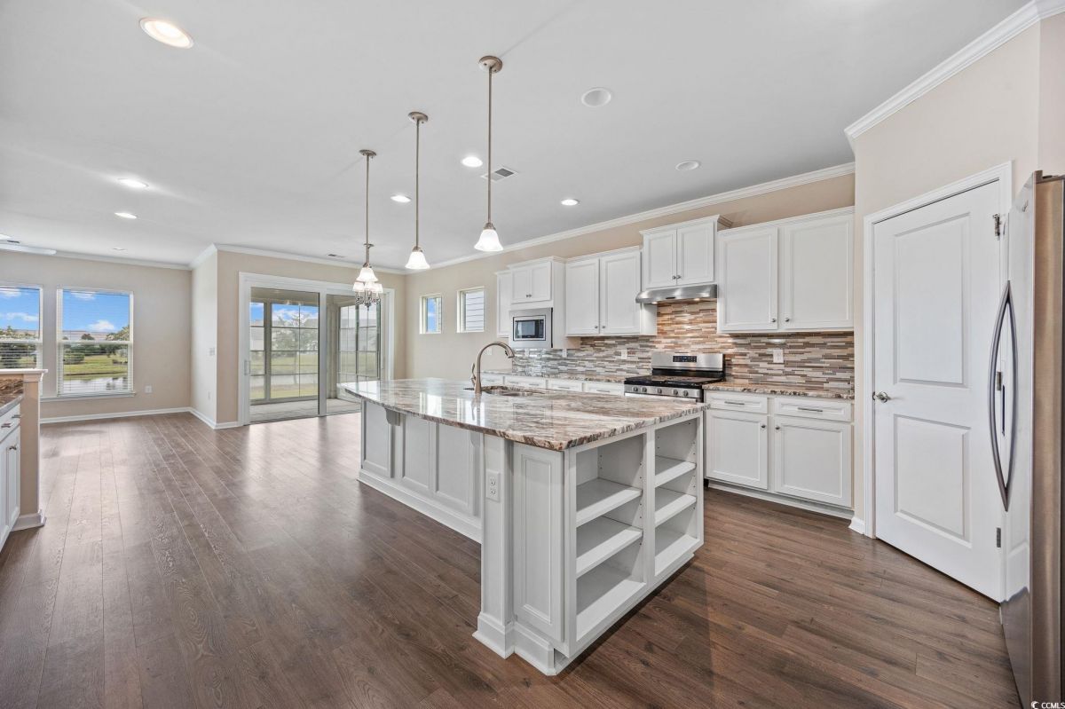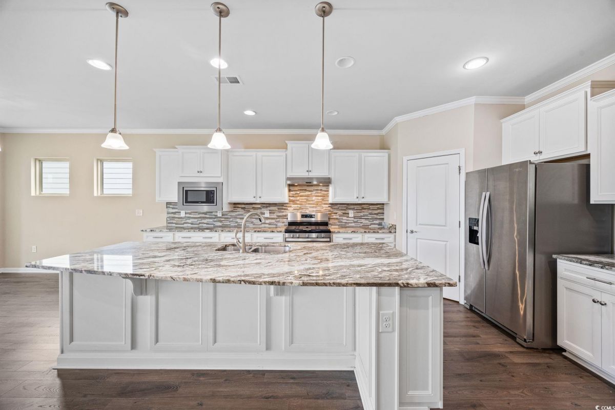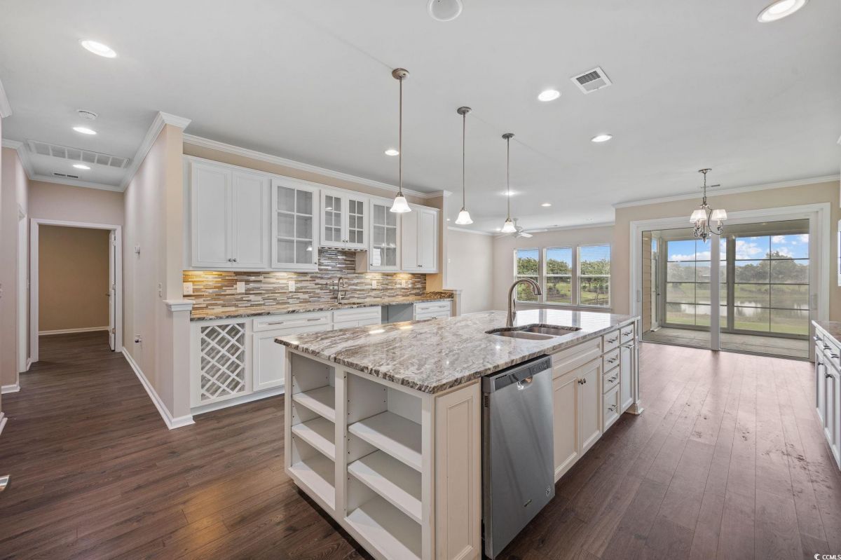 Open House on Sunday, Sept 28th from 1-3 pm. Discover the ultimate in active adult coastal living in the prestigious 55+ Del Webb at Grande Dunes community in Myrtle Beach. This beautifully appointed Castle Rock floor plan offers 2 bedrooms, 2 baths, plus a versatile flex room that can serve as a guest bedroom, home office, or hobby space. From the moment you arrive, you’ll appreciate the manicured landscaping, irrigation system, and welcoming large front porch. Inside, the home is filled with natural light and features an open design perfect for entertaining. The chef’s kitchen is a true showstopper, complete with granite countertops, stainless steel appliances, gas stove, wine rack, tile backsplash, generous pantry, pendant and recessed lighting, and cupboards galore. The spacious dining area flows seamlessly into the formal living room, and a peaceful lanai with EZE Breeze windows overlooks a tranquil community pond for your own private retreat. The owner’s suite offers a tray ceiling, spa like bath with garden tub, tiled shower, dual vanity, and a walk-in closet with custom shelving. Crown molding adds a touch of elegance throughout. Everyday living is made easier with a laundry room just steps from the owner’s suite, a mudroom style entry with built-in storage, and an upgraded garage featuring an epoxy-finished floor, utility sink, extra refrigerator, mini-split system for heating and cooling, and convenient walk up attic stairs for storage. HOA maintains your yard, so you can spend more time enjoying life and less time on chores. Living here means more than just a home, it’s a lifestyle. Enjoy indoor/outdoor pools, fitness center, tennis, pickleball, bocce, arts & crafts, social clubs, and a full-time lifestyle director to keep your calendar full. Plus, you’ll have exclusive access to the Grande Dunes Ocean Club, with private beachfront pools, dining, and cabanas. All this, just minutes to shopping, dining, golf, medical facilities and the sparkling beaches of the Grand Strand.
