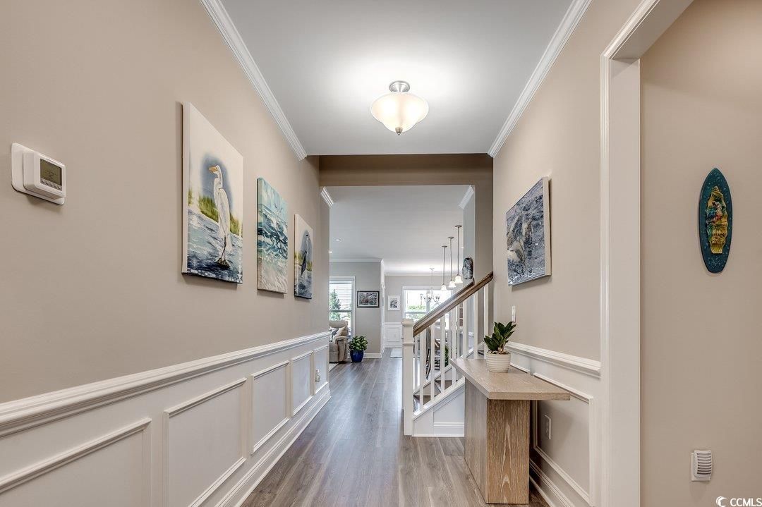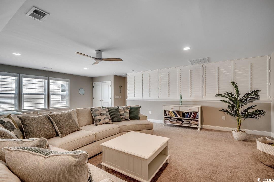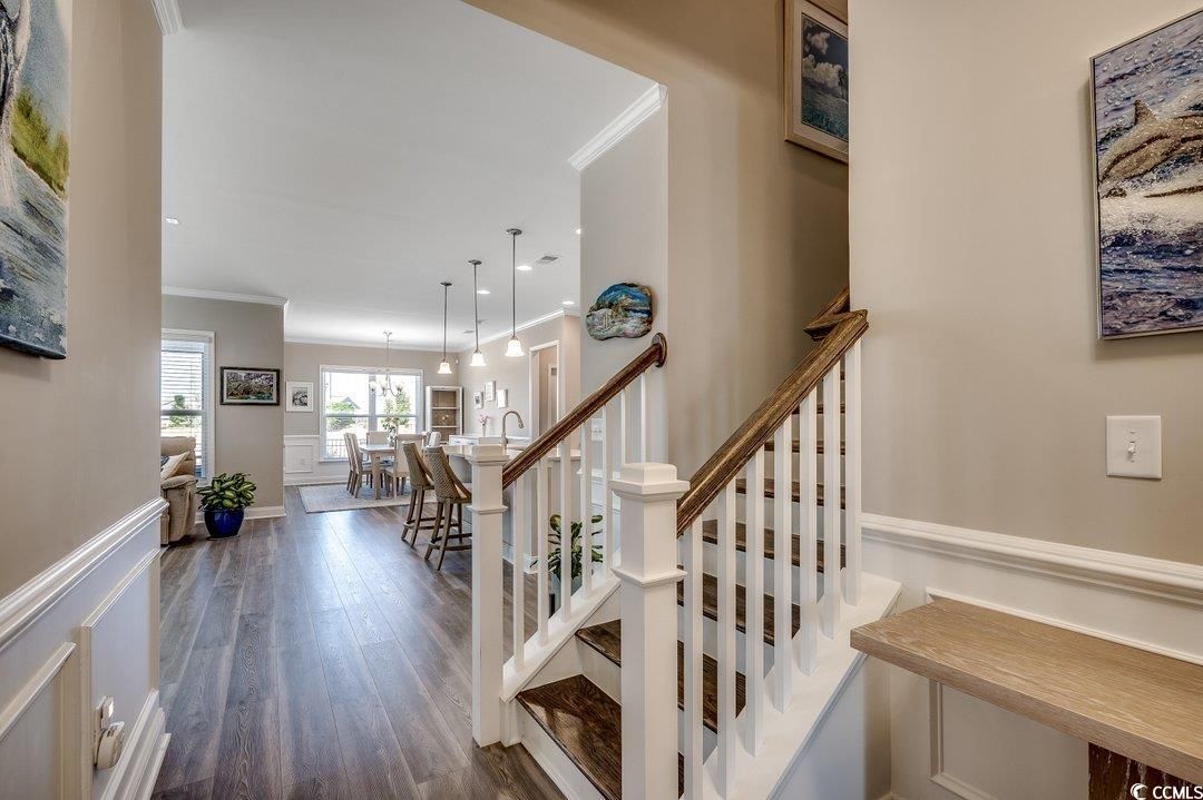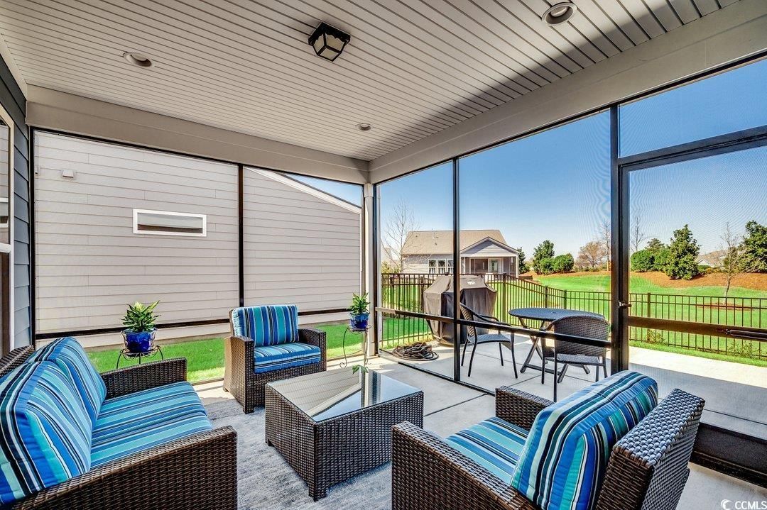 Step into luxury and comfort with this stunning 4-bedroom, 2-bath home in the highly sought-after Del Webb at Grande Dunes, one of the most desirable 55+ communities and included membership to the Ocean Club. Built in 2023, this Summerwood model residence offers sophisticated easy living and is located in Phase III which is close to the amenities center. As you enter the foyer, you will notice abundant natural light and custom wood work. The open floor plan is modern and the gourmet kitchen features premium stainless-steel appliances, an oversized island, quartz countertops, custom cabinetry, and a pantry—perfect for entertaining or everyday cooking. This space flows into the great room and the dining area. The primary suite is complete with a spa-inspired en-suite bath, upgraded bathroom ceramic tile, double vanities, a walk-in shower, and a walk-in closet. Two additional bedrooms, each offer flexible spaces for guests or a home office conveniently are on the main level. The laundry room is complete with a drop zone and custom molding. The wood stairs lead to a large bonus room/4th bedroom. This is spacious enough for both a sectional couch/TV area and beds. The home has upgraded insulation, a Rinnai tankless water heater, and plantation shutters in some areas. Enjoy the peaceful screened in lanai area which overlooks a fenced in backyard and a large common area behind it. Perfect space for your morning coffee or relaxing in the afternoon. The oversized 2 car garage can also hold your golf cart. This is an energy efficient home with upgraded 15 seer HVAC and upgraded attic insulation to R38. Del Webb at Grande Dunes is more than a community—it’s a lifestyle. As a resident of Del Webb, you’ll experience resort-style amenities in the community and membership to the Ocean Club. Enjoy a private clubhouse, premier fitness facilities, pickleball, tennis courts, bocce ball court and year-round activities designed for an active and social lifestyle. Golf lovers will appreciate two prestigious golf courses, while boaters will love the deep-water marina. Plus, the access to the Grande Dunes Ocean Club, featuring beachfront pools and fine dining. You will enjoy all of this and be conveniently located near hospitals, doctor’s offices, restaurants, shopping and the beautiful beaches and ocean. All information is deemed to be accurate but buyer is responsible for verification.