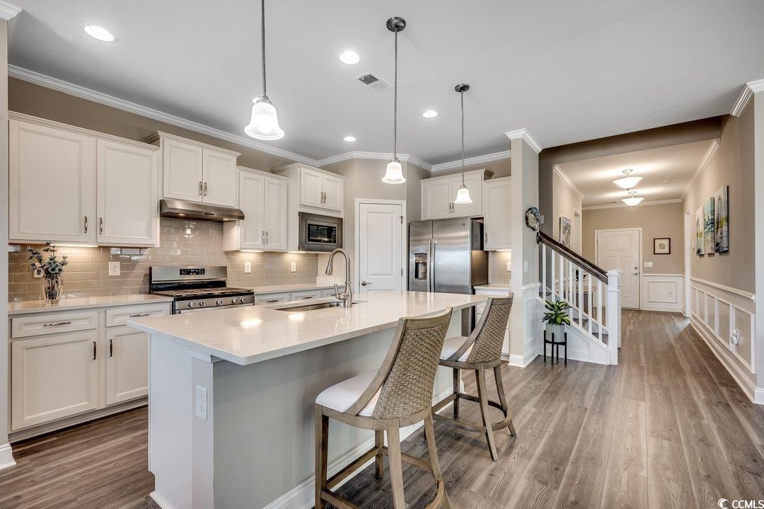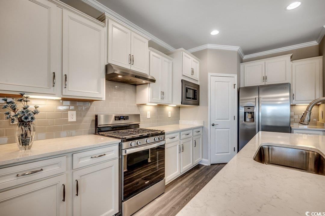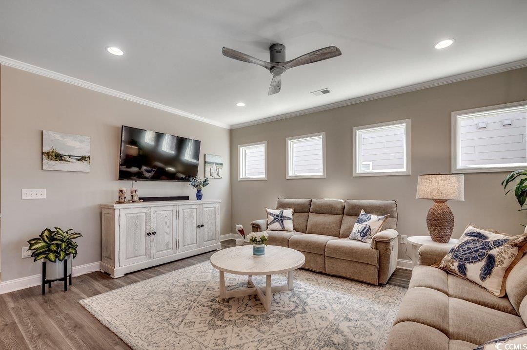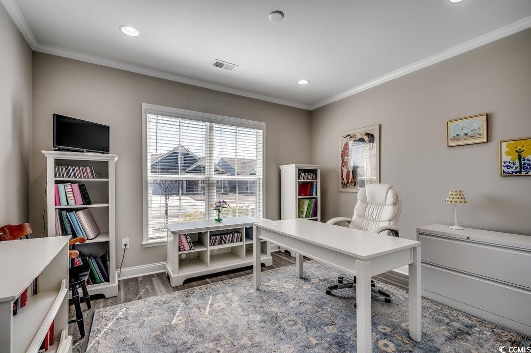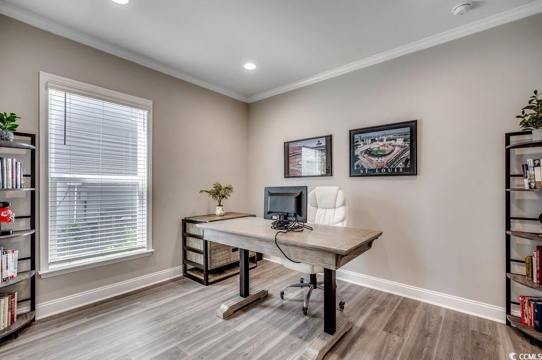 Step into luxury and comfort with this stunning 4-bedroom, 2-bath home in the highly sought-after Del Webb at Grande Dunes, one of the most desirable 55+ communities and included membership to the Ocean Club. Built in 2023, this Summerwood model residence offers sophisticated easy living and is located in Phase III which is close to the amenities center. As you enter the foyer, you will notice abundant natural light and custom wood work. The open floor plan is modern and the gourmet kitchen features premium stainless-steel appliances, an oversized island, quartz countertops, custom cabinetry, and a pantry—perfect for entertaining or everyday cooking. This space flows into the great room and the dining area. The primary suite is complete with a spa-inspired en-suite bath, upgraded bathroom ceramic tile, double vanities, a walk-in shower, and a walk-in closet. Two additional bedrooms, each offer flexible spaces for guests or a home office conveniently are on the main level. The laundry room is complete with a drop zone and custom molding. The wood stairs lead to a large bonus room/4th bedroom. This is spacious enough for both a sectional couch/TV area and beds. The home has upgraded insulation, a Rinnai tankless water heater, and plantation shutters in some areas. Enjoy the peaceful screened in lanai area which overlooks a fenced in backyard and a large common area behind it. Perfect space for your morning coffee or relaxing in the afternoon. The oversized 2 car garage can also hold your golf cart. This is an energy efficient home with upgraded 15 seer HVAC and upgraded attic insulation to R38. Del Webb at Grande Dunes is more than a community—it’s a lifestyle. As a resident of Del Webb, you’ll experience resort-style amenities in the community and membership to the Ocean Club. Enjoy a private clubhouse, premier fitness facilities, pickleball, tennis courts, bocce ball court and year-round activities designed for an active and social lifestyle. Golf lovers will appreciate two prestigious golf courses, while boaters will love the deep-water marina. Plus, the access to the Grande Dunes Ocean Club, featuring beachfront pools and fine dining. You will enjoy all of this and be conveniently located near hospitals, doctor’s offices, restaurants, shopping and the beautiful beaches and ocean. All information is deemed to be accurate but buyer is responsible for verification.