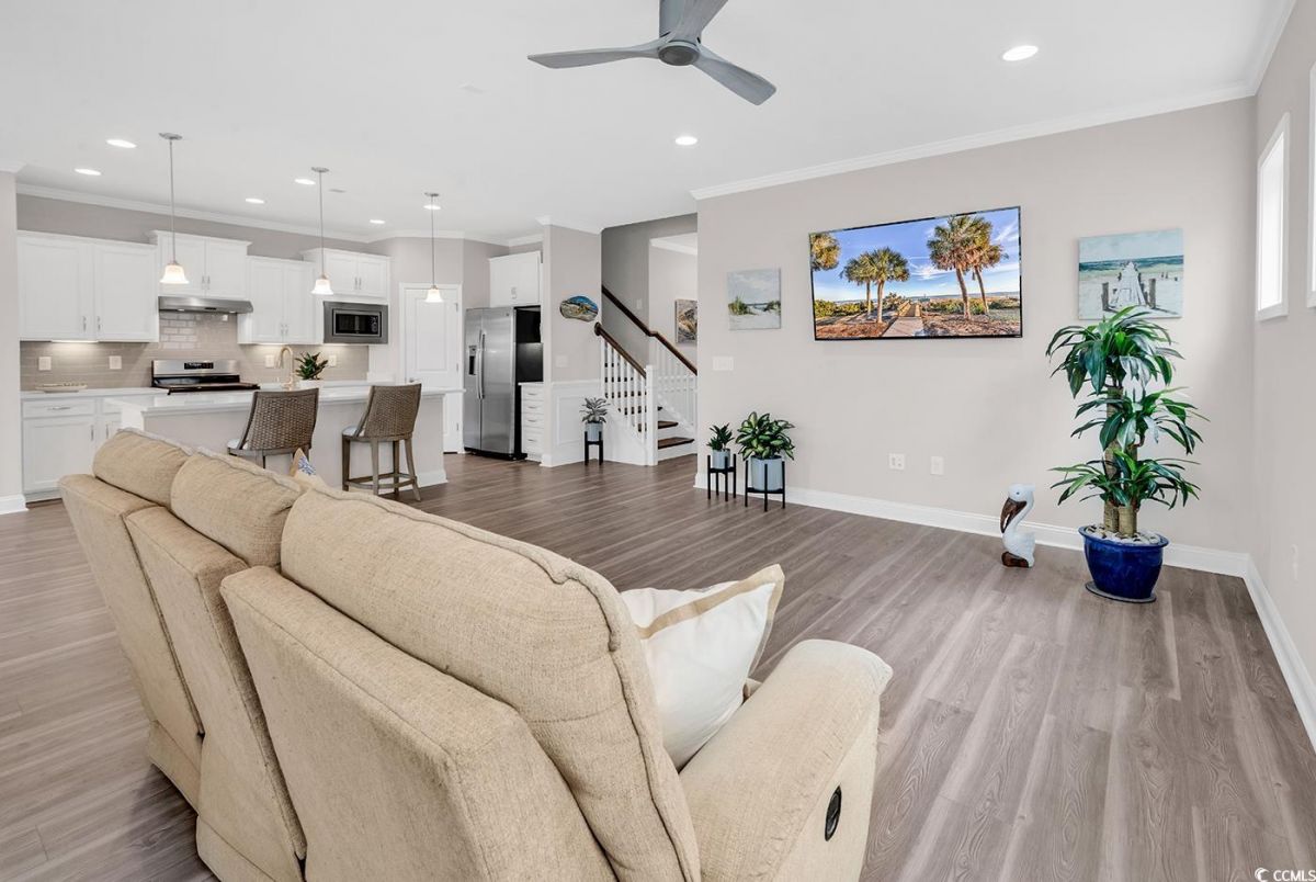 Welcome to Del Webb Grande Dunes—Myrtle Beach's premier 55+ community where luxury meets lifestyle! This stunning 4-bedroom, 2-bathroom open floor home with a large loft featuring the coveted Summerwood floor plan, offers the perfect blend of comfort, elegance, and scenic beauty. This practically new home built in 2023 is located at Phase III which is nestled on a fine lot conveniently close to the community club house. This energy efficient home includes an upgraded 15 seer HVAC unit and upgraded R38 attic insulation and a Rinnal tankless water heater. Enjoy your morning coffees or evenings from your bright lanai, a peaceful retreat right in your fenced backyard. Step inside to discover elegant luxury vinyl plank (LVP) flooring that flows seamlessly throughout, adding warmth and sophistication. The custom molding, baseboards, wains coating elevate the space with thoughtful and practical design touches. The heart of this home is its stunning, upgraded kitchen—featuring elegant quartz countertops, premium stainless-steel appliances, and custom cabinetry. Perfectly designed for both everyday living and entertaining, this space seamlessly blends style and functionality. The spacious primary suite provides a serene retreat with a luxurious en-suite bathroom, complete with double vanities and a generous walk-in closet. A beautifully crafted wooden staircase leads to one of the home’s most desirable highlights: a versatile and large loft area that can serve as an additional living space, entertainment area, or guest bedroom. Ceiling fans throughout the home provide comfort year-round, plantation shutters adorn the windows and additional storage in the garage ensures you have space for everything you need. The garage can accommodate 2 cars and a golf cart. Living at Del Webb Grande Dunes means you'll enjoy a wealth of world-class amenities. The 15,000 sq. ft. clubhouse offers a cutting-edge fitness center, an indoor heated pool, and a resort-style outdoor pool. Whether you’re into tennis, pickleball, or bocce ball, there's something here for you. Plus, a dedicated Lifestyle Director keeps the calendar full of exciting events and social opportunities. As a resident, you'll also enjoy exclusive access to the Grande Dunes Ocean Club—a private beachfront haven with parking for both cars and golf carts. Spend your days by the private pool, soaking up oceanfront views, or enjoying casual dining and upscale restaurant options. Beach towels, chairs, and umbrellas are provided to make every visit effortless. Conveniently located along the Intracoastal Waterway and just two miles from the beach, this vibrant community puts you close to everything Myrtle Beach has to offer—including incredible dining, shopping, medical facilities, and over 90 world-class golf courses. Don’t miss out on this rare opportunity to enjoy resort-style living in one of Myrtle Beach's most sought-after active adult communities. Schedule your tour today and make this dream home yours!