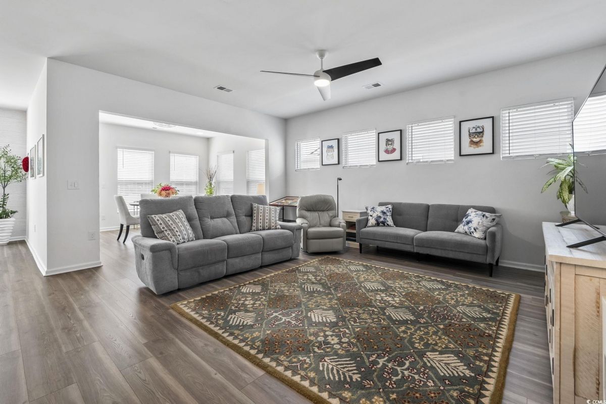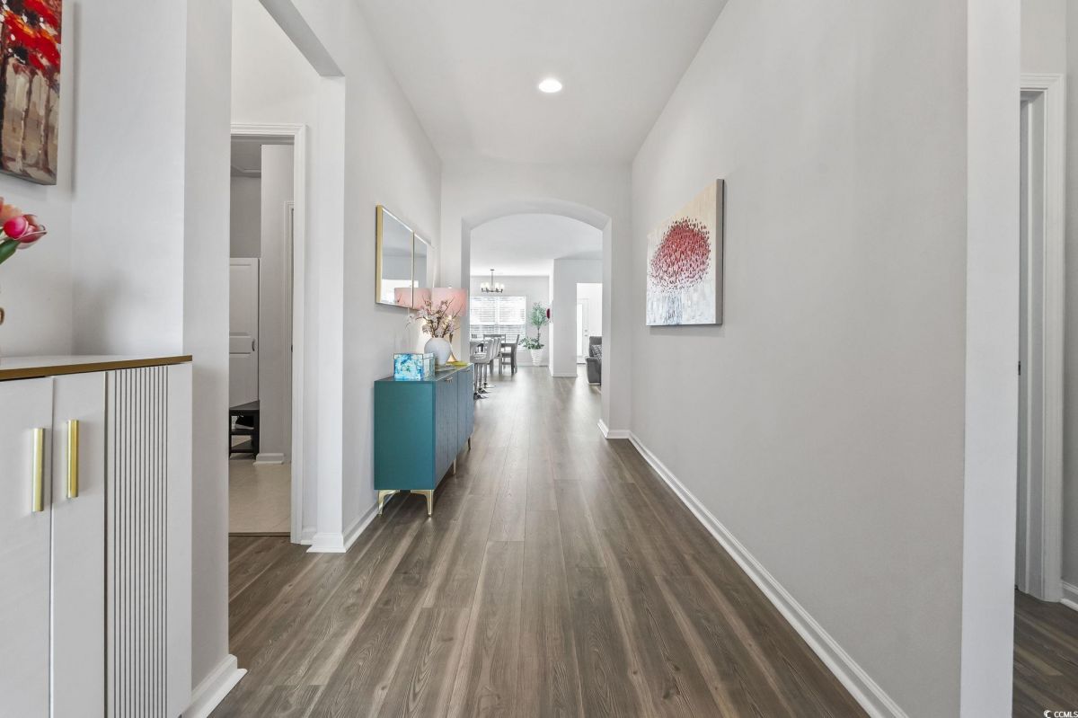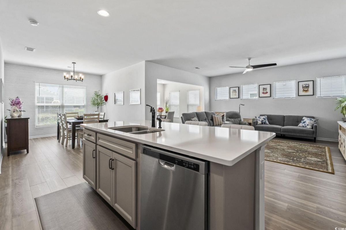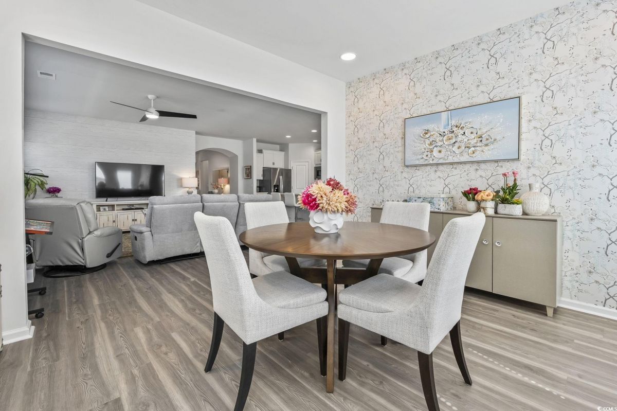 This stunning four-bedroom home is located in Del Webb's premier 55+ community. You will enjoy the low maintenance lifestyle with HOA covered lawncare and resort style amenities. The layout offers easy one-level living with an open-concept design perfect for entertaining. The chef’s kitchen features a gas range, quartz countertops, and solid shelving in the pantry for a custom, upgraded touch. The Carolina Room is a thoughtfully added feature, comfortably expanding your living space. The spacious primary suite includes a custom closet design for maximum organization, while LVP flooring is featured throughout the home, creating a low-maintenance living space. Spend your days lounging by the resort-style pool overlooking the Intracoastal Waterway or enjoy the indoor pool and fitness center. The community offers pickle ball, bocce ball, a snack bar, dog park, outdoor kitchen and fire pit, along with a full calendar of activities including water aerobics, dance and fitness classes, card games, and more. There is even a deep-water marina with a day dock for easy access to the water. As a resident, you’ll also enjoy membership to the Grande Dunes Ocean Club, an oceanfront resort with private beach access and chair service, a stunning pool with chairside food and beverage service, kiddie pool, jacuzzi, and a vibrant social scene with live music and happy hours. This is more than a home — it’s a lifestyle designed for connection, relaxation, and enjoyment.