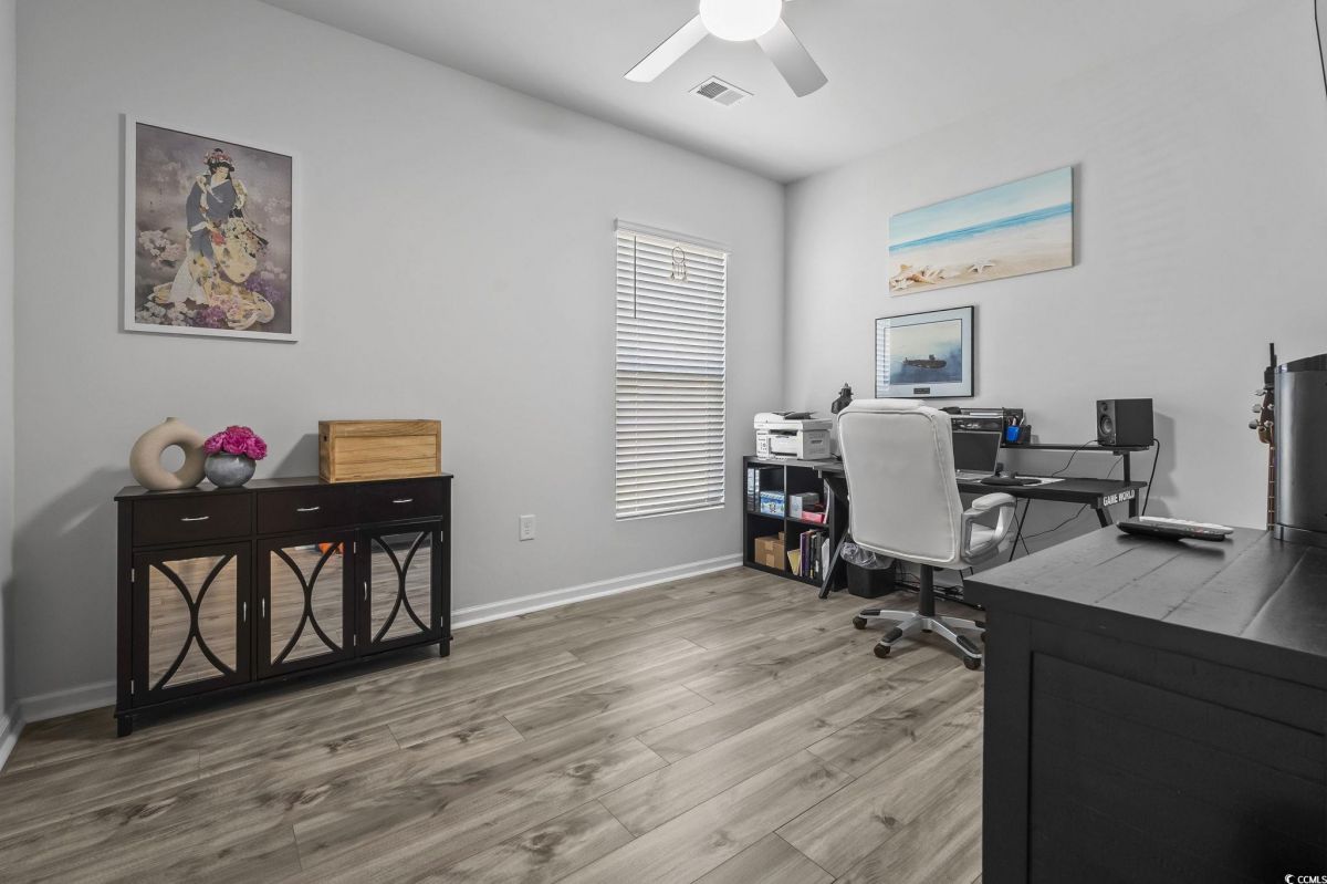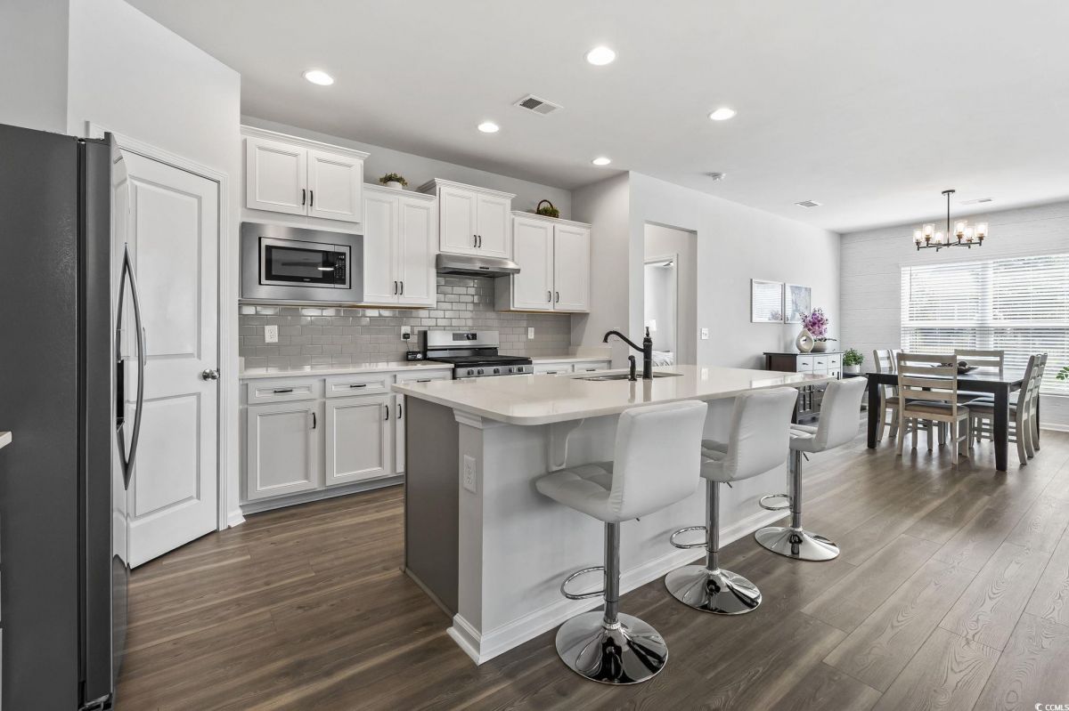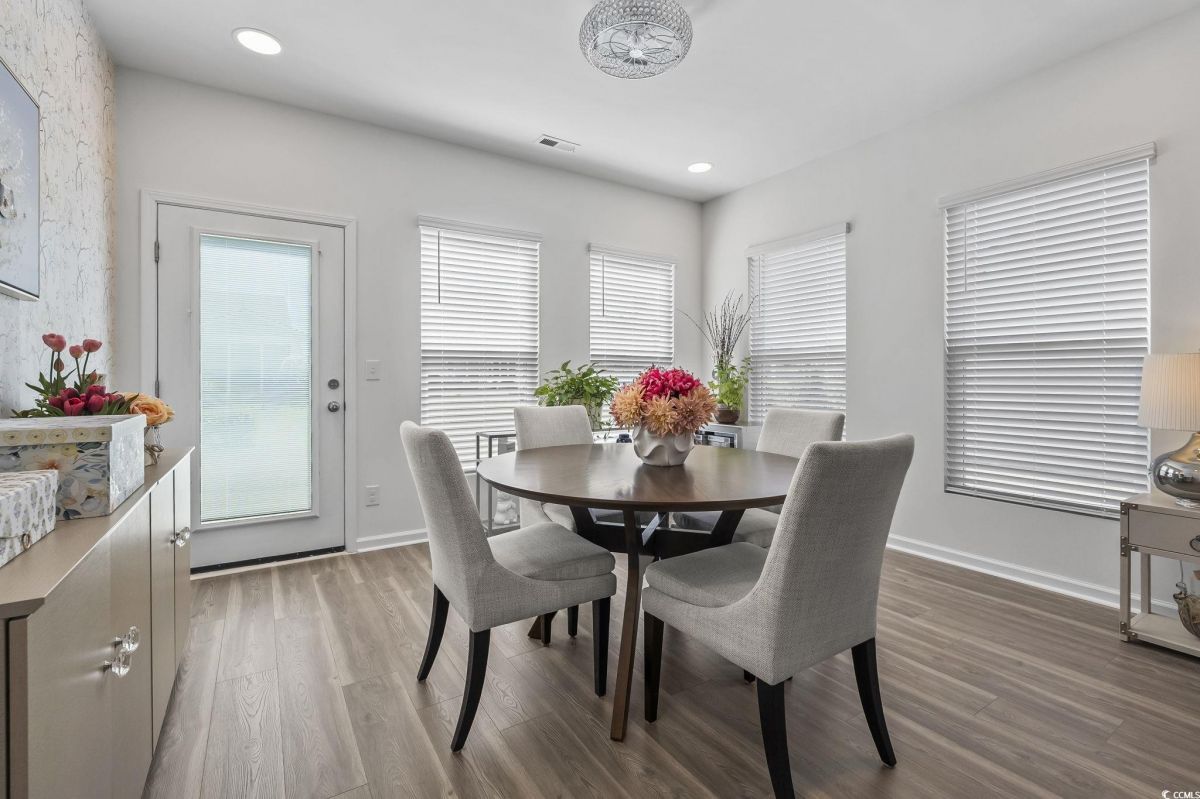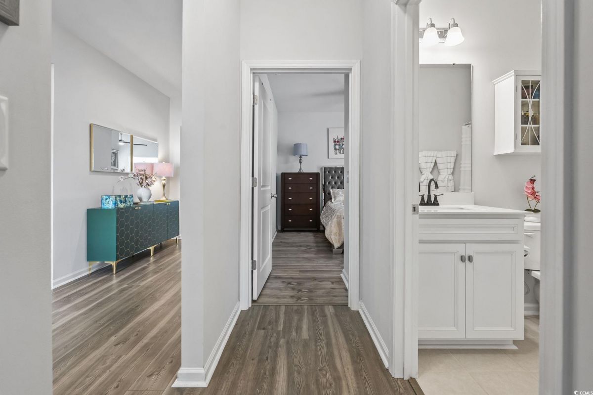 This stunning four-bedroom home is located in Del Webb's premier 55+ community. You will enjoy the low maintenance lifestyle with HOA covered lawncare and resort style amenities. The layout offers easy one-level living with an open-concept design perfect for entertaining. The chef’s kitchen features a gas range, quartz countertops, and solid shelving in the pantry for a custom, upgraded touch. The Carolina Room is a thoughtfully added feature, comfortably expanding your living space. The spacious primary suite includes a custom closet design for maximum organization, while LVP flooring is featured throughout the home, creating a low-maintenance living space. Spend your days lounging by the resort-style pool overlooking the Intracoastal Waterway or enjoy the indoor pool and fitness center. The community offers pickle ball, bocce ball, a snack bar, dog park, outdoor kitchen and fire pit, along with a full calendar of activities including water aerobics, dance and fitness classes, card games, and more. There is even a deep-water marina with a day dock for easy access to the water. As a resident, you’ll also enjoy membership to the Grande Dunes Ocean Club, an oceanfront resort with private beach access and chair service, a stunning pool with chairside food and beverage service, kiddie pool, jacuzzi, and a vibrant social scene with live music and happy hours. This is more than a home — it’s a lifestyle designed for connection, relaxation, and enjoyment.