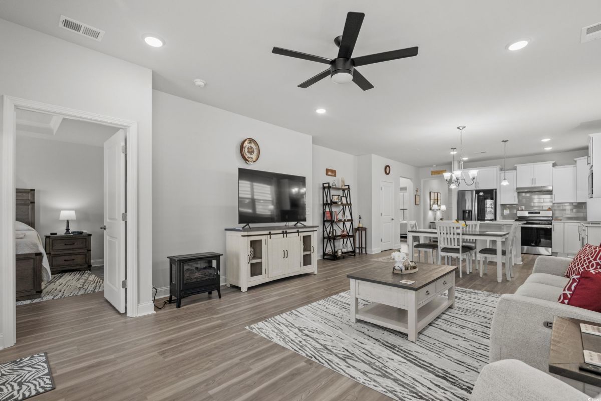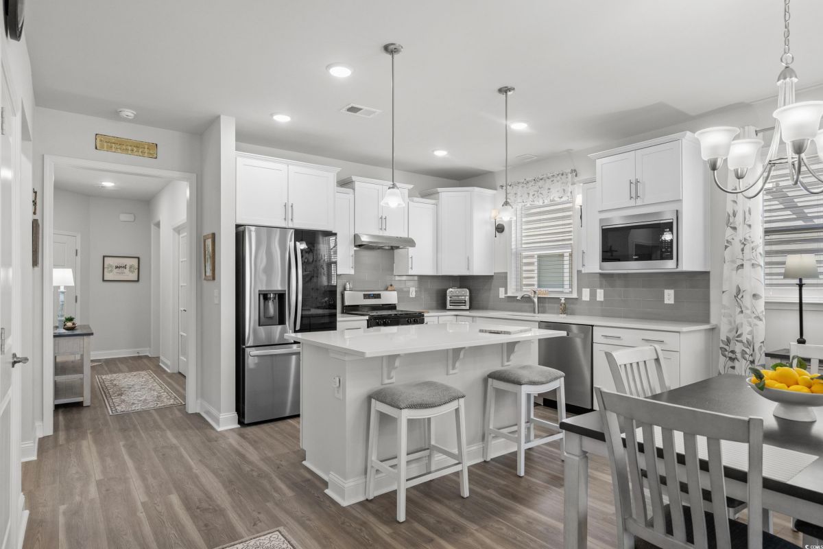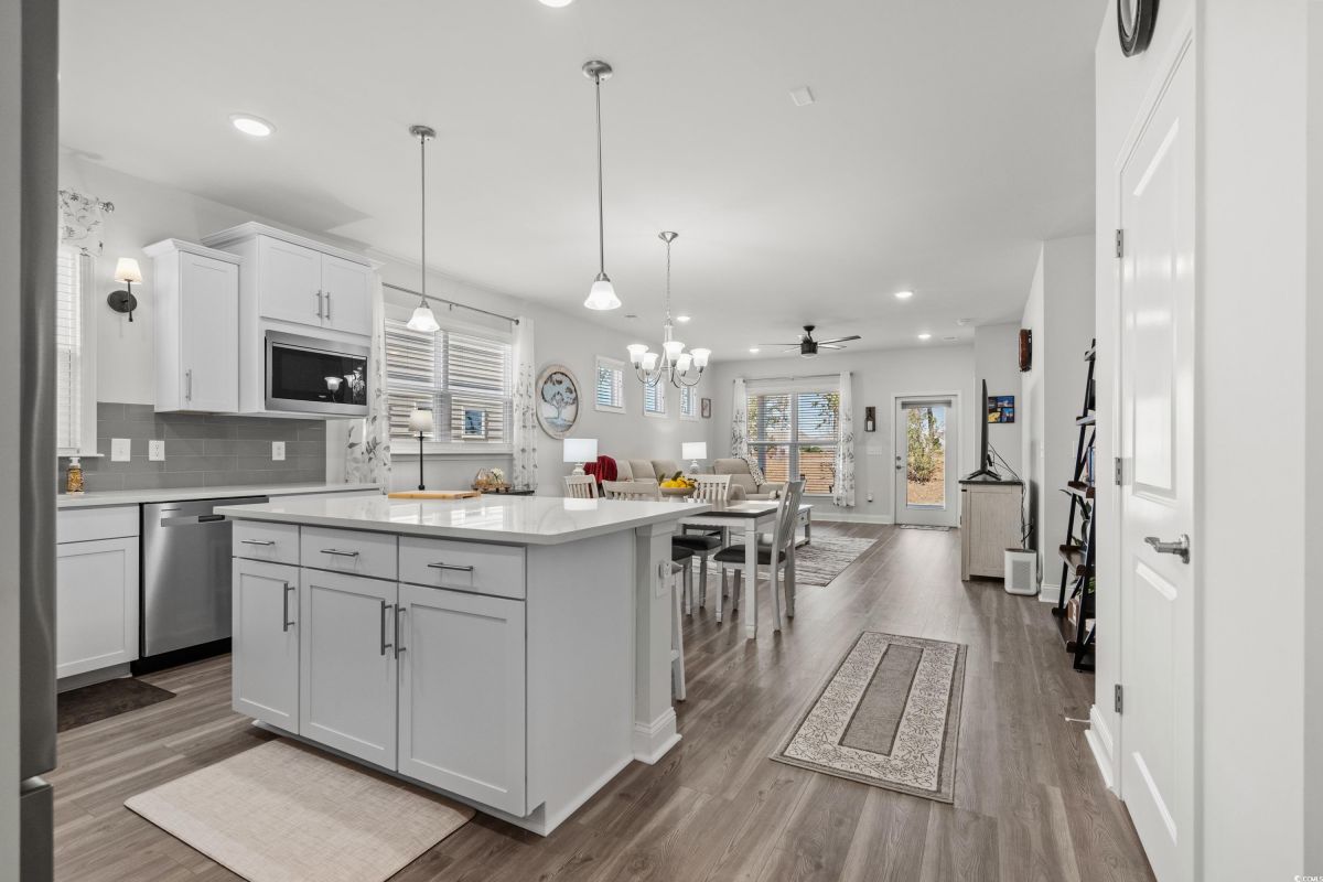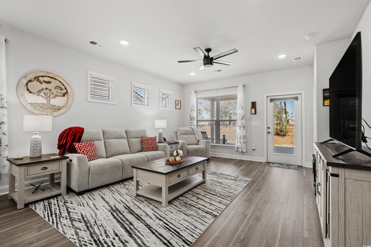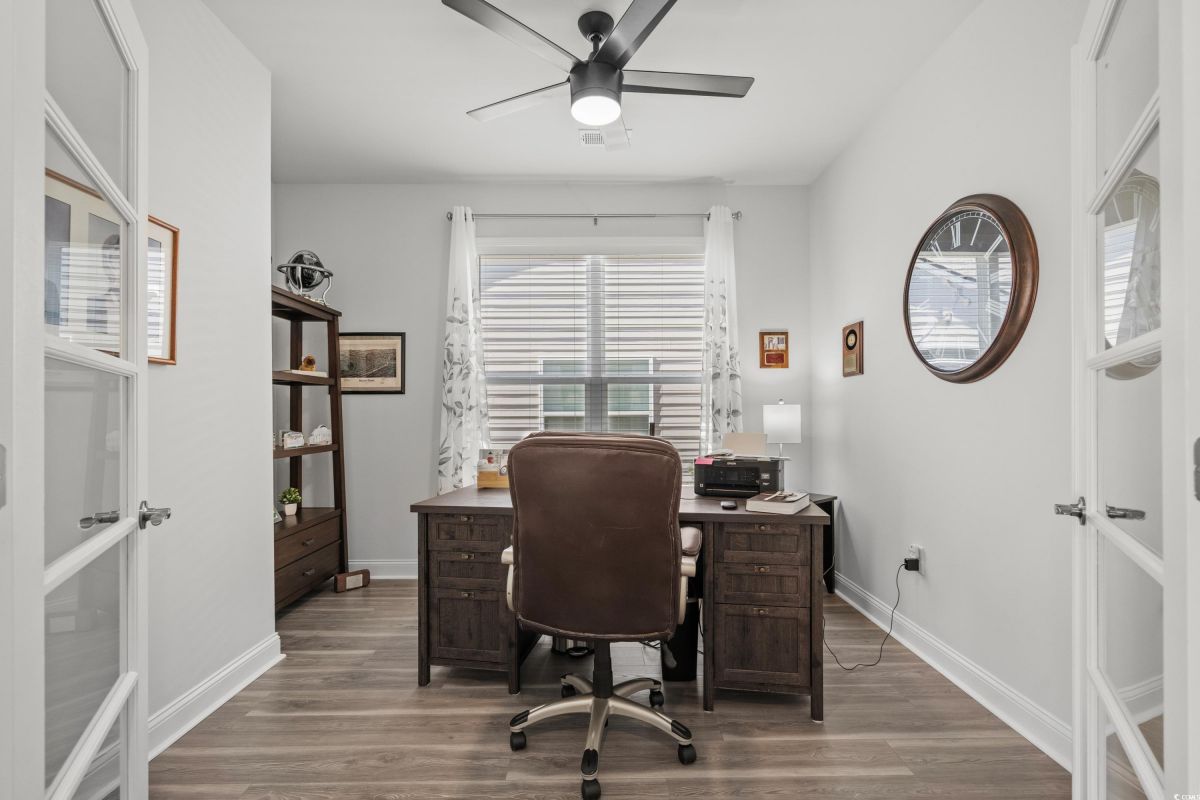 Welcome to this stunning home in Grande Dunes – Del Webb, an active adult community in the heart of Myrtle Beach offering an unparalleled lifestyle with resort-style amenities. MOTIVATED SELLER! This beautifully designed 3-bedroom, 2-bath home (3rd bedroom is a flex room/office with French doors). Home features a covered front porch and a 2-car garage. Inside, you’ll find tasteful décor throughout, and the owner may be willing to sell some furnishings. The gorgeous kitchen boasts quartz countertops, a tile backsplash, a natural gas range, an LG refrigerator, sconce lamps above the sink, an island, and a pantry—perfect for any home chef. The spacious and bright family room with a ceiling fan and recessed lighting flows seamlessly to the covered back porch, ideal for relaxation. Enjoy luxury vinyl plank flooring throughout, with tile in the baths for a polished look. The primary suite is a true retreat, featuring a tray ceiling, ceiling fan, private access to the covered back porch, and an elegant en-suite with double sinks, quartz counters, a tiled shower, separate toilet area, linen closet, and an oversized walk-in closet. The guest bedroom offers a ceiling fan and a large closet, while the guest bath is equally impressive with quartz countertops. The laundry room includes an LG washer and dryer set on pedestals for added convenience. Living in Grande Dunes – Del Webb means access to a state-of-the-art clubhouse, indoor and outdoor pools, a fitness center, pickleball and tennis courts, walking trails along the Intracoastal Waterway, day dock and social clubs. Plus, residents enjoy exclusive access to the Grande Dunes Beach Club, a private oceanfront retreat with dining, pools, and beach access. Don’t miss this incredible opportunity to live in one of Myrtle Beach’s most sought-after active adult communities—schedule your showing today!