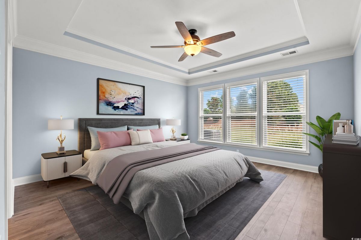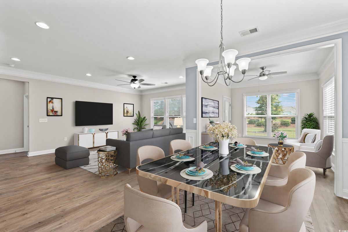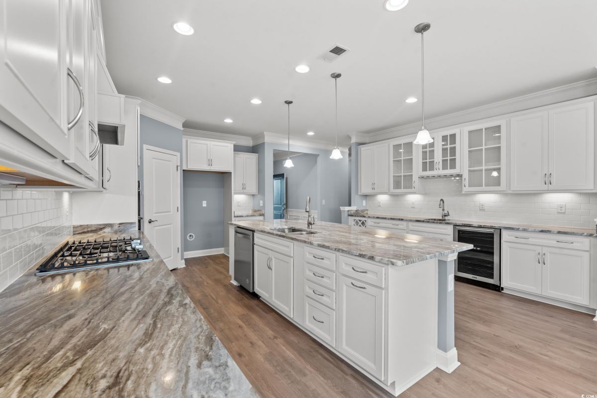 Wow! Come check out this "like new" 3-bedroom, 2-bathroom, home in the desirable intracoastal waterway community of Del Webb Grande Dunes. Del Webb Grande Dunes comes with membership to the exclusive oceanfront GRANDE DUNES OCEAN CLUB! The home is ready for a quick move in. Close as soon as you would like! The home comes with many builder upgrades 4 foot garage extension, LVP flooring throughout, attic stairs, kitchen wet bar with glass cabinets, sun room and so much more! As you enter the house, there is a glass storm door which will allow natural light in. The foyer, decorated with chairs and squares leads to a non-conforming bedroom on the right that can be used for additional sleeping space or a bonus/flex room. If you continue straight ahead there is the open floor plan, kitchen, dining room, great room and sunroom which also has the chairs and squares. The kitchen (largest in the builders expedition series) is great for entertaining, comes with a large granite island which is curved, so multiple people can sit and converse. There is a bar area in the kitchen as well. This has a beverage cooler, bar sink, wine rack and large counter space area with 12 feet of cabinets above and below. The kitchen and bar area have granite countertops, a coffee bar, upgraded whirlpool appliances (stove is gas), a nice wood stove vent, and a pantry. The back of the house has many windows and again allows a lot of natural light in. The bright sunroom is an added builder upgrade which adds extra HSF of space. The back door from the sunroom leads out to a concrete patio and in the yard, patio blocks have been placed for a table and chairs near the palm tree where you can relax in the yard. Hedges line the back of the house for privacy. The master bath has beautiful flooring, soaker tub, walk in shower, double sinks, and a huge walk-in closet. There is a 2-car garage with stairs which lead upstairs where there is plenty of room for storage. As you enter the house from the garage, there is a beautiful drop zone. There is also another full-size bathroom and bedroom. The house comes with hurricane covering for all windows and ceiling fans in most rooms (including the master bathroom and the garage). Del Webb Grande Dunes has a grand clubhouse with a full-time lifestyle director, outdoor resort style pool, indoor lap pool, and state of the art fitness center, fire pit, tennis, pickleball, bocce courts, day dock and more! Only minutes away by golf cart or car is the Ocean Club! Coastal elegance with a casual atmosphere! Enjoy dining, or the resort style pool with bar service, towel service, beach chairs and umbrellas. The Members Golf Club and the Resort Club are two renown golf courses at Grande Dunes. The Marina at Grande Dunes has a full-service boating facility and has waterfront dining on the Intracoastal Waterway. Great central location to all Myrtle Beach has to offer, shopping, golf courses, dining, hospital/medical facilities, and more. Only 15 minutes to Myrtle Beach International Airport.