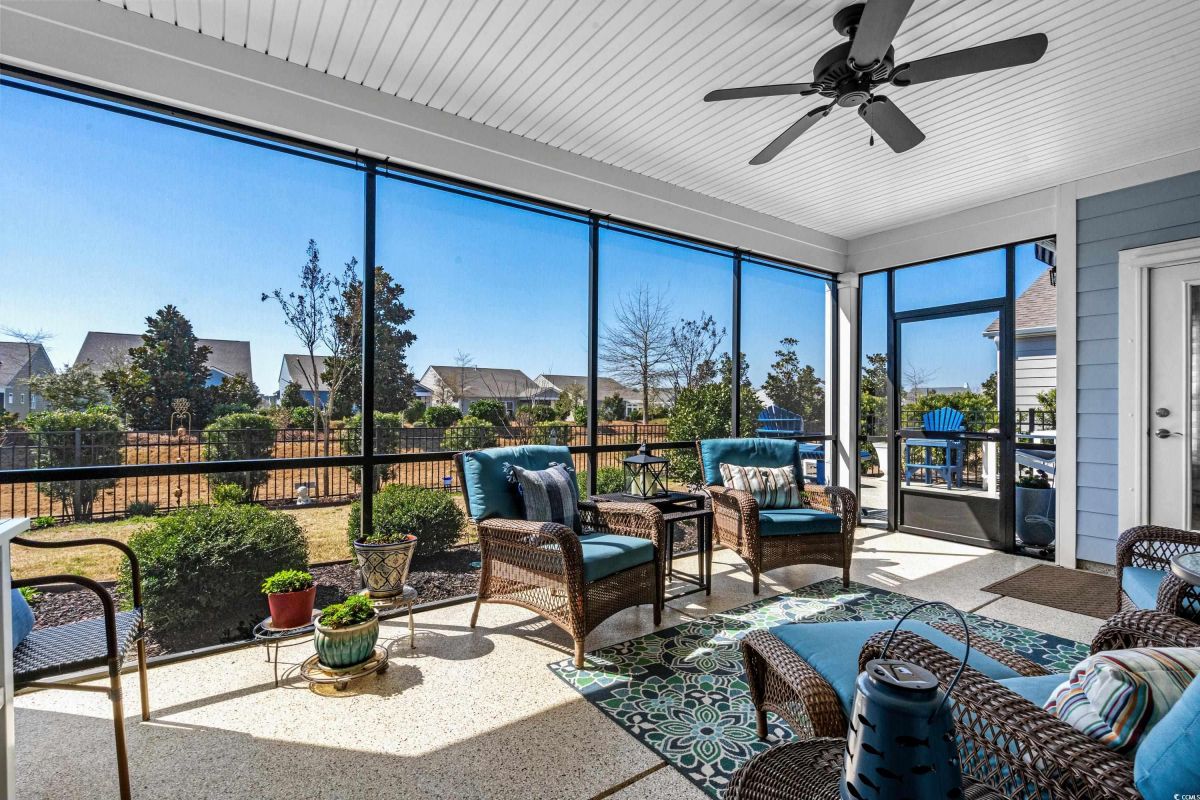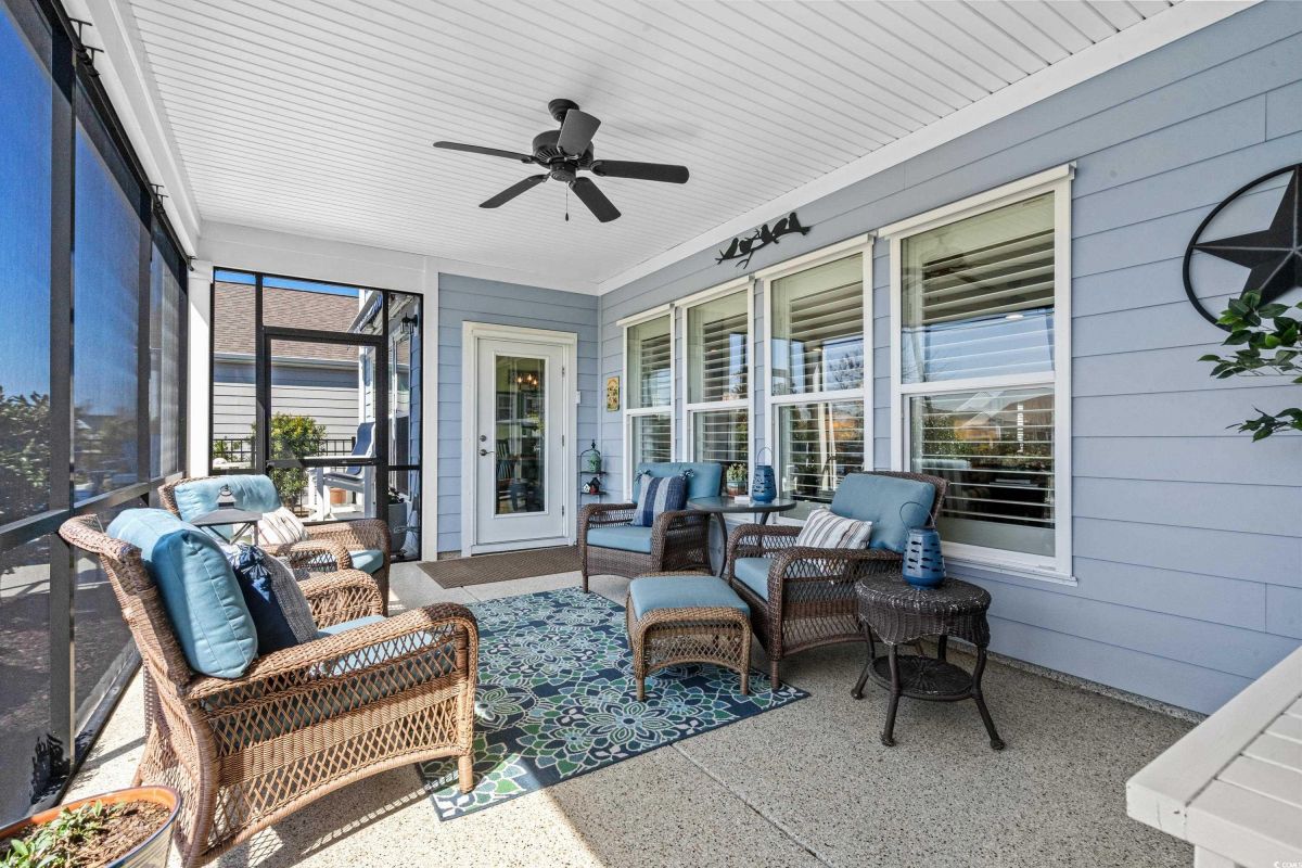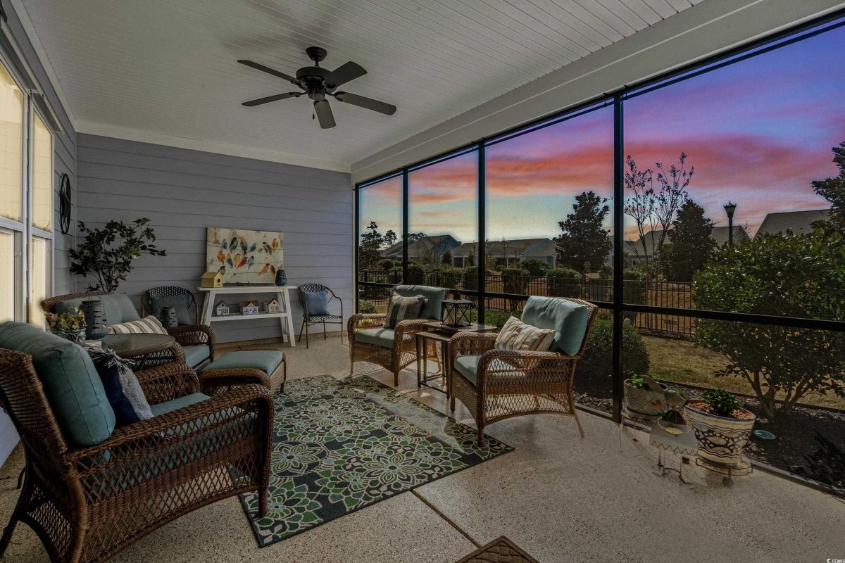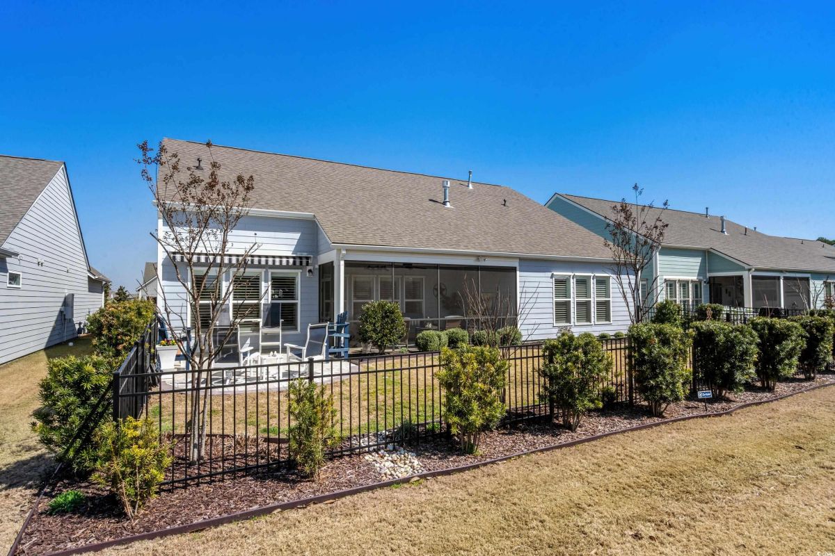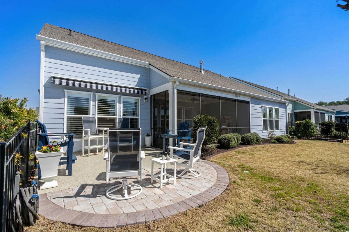 Your dream home awaits at 7122 Sarteano Dr, nestled in the heart of a vibrant 55+ community in beautiful Myrtle Beach, SC. This exquisite 3-bedroom, 3-bathroom house is designed to embody the essence of comfort and elegance for discerning homeowners seeking a maintenance-free lifestyle. As you step inside, you'll be greeted by an inviting atmosphere reminiscent of a model home, with upgraded hardwood flooring that flows seamlessly throughout the residence. The open and airy great room is illuminated by additional recessed lighting, creating a warm ambiance that's perfect for entertaining or relaxing by the cozy fireplace. The chef's kitchen is a masterpiece of design and functionality, boasting quartz countertops, a finished pantry, a wine refrigerator, upgraded appliances, and a farmhouse sink that adds a touch of rustic charm. The primary suite is a haven of tranquility, featuring upgraded molding, custom closet, stylish barn doors and a spa-like bathroom with a luxurious Roman shower to wash away the day's stress. Enjoy the tranquility of your fenced-in yard from the comfort of your beautiful patio, complete with a sun setter awning, or unwind in the screened-in porch that captures the essence of Southern living. The attention to detail is evident in the plantation shutters throughout, upgraded moldings, window trim, and a state-of-the-art HVAC system with media filter and UV light for your ultimate comfort. For hobbyists or travelers, the epoxy-floored garage includes a sink and a 30 amp RV power outlet, making it the perfect space for your projects or charging your home on wheels. With added space to the driveway, this home is an entertainer's delight and a serene retreat all in one. Residents of this amenity-rich neighborhood enjoy a vibrant lifestyle with access to community features that cater to the 55+ market, ensuring that there’s always something to do and new friends to meet. Del Webb, a natural gas community, offers an indoor heated pool, an outdoor resort style pool, a fulltime activities director, pickleball and tennis courts, bocce ball court, a fitness center, a fire pit, walking trails and day docks for fishing or boating. Your lawn care is also included so you can spend your time savoring life. As an owner in Grande Dunes you have access to the 25,000 square foot Ocean Club where you can enjoy fine dining, happy hour outings, oceanfront pools with food and beverage service, private beach entrance, beach chair service, and other fun activities. Additionally, the community has two 18-hole golf courses, deep water marina, and a Har-tru tennis facility. Don't miss this opportunity to own a slice of paradise at 7122 Sarteano Dr.
