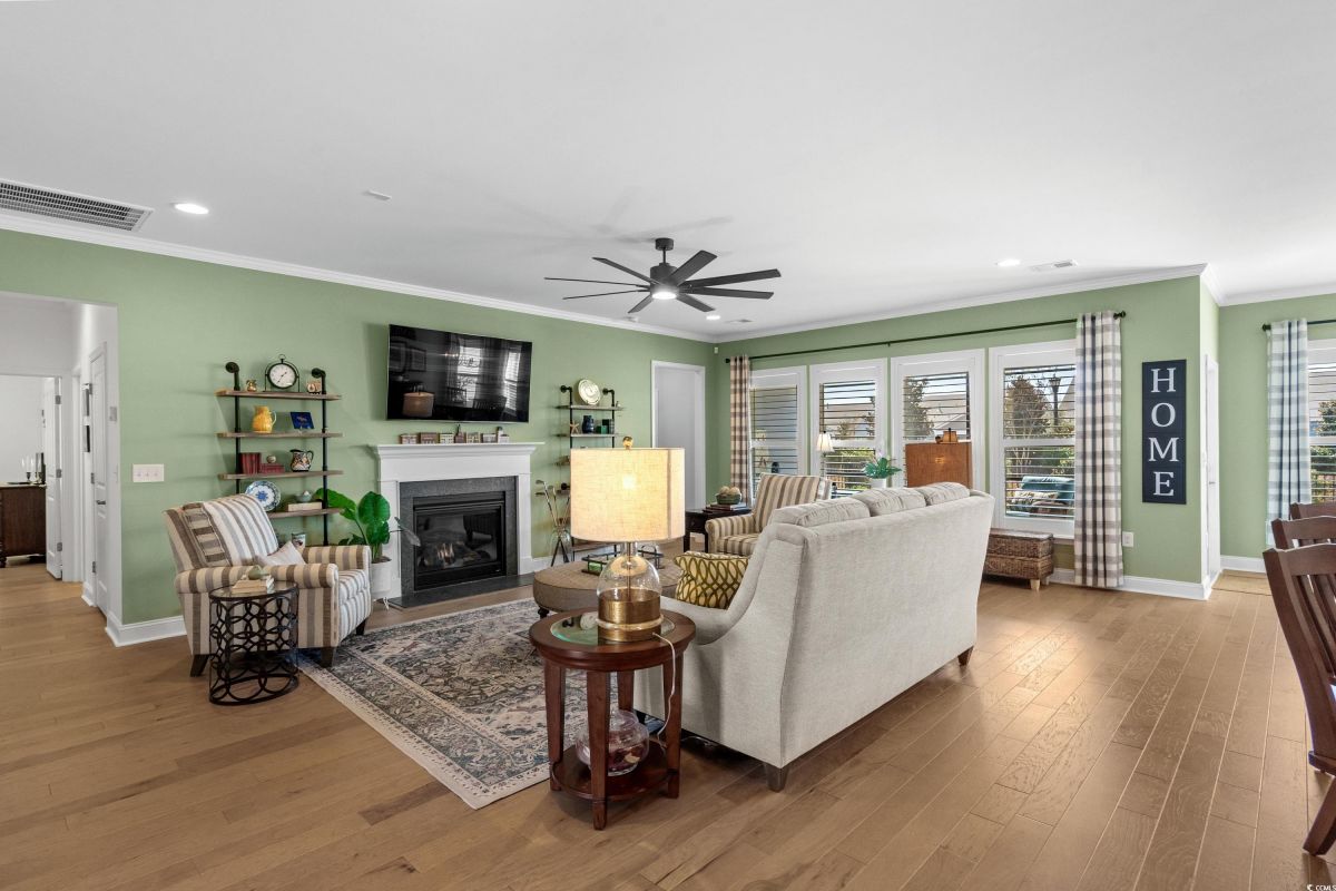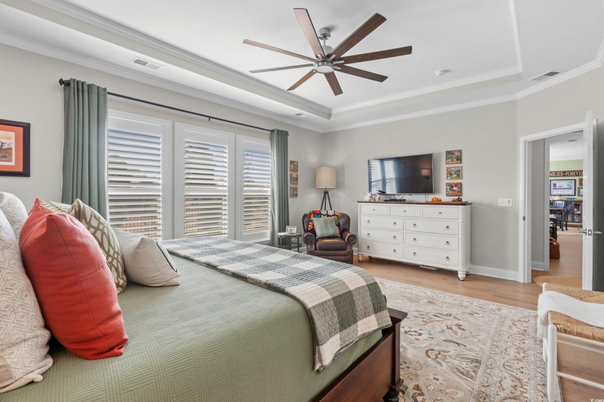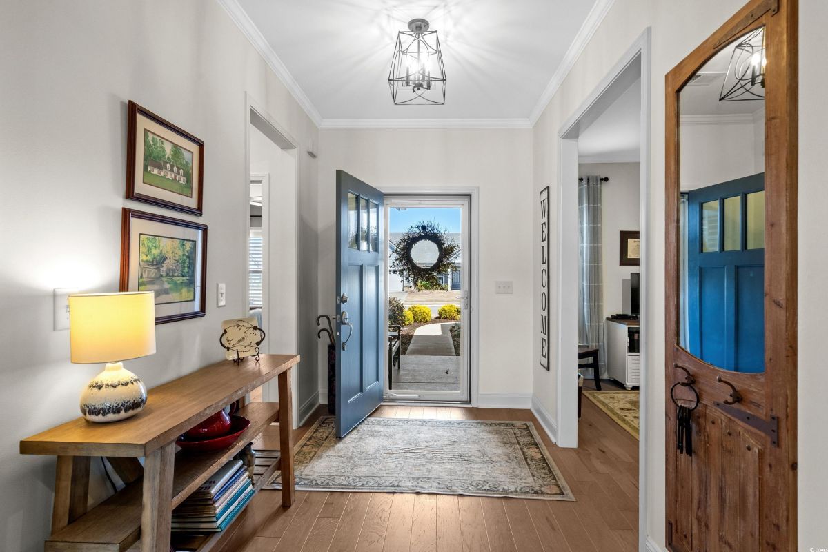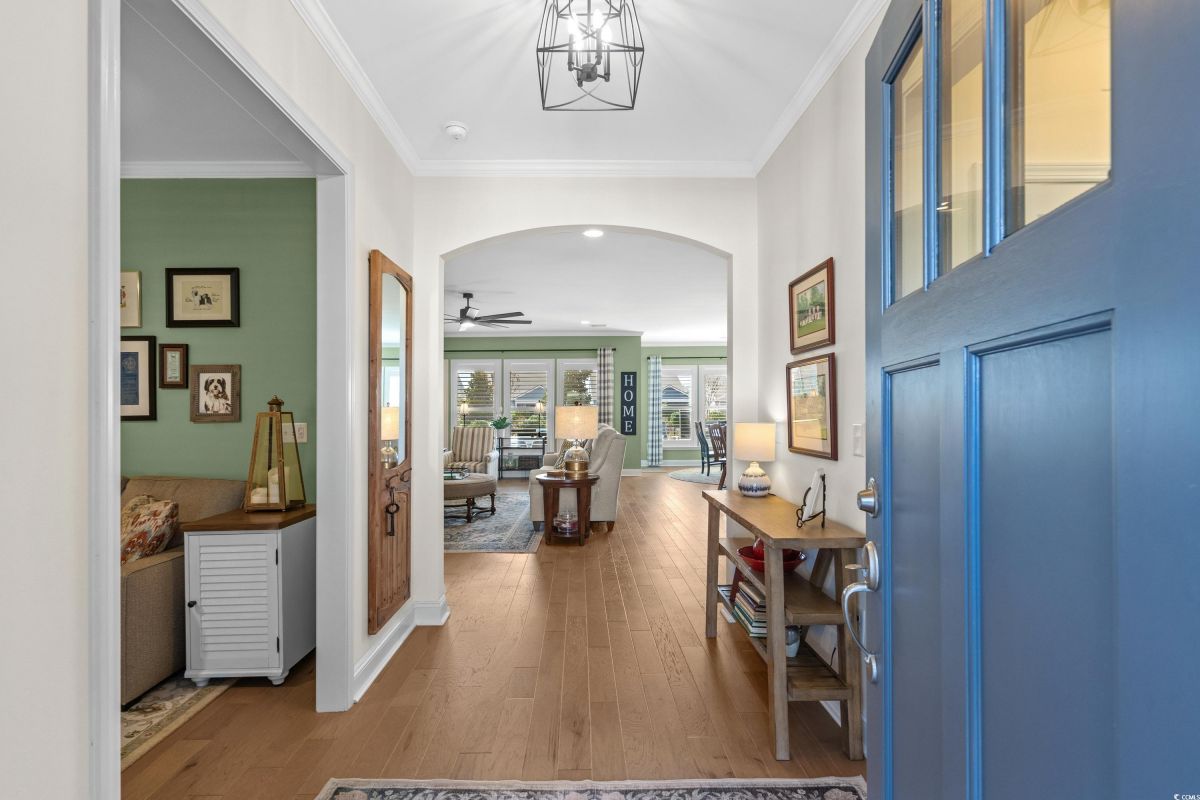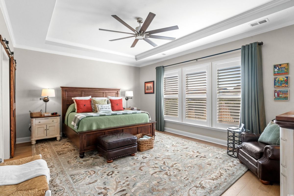 Your dream home awaits at 7122 Sarteano Dr, nestled in the heart of a vibrant 55+ community in beautiful Myrtle Beach, SC. This exquisite 3-bedroom, 3-bathroom house is designed to embody the essence of comfort and elegance for discerning homeowners seeking a maintenance-free lifestyle. As you step inside, you'll be greeted by an inviting atmosphere reminiscent of a model home, with upgraded hardwood flooring that flows seamlessly throughout the residence. The open and airy great room is illuminated by additional recessed lighting, creating a warm ambiance that's perfect for entertaining or relaxing by the cozy fireplace. The chef's kitchen is a masterpiece of design and functionality, boasting quartz countertops, a finished pantry, a wine refrigerator, upgraded appliances, and a farmhouse sink that adds a touch of rustic charm. The primary suite is a haven of tranquility, featuring upgraded molding, custom closet, stylish barn doors and a spa-like bathroom with a luxurious Roman shower to wash away the day's stress. Enjoy the tranquility of your fenced-in yard from the comfort of your beautiful patio, complete with a sun setter awning, or unwind in the screened-in porch that captures the essence of Southern living. The attention to detail is evident in the plantation shutters throughout, upgraded moldings, window trim, and a state-of-the-art HVAC system with media filter and UV light for your ultimate comfort. For hobbyists or travelers, the epoxy-floored garage includes a sink and a 30 amp RV power outlet, making it the perfect space for your projects or charging your home on wheels. With added space to the driveway, this home is an entertainer's delight and a serene retreat all in one. Residents of this amenity-rich neighborhood enjoy a vibrant lifestyle with access to community features that cater to the 55+ market, ensuring that there’s always something to do and new friends to meet. Del Webb, a natural gas community, offers an indoor heated pool, an outdoor resort style pool, a fulltime activities director, pickleball and tennis courts, bocce ball court, a fitness center, a fire pit, walking trails and day docks for fishing or boating. Your lawn care is also included so you can spend your time savoring life. As an owner in Grande Dunes you have access to the 25,000 square foot Ocean Club where you can enjoy fine dining, happy hour outings, oceanfront pools with food and beverage service, private beach entrance, beach chair service, and other fun activities. Additionally, the community has two 18-hole golf courses, deep water marina, and a Har-tru tennis facility. Don't miss this opportunity to own a slice of paradise at 7122 Sarteano Dr.