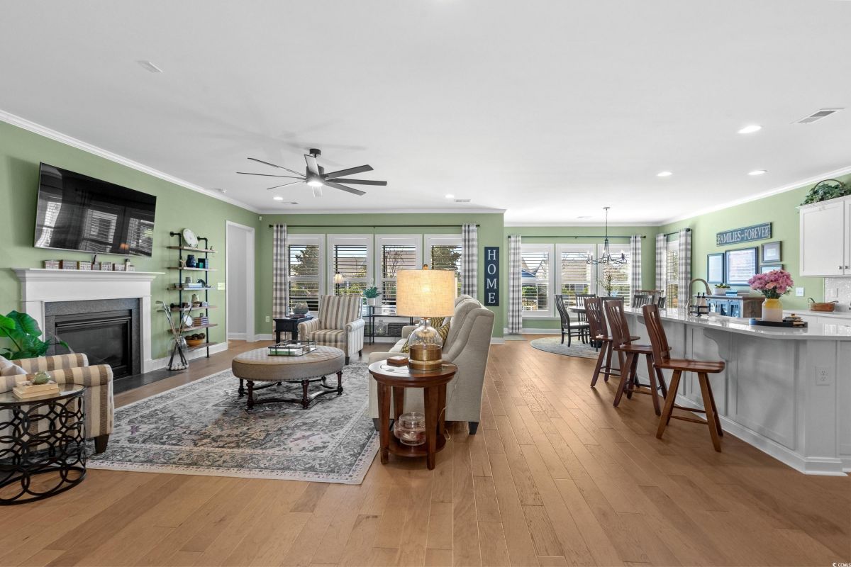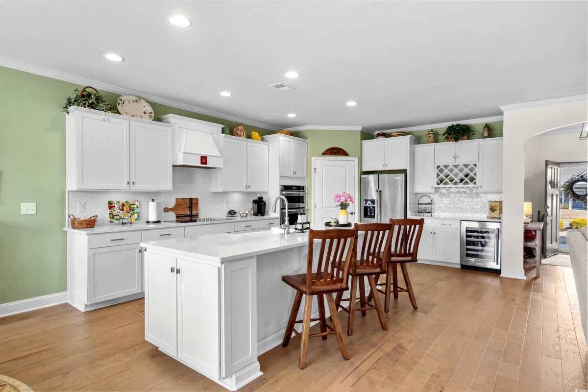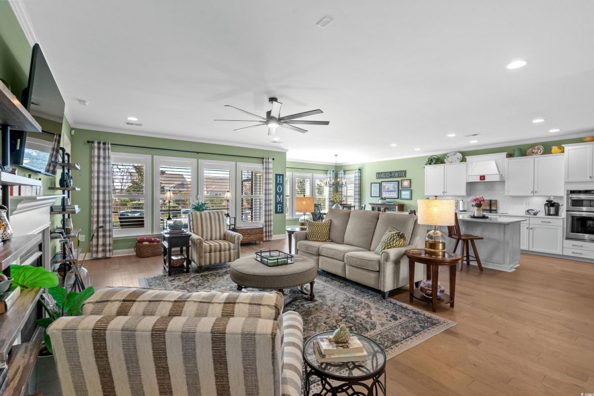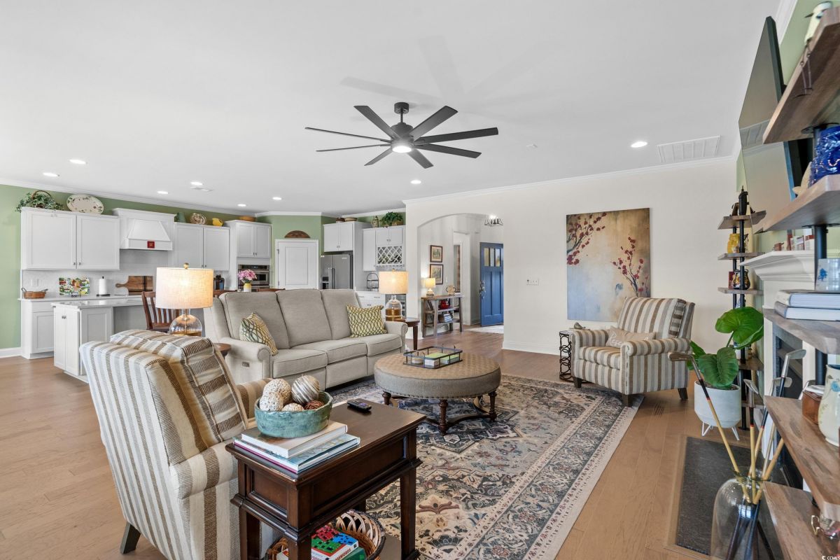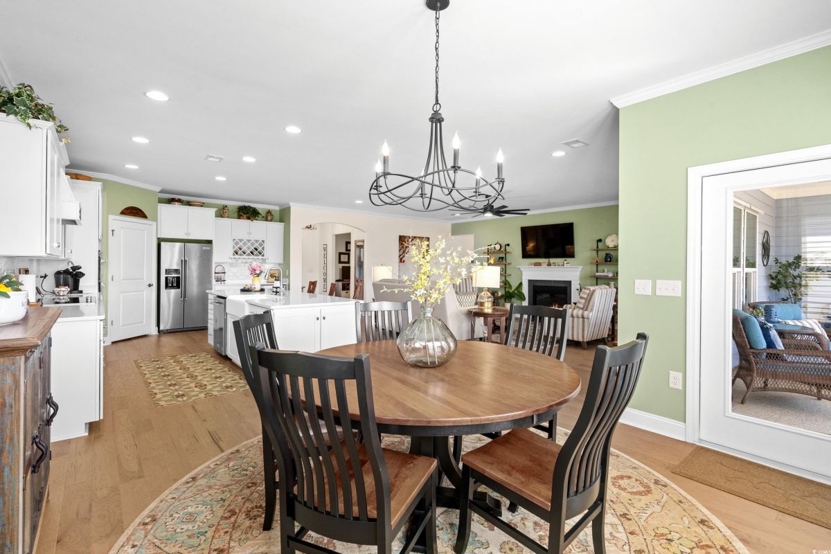 Your dream home awaits at 7122 Sarteano Dr, nestled in the heart of a vibrant 55+ community in beautiful Myrtle Beach, SC. This exquisite 3-bedroom, 3-bathroom house is designed to embody the essence of comfort and elegance for discerning homeowners seeking a maintenance-free lifestyle. As you step inside, you'll be greeted by an inviting atmosphere reminiscent of a model home, with upgraded hardwood flooring that flows seamlessly throughout the residence. The open and airy great room is illuminated by additional recessed lighting, creating a warm ambiance that's perfect for entertaining or relaxing by the cozy fireplace. The chef's kitchen is a masterpiece of design and functionality, boasting quartz countertops, a finished pantry, a wine refrigerator, upgraded appliances, and a farmhouse sink that adds a touch of rustic charm. The primary suite is a haven of tranquility, featuring upgraded molding, custom closet, stylish barn doors and a spa-like bathroom with a luxurious Roman shower to wash away the day's stress. Enjoy the tranquility of your fenced-in yard from the comfort of your beautiful patio, complete with a sun setter awning, or unwind in the screened-in porch that captures the essence of Southern living. The attention to detail is evident in the plantation shutters throughout, upgraded moldings, window trim, and a state-of-the-art HVAC system with media filter and UV light for your ultimate comfort. For hobbyists or travelers, the epoxy-floored garage includes a sink and a 30 amp RV power outlet, making it the perfect space for your projects or charging your home on wheels. With added space to the driveway, this home is an entertainer's delight and a serene retreat all in one. Residents of this amenity-rich neighborhood enjoy a vibrant lifestyle with access to community features that cater to the 55+ market, ensuring that there’s always something to do and new friends to meet. Del Webb, a natural gas community, offers an indoor heated pool, an outdoor resort style pool, a fulltime activities director, pickleball and tennis courts, bocce ball court, a fitness center, a fire pit, walking trails and day docks for fishing or boating. Your lawn care is also included so you can spend your time savoring life. As an owner in Grande Dunes you have access to the 25,000 square foot Ocean Club where you can enjoy fine dining, happy hour outings, oceanfront pools with food and beverage service, private beach entrance, beach chair service, and other fun activities. Additionally, the community has two 18-hole golf courses, deep water marina, and a Har-tru tennis facility. Don't miss this opportunity to own a slice of paradise at 7122 Sarteano Dr.