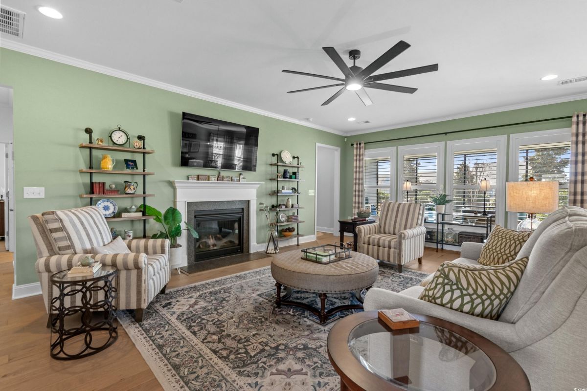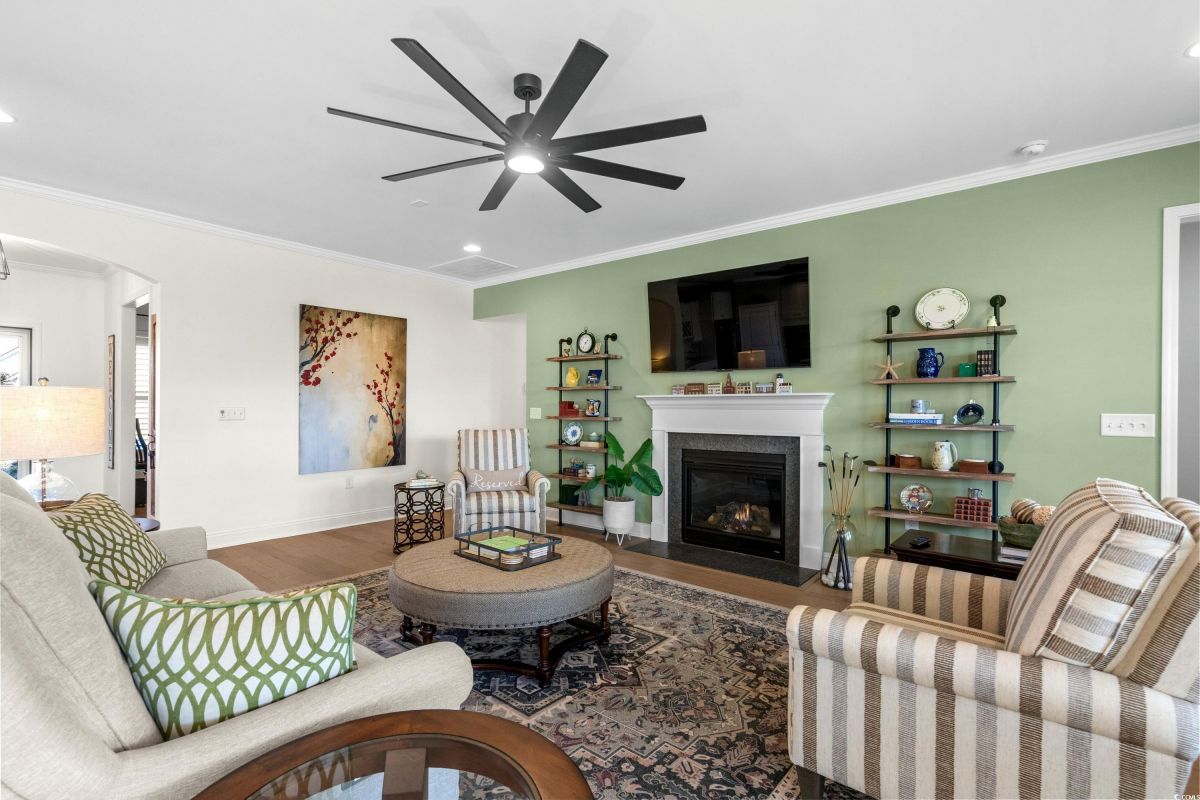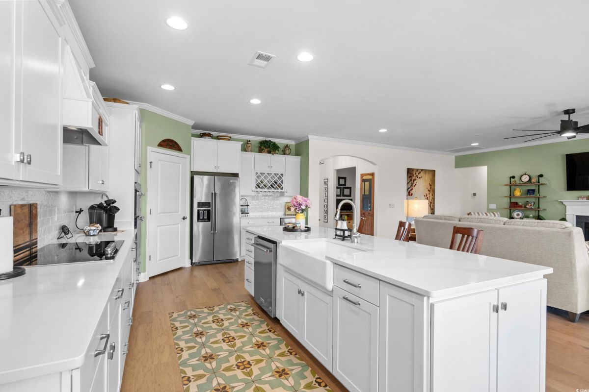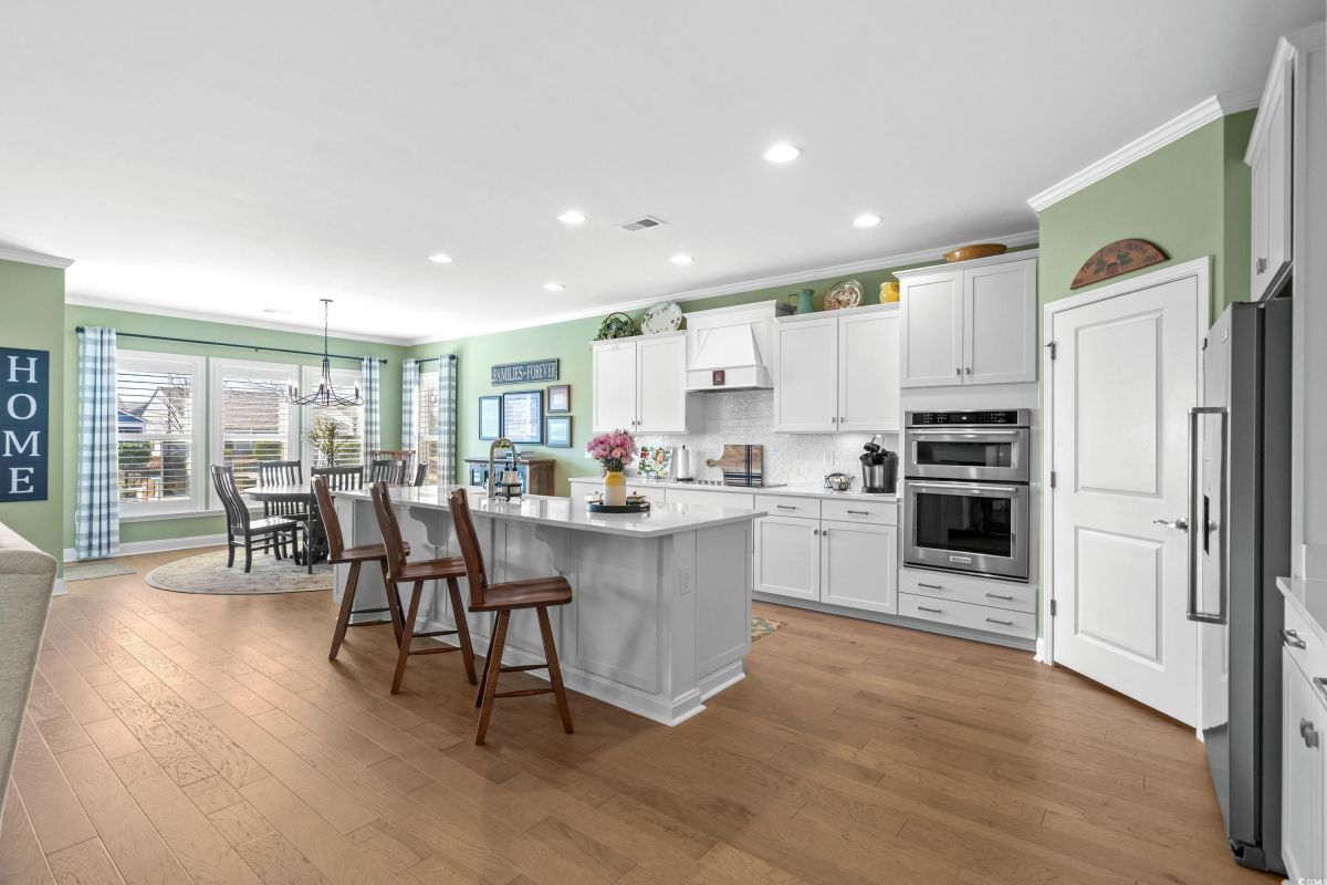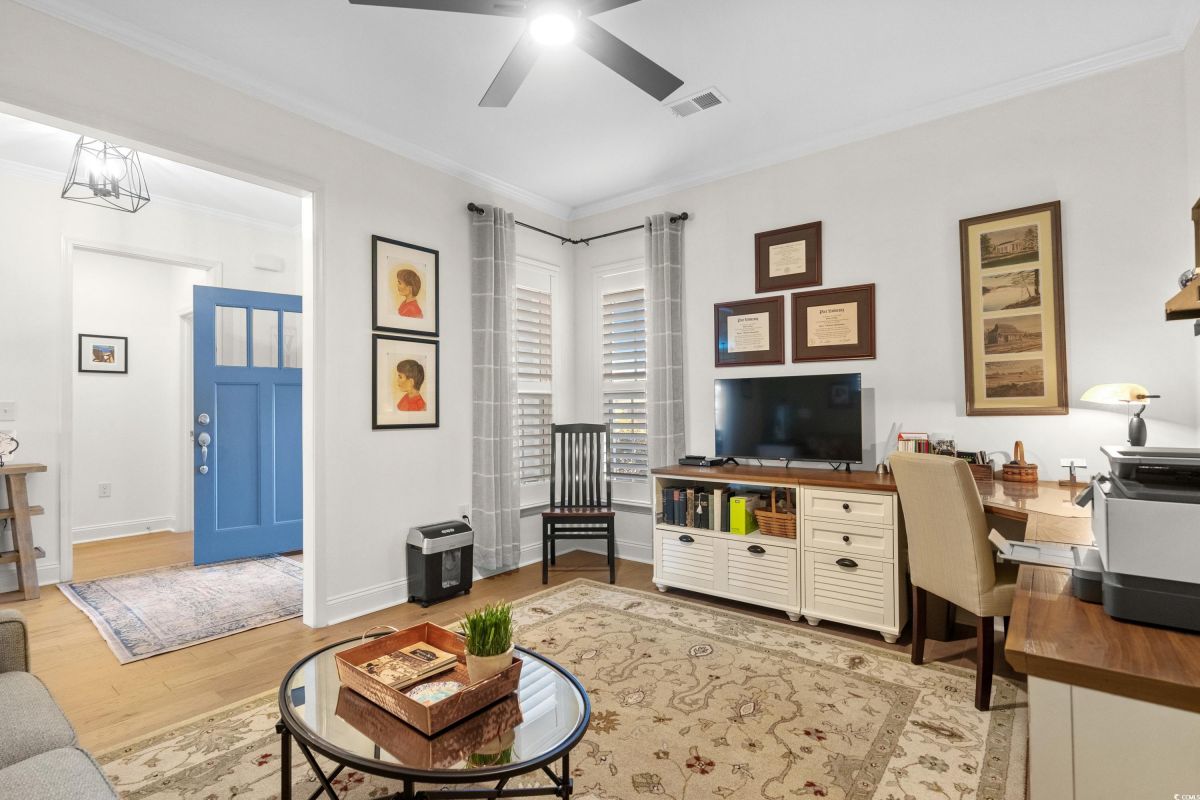Your dream home awaits at 7122 Sarteano Dr, nestled in the heart of a vibrant 55+ community in beautiful Myrtle Beach, SC. This exquisite 3-bedroom, 3-bathroom house is designed to embody the essence of comfort and elegance for discerning homeowners seeking a maintenance-free lifestyle. As you step inside, you'll be greeted by an inviting atmosphere reminiscent of a model home, with upgraded hardwood flooring that flows seamlessly throughout the residence. The open and airy great room is illuminated by additional recessed lighting, creating a warm ambiance that's perfect for entertaining or relaxing by the cozy fireplace. The chef's kitchen is a masterpiece of design and functionality, boasting quartz countertops, a finished pantry, a wine refrigerator, upgraded appliances, and a farmhouse sink that adds a touch of rustic charm. The primary suite is a haven of tranquility, featuring upgraded molding, custom closet, stylish barn doors and a spa-like bathroom with a luxurious Roman shower to wash away the day's stress. Enjoy the tranquility of your fenced-in yard from the comfort of your beautiful patio, complete with a sun setter awning, or unwind in the screened-in porch that captures the essence of Southern living. The attention to detail is evident in the plantation shutters throughout, upgraded moldings, window trim, and a state-of-the-art HVAC system with media filter and UV light for your ultimate comfort. For hobbyists or travelers, the epoxy-floored garage includes a sink and a 30 amp RV power outlet, making it the perfect space for your projects or charging your home on wheels. With added space to the driveway, this home is an entertainer's delight and a serene retreat all in one. Residents of this amenity-rich neighborhood enjoy a vibrant lifestyle with access to community features that cater to the 55+ market, ensuring that there’s always something to do and new friends to meet. Del Webb, a natural gas community, offers an indoor heated pool, an outdoor resort style pool, a fulltime activities director, pickleball and tennis courts, bocce ball court, a fitness center, a fire pit, walking trails and day docks for fishing or boating. Your lawn care is also included so you can spend your time savoring life. As an owner in Grande Dunes you have access to the 25,000 square foot Ocean Club where you can enjoy fine dining, happy hour outings, oceanfront pools with food and beverage service, private beach entrance, beach chair service, and other fun activities. Additionally, the community has two 18-hole golf courses, deep water marina, and a Har-tru tennis facility. Don't miss this opportunity to own a slice of paradise at 7122 Sarteano Dr.